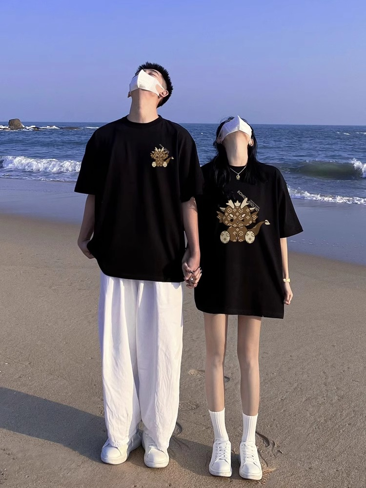 PF2084#高级感特别的不一样男女情侣装夏装t恤 新款夏季网红短袖套装