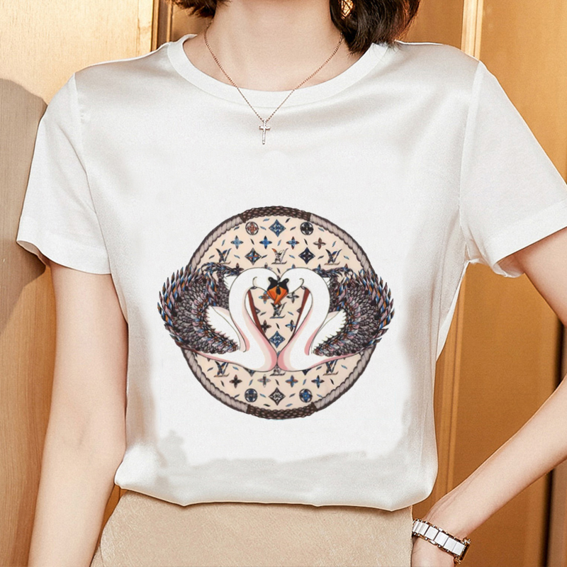 PF2145#夏季真丝短袖T恤女宽松大码桑蚕丝百搭内搭印花韩版显瘦上衣