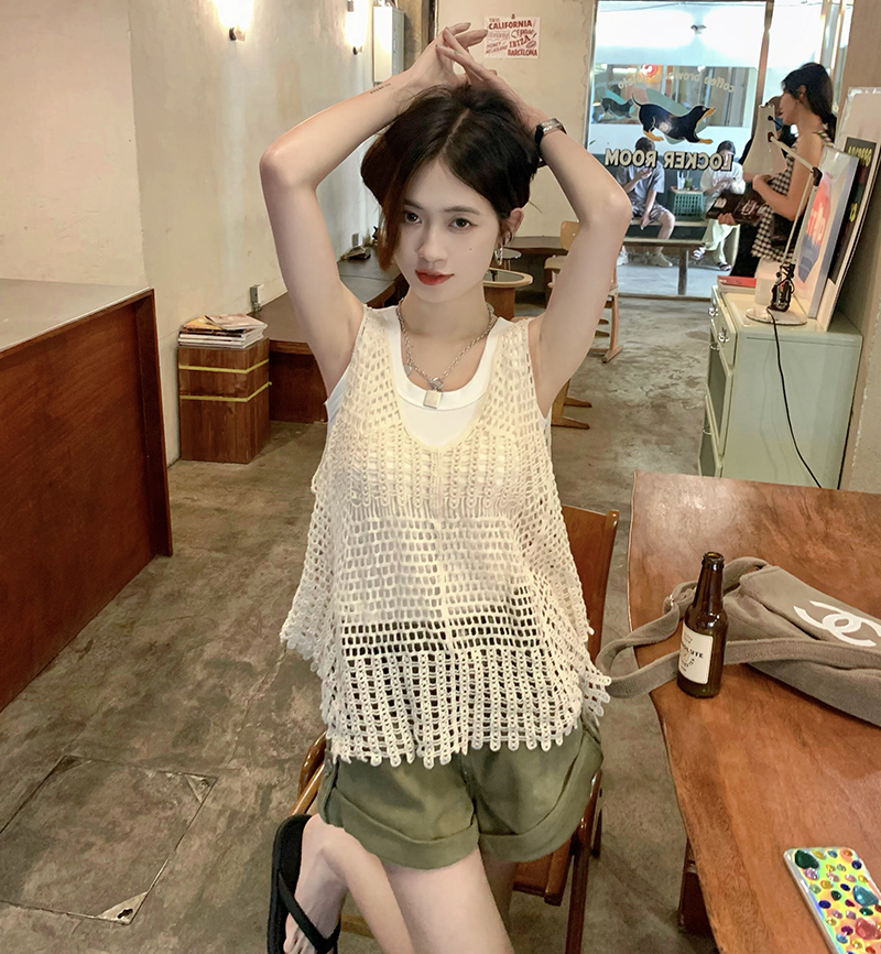 PF2150#新款钩花镂空编织背心马甲女夏外搭无袖上衣罩衫