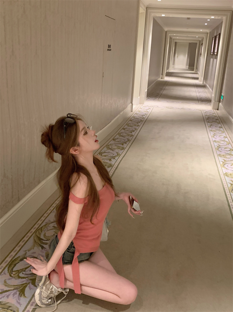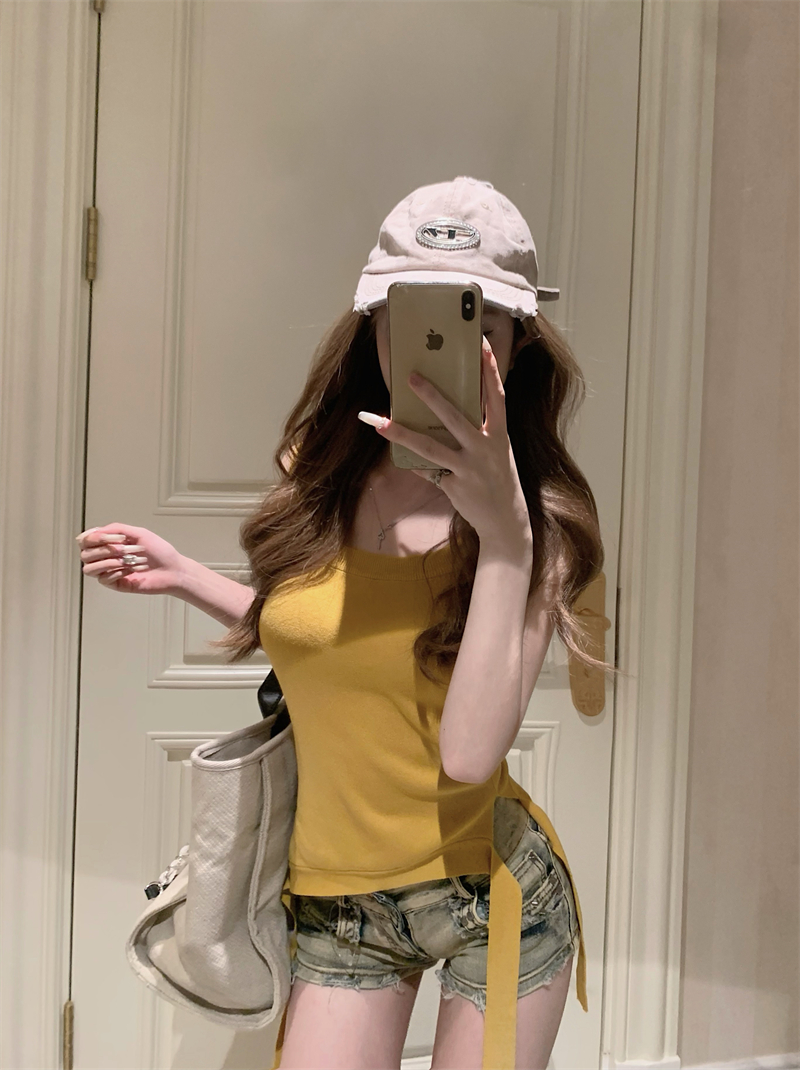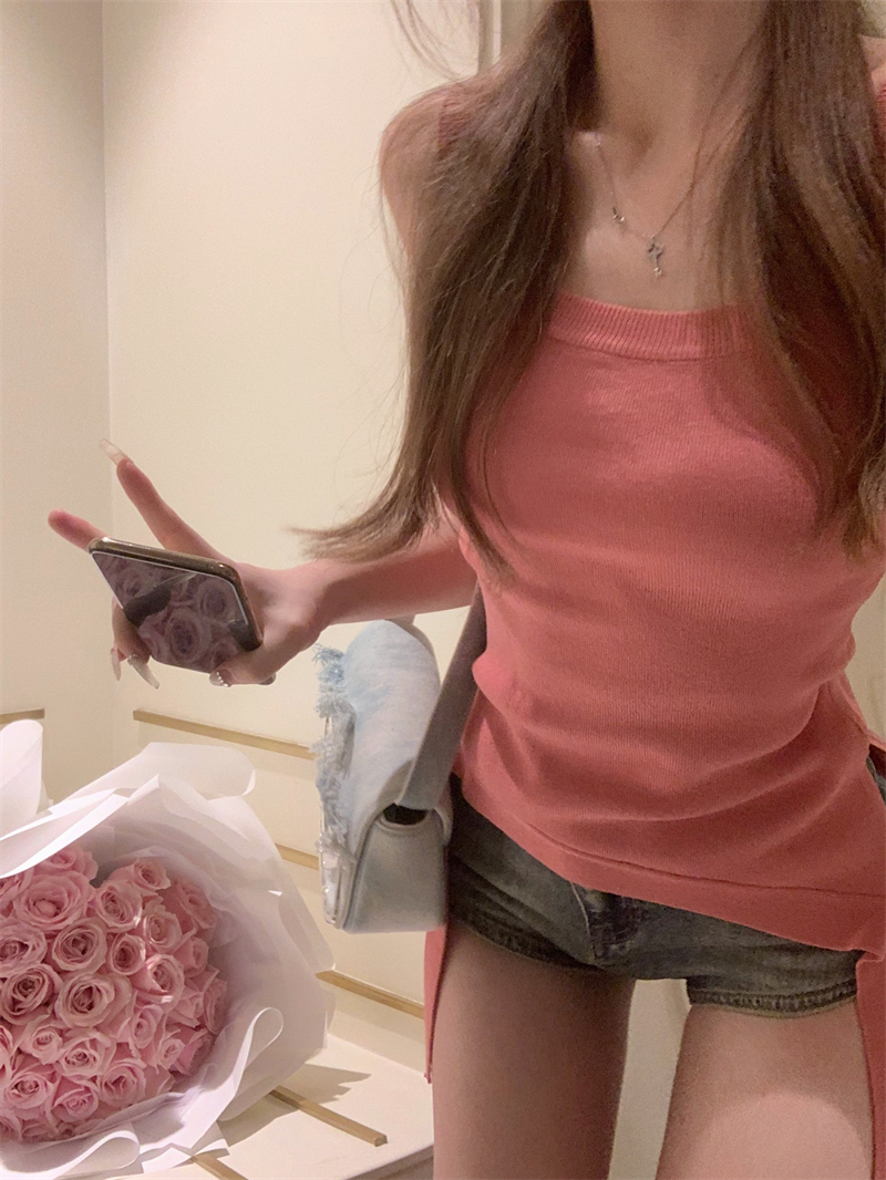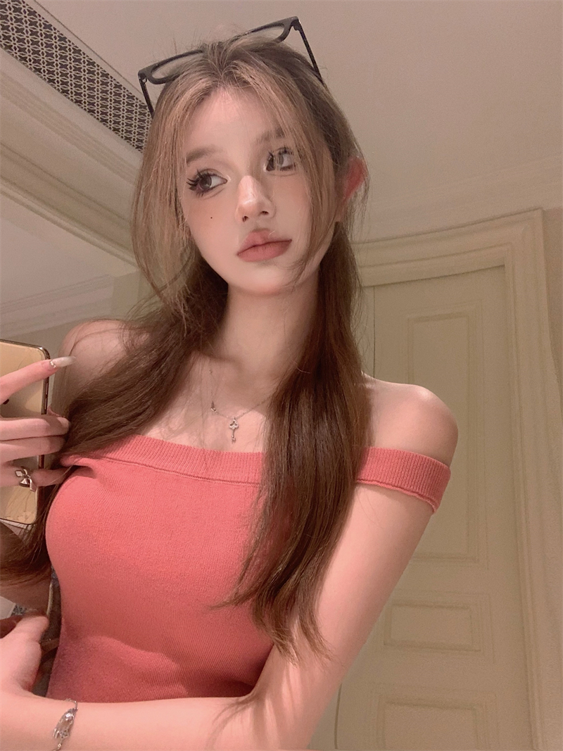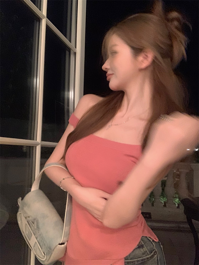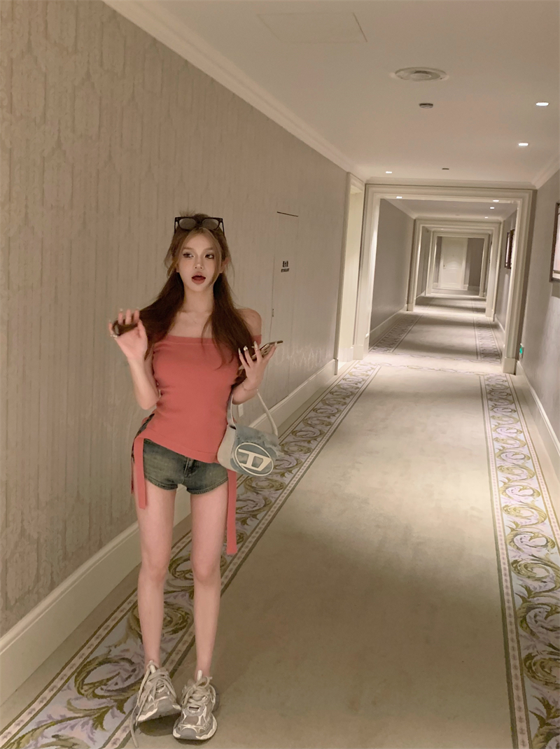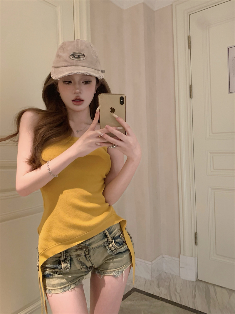 PF2154#针织吊带背心女夏季小众不规则下摆性感辣妹露肩上衣