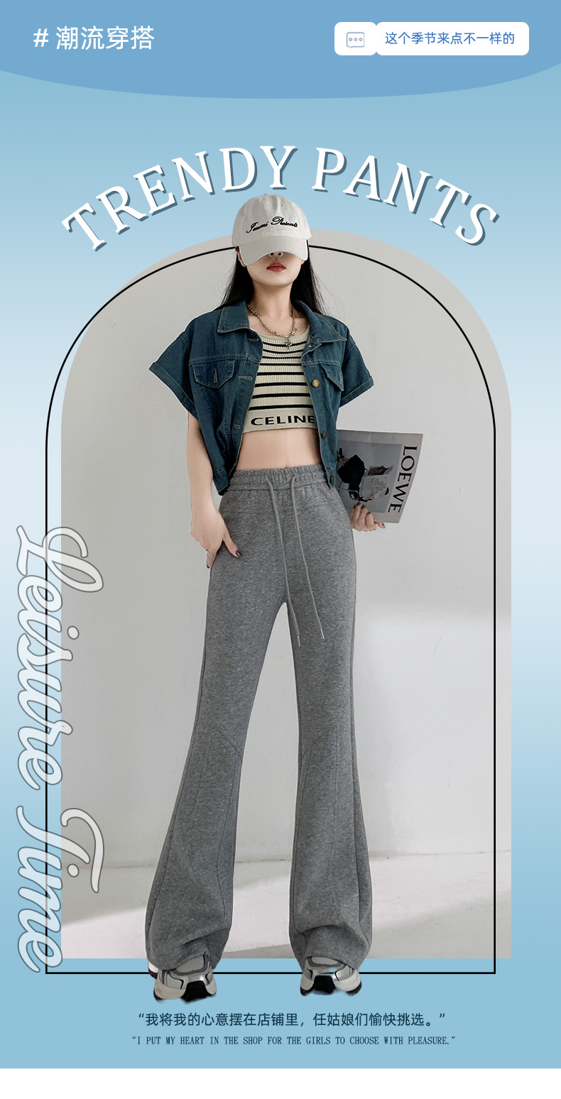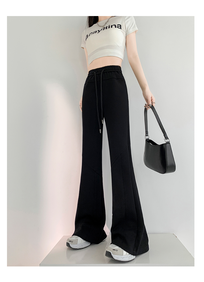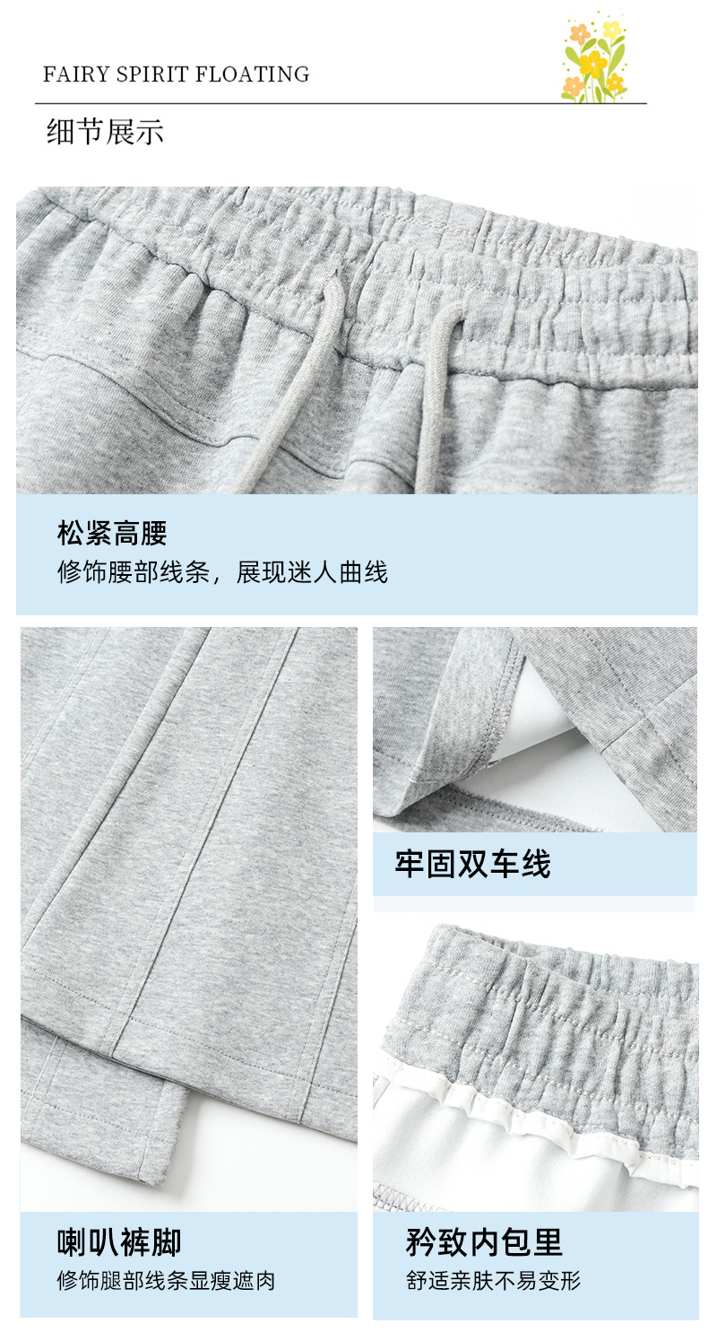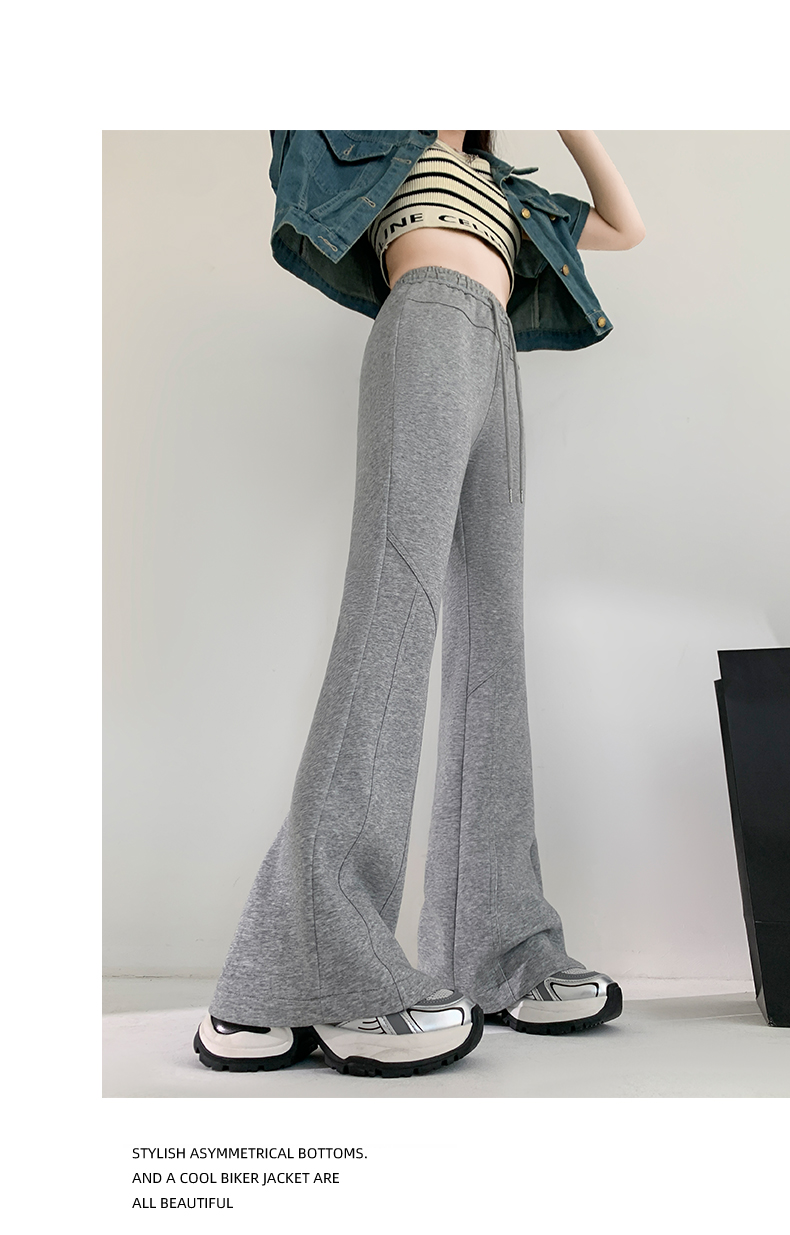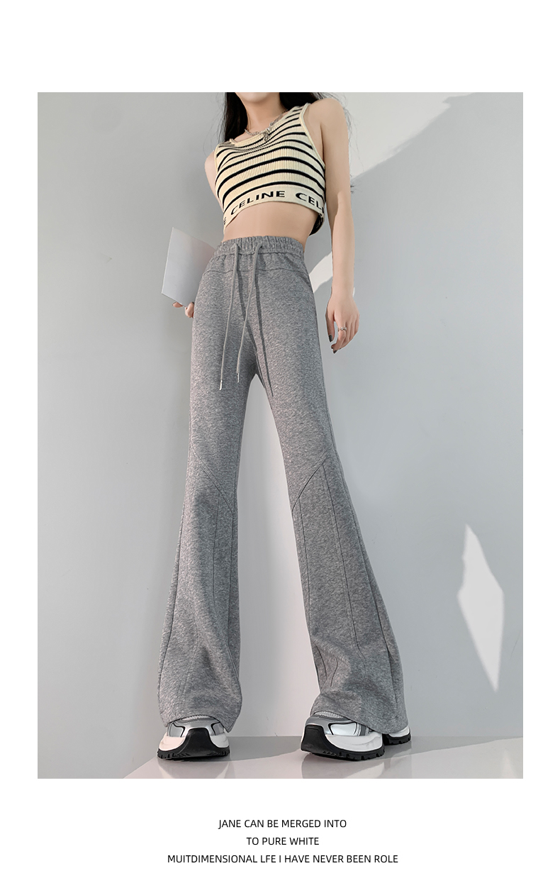 PF2183#新款灰色喇叭裤女垂感高腰弹力显瘦直筒微喇裤运动裤