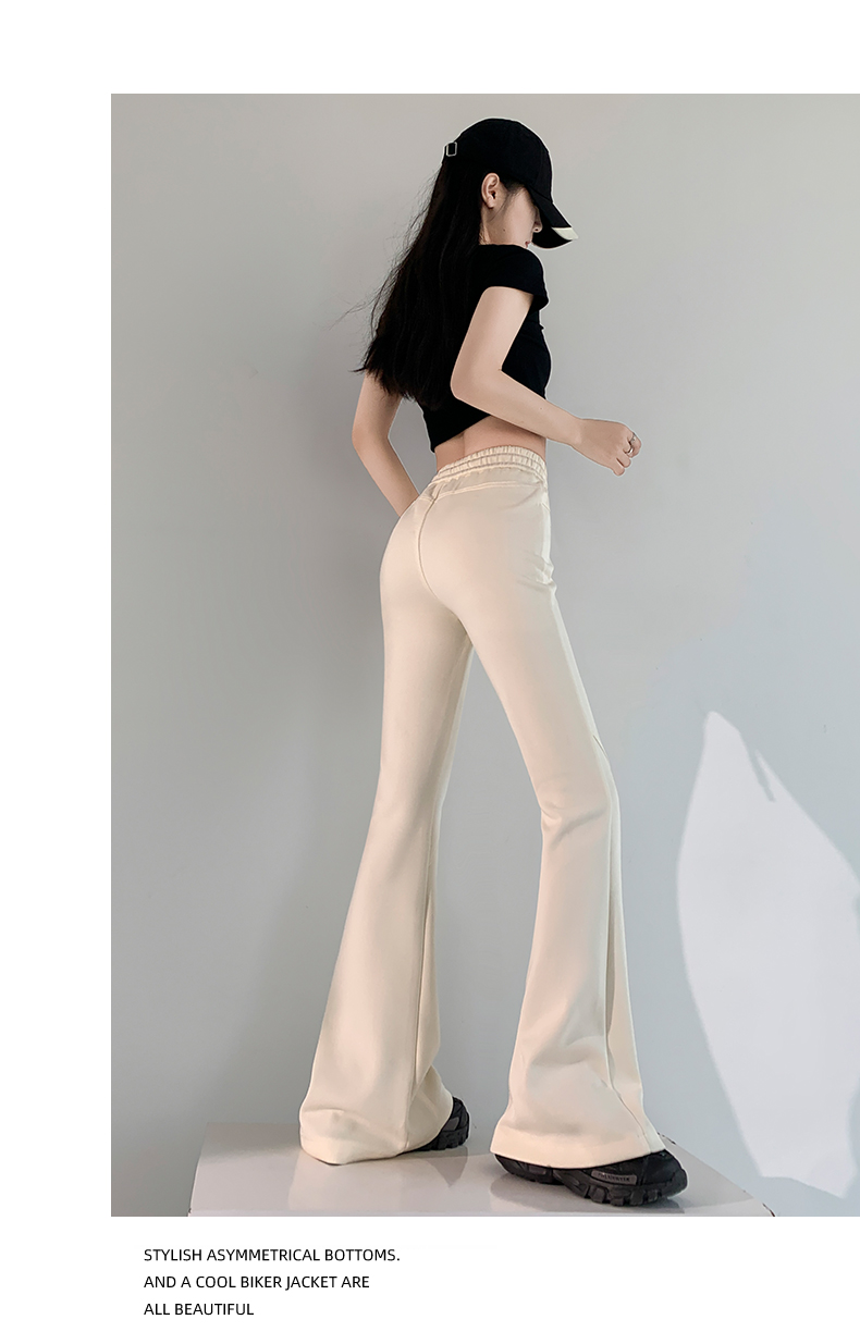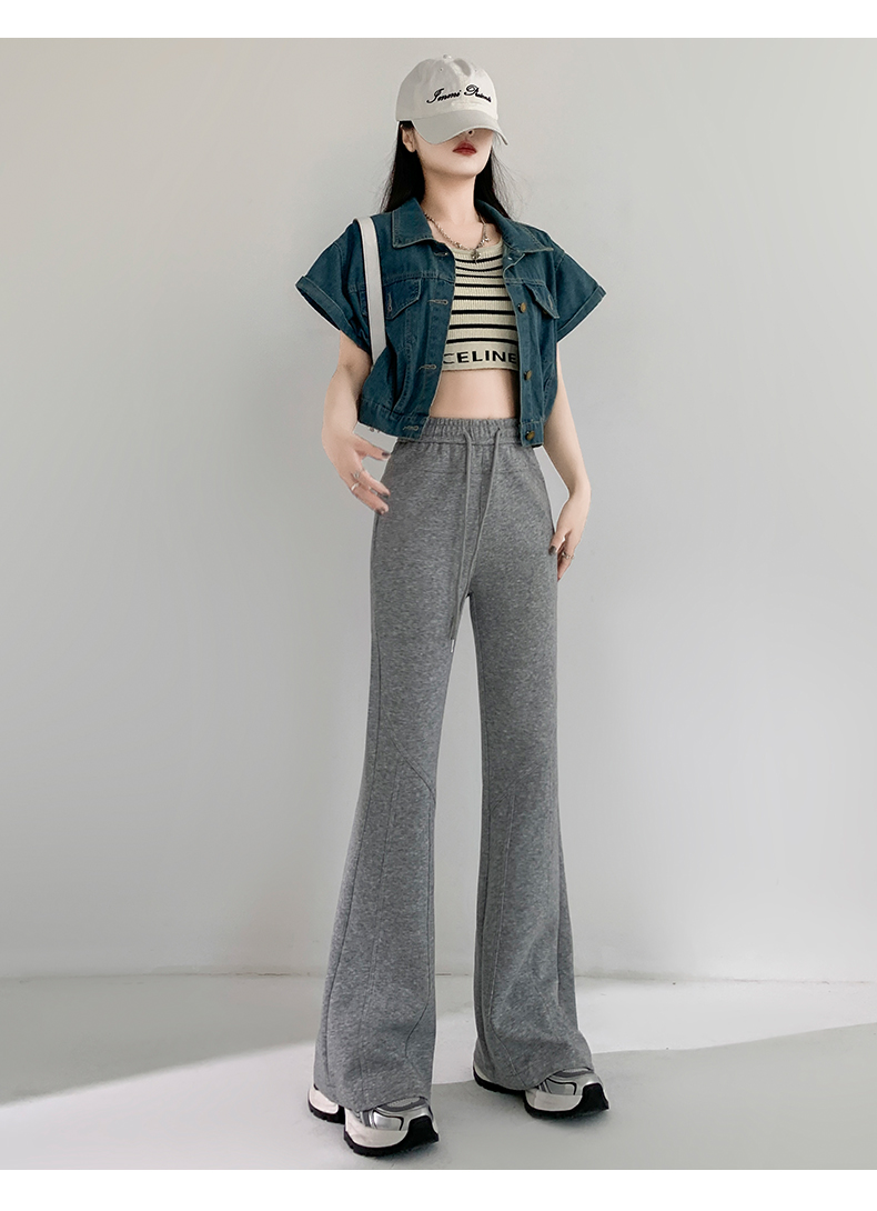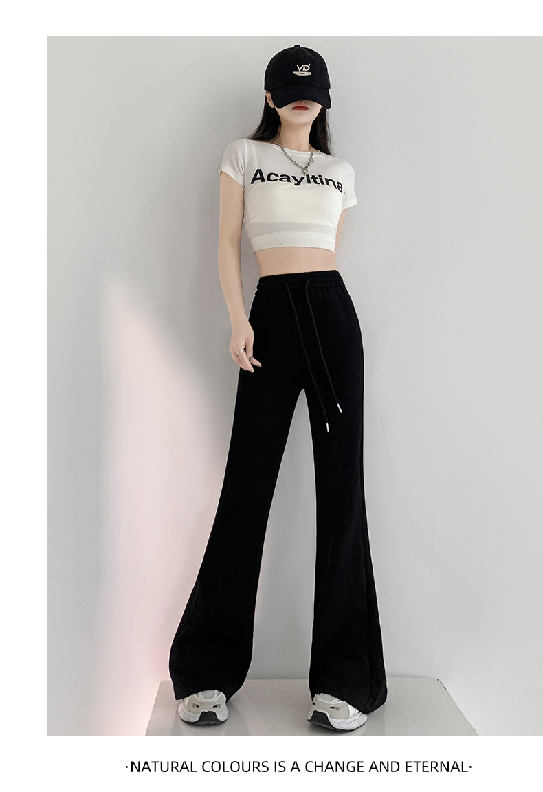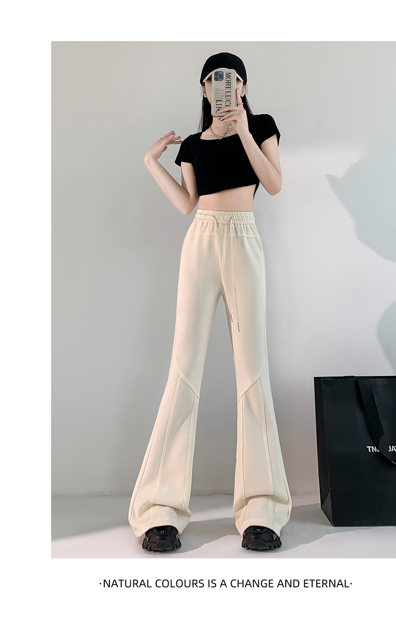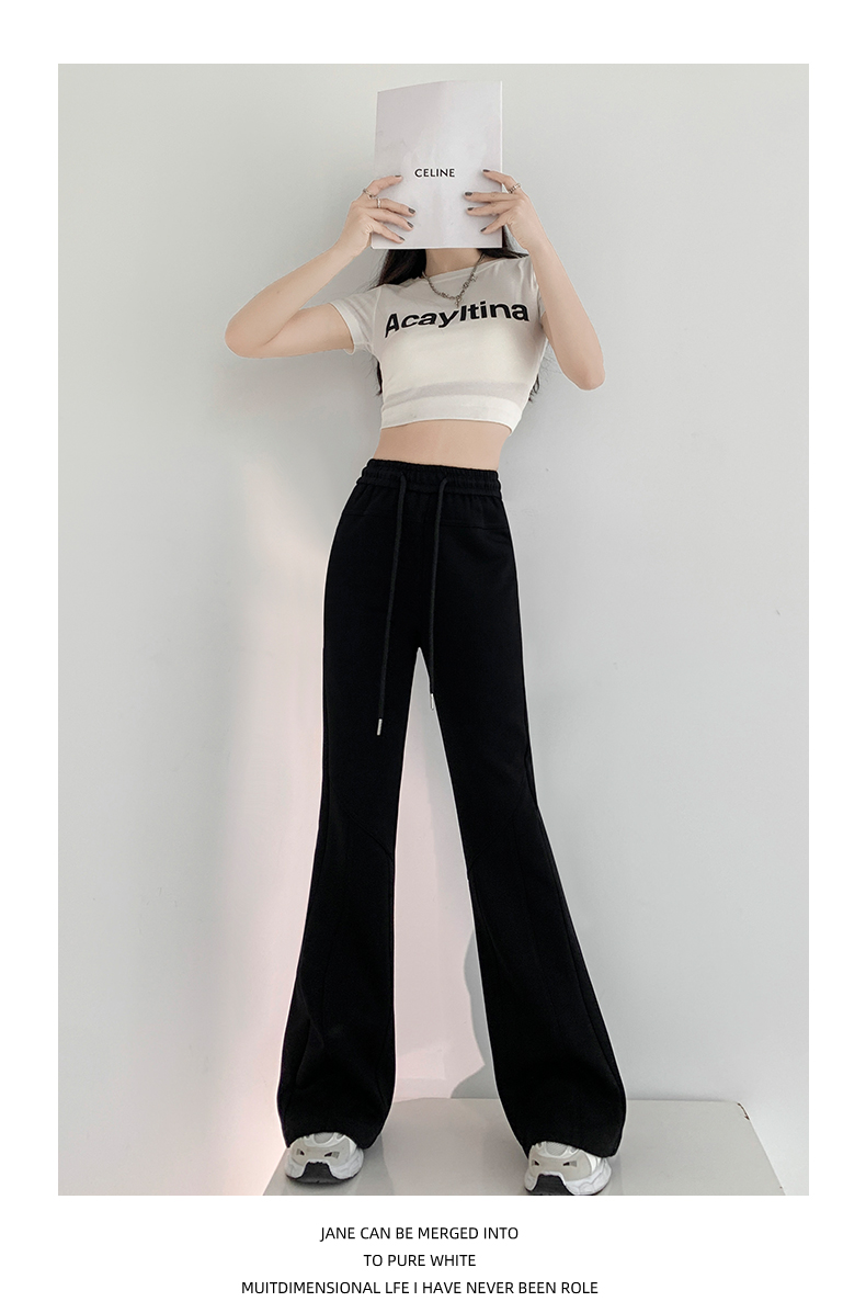 PF2183#新款灰色喇叭裤女垂感高腰弹力显瘦直筒微喇裤运动裤