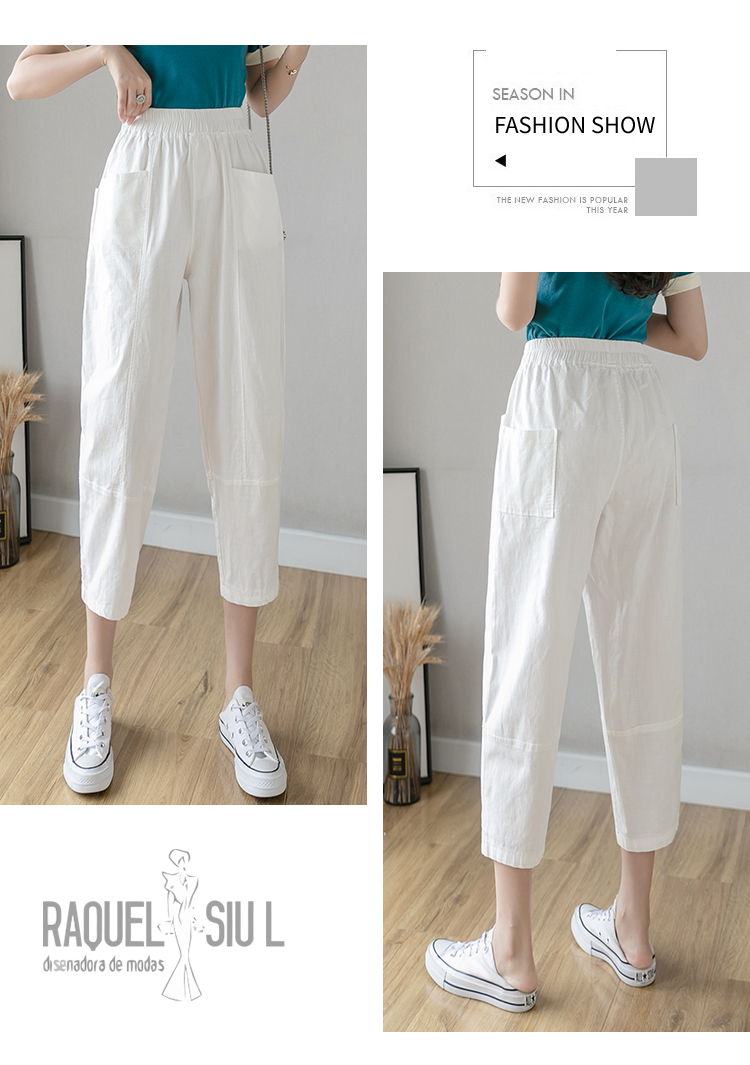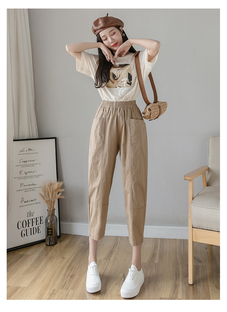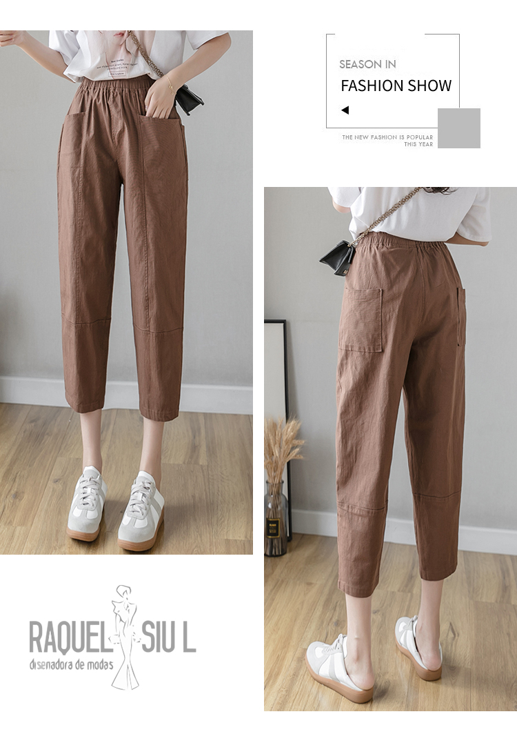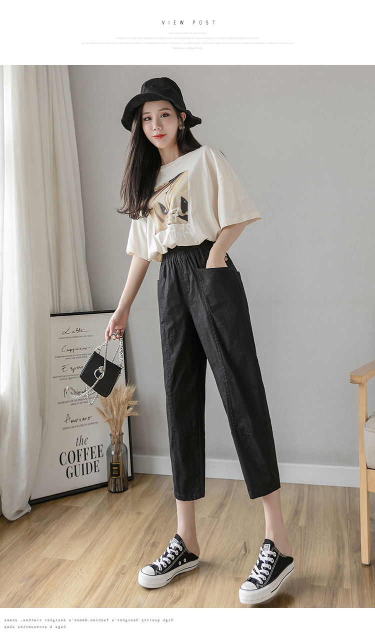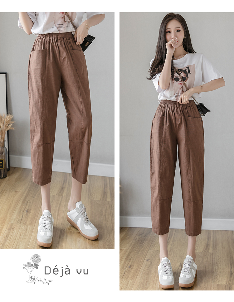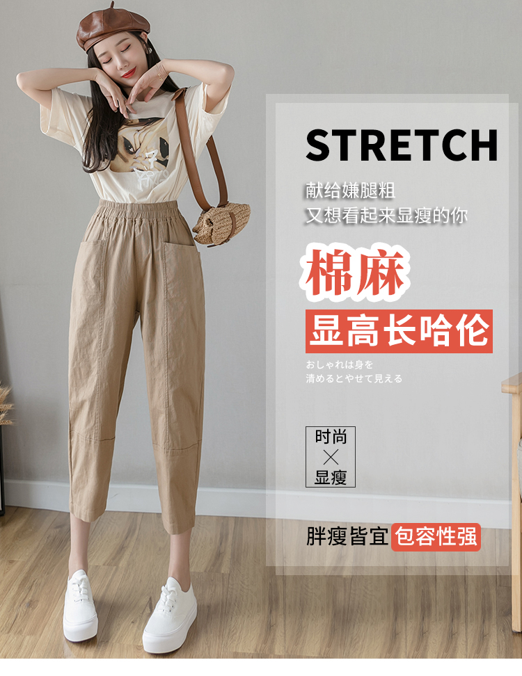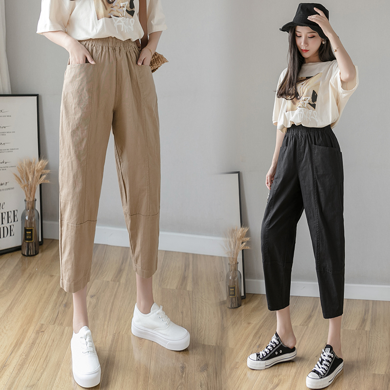 PF2186#夏季棉麻新款休闲裤女韩版宽松大码休闲哈伦裤百搭学生萝卜裤