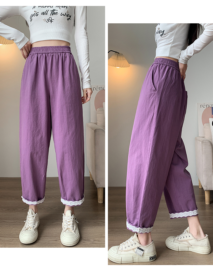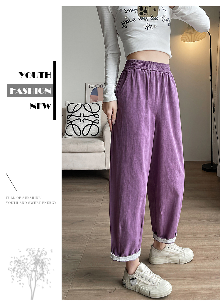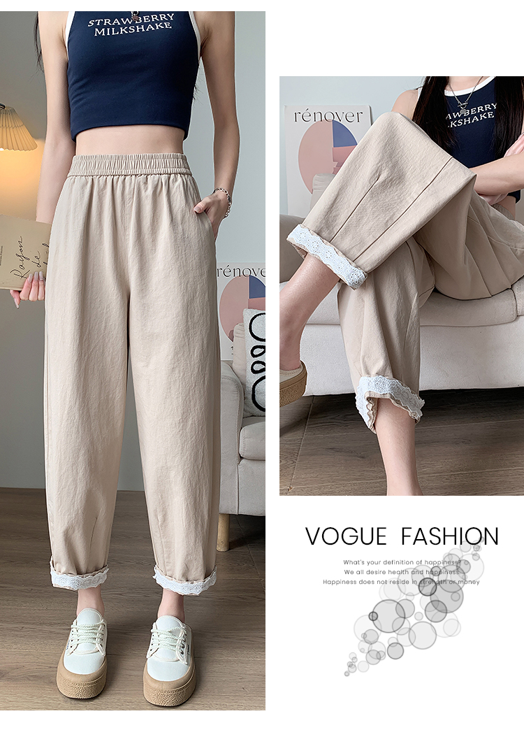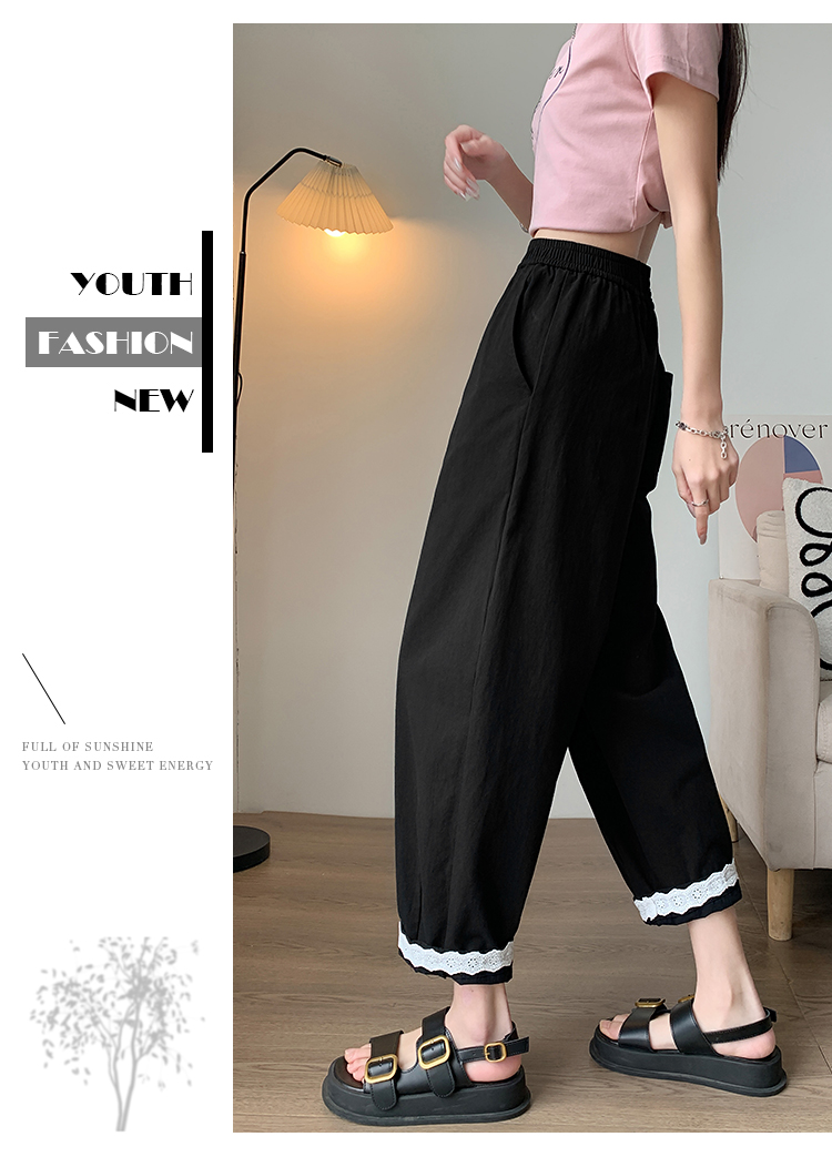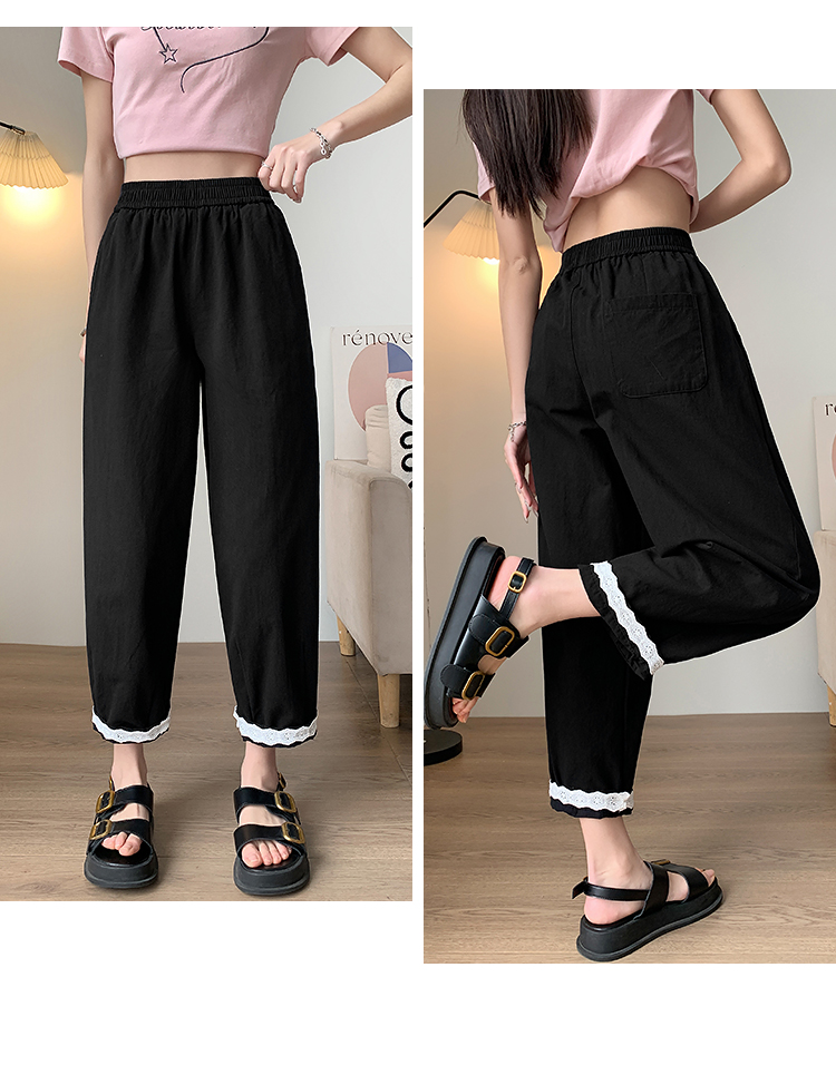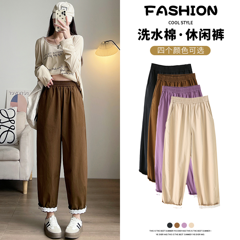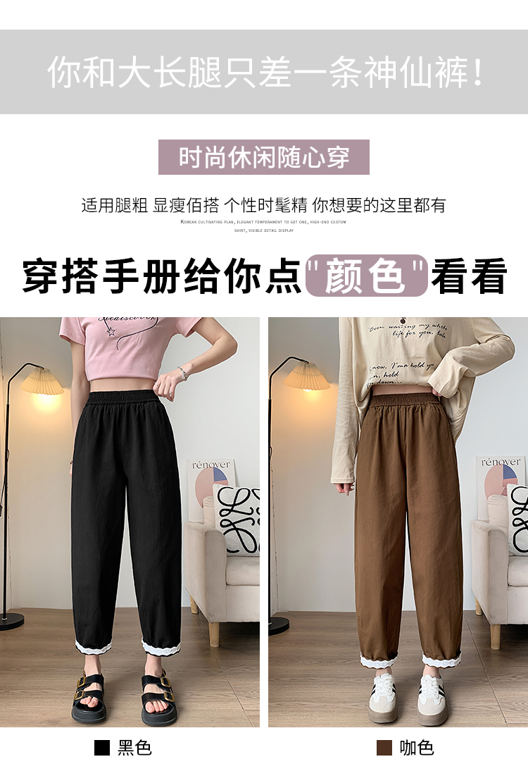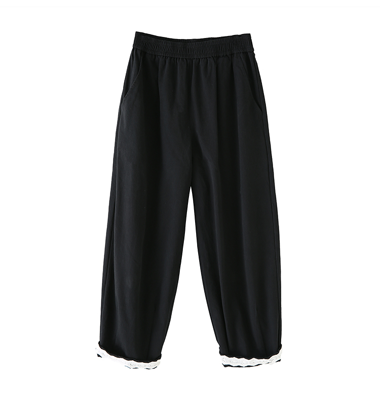 PF2187#日系小清新花边裤 新款洗水棉哈伦宽松萝卜九分裤女