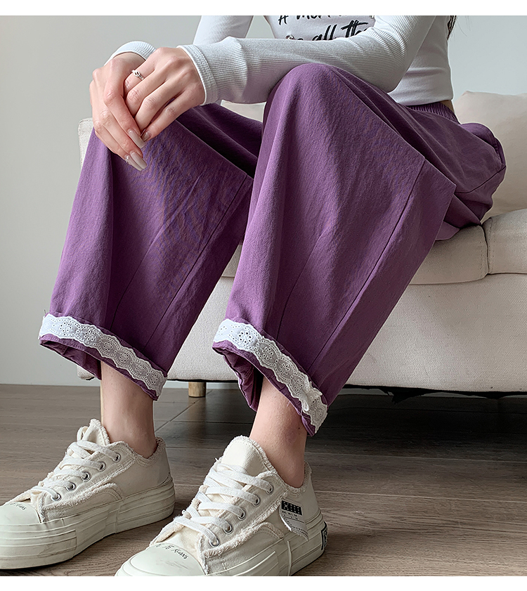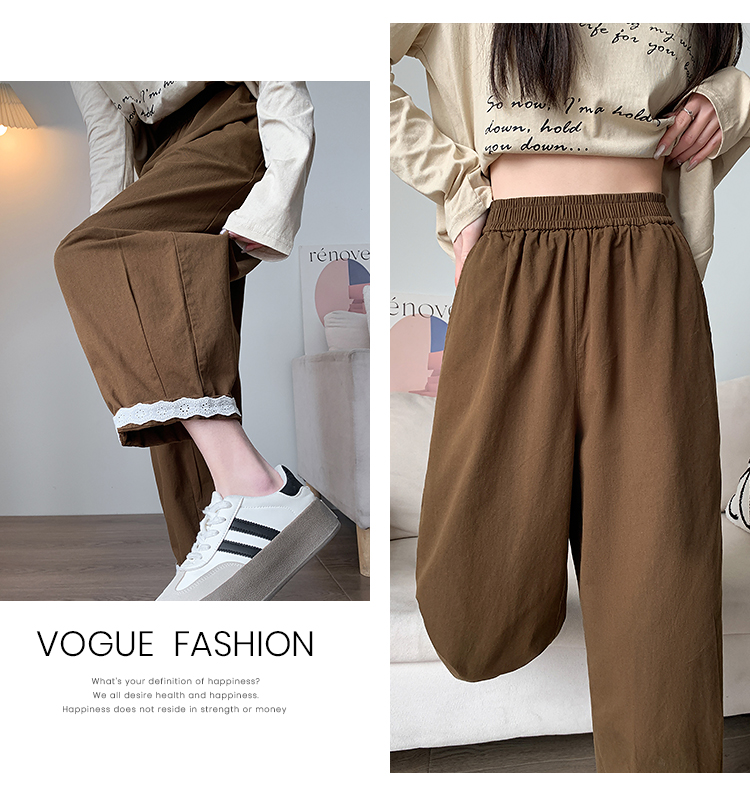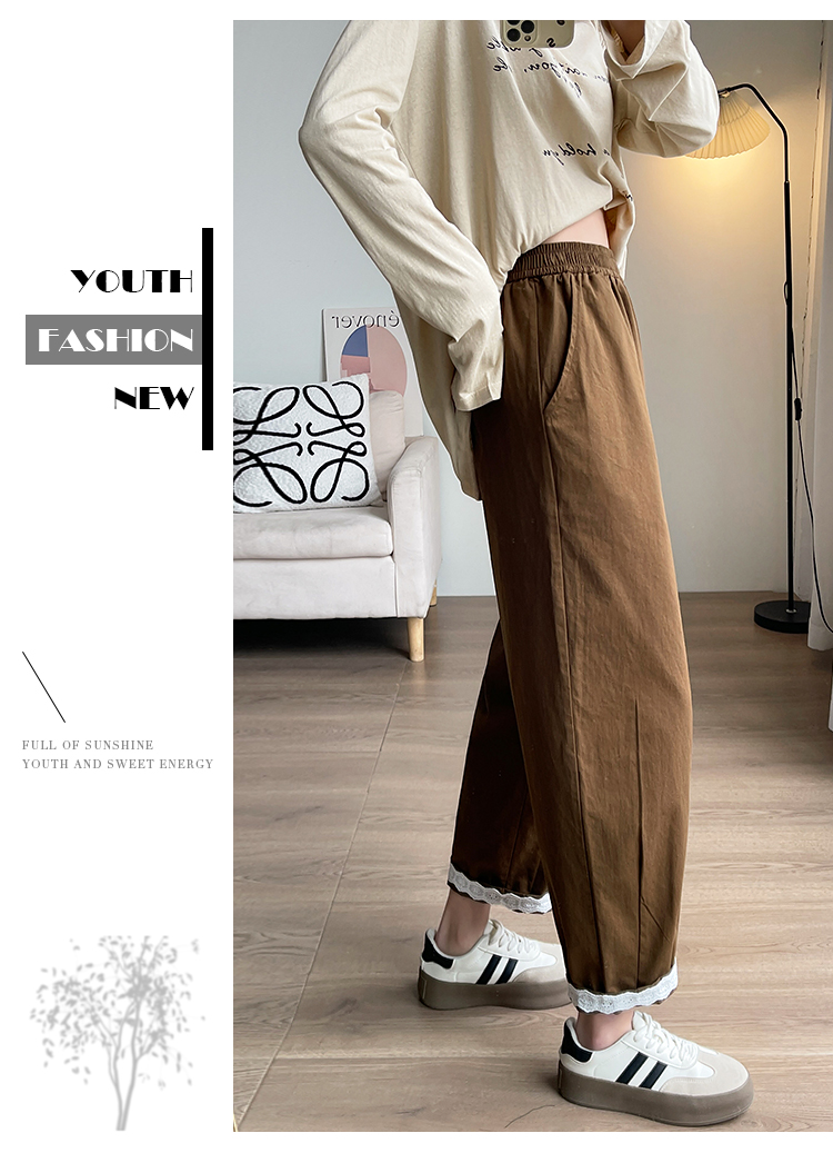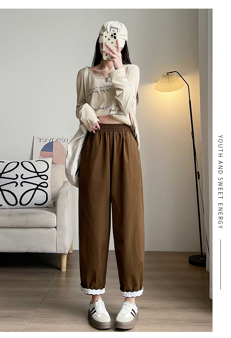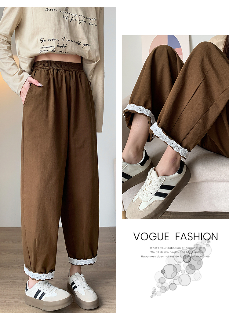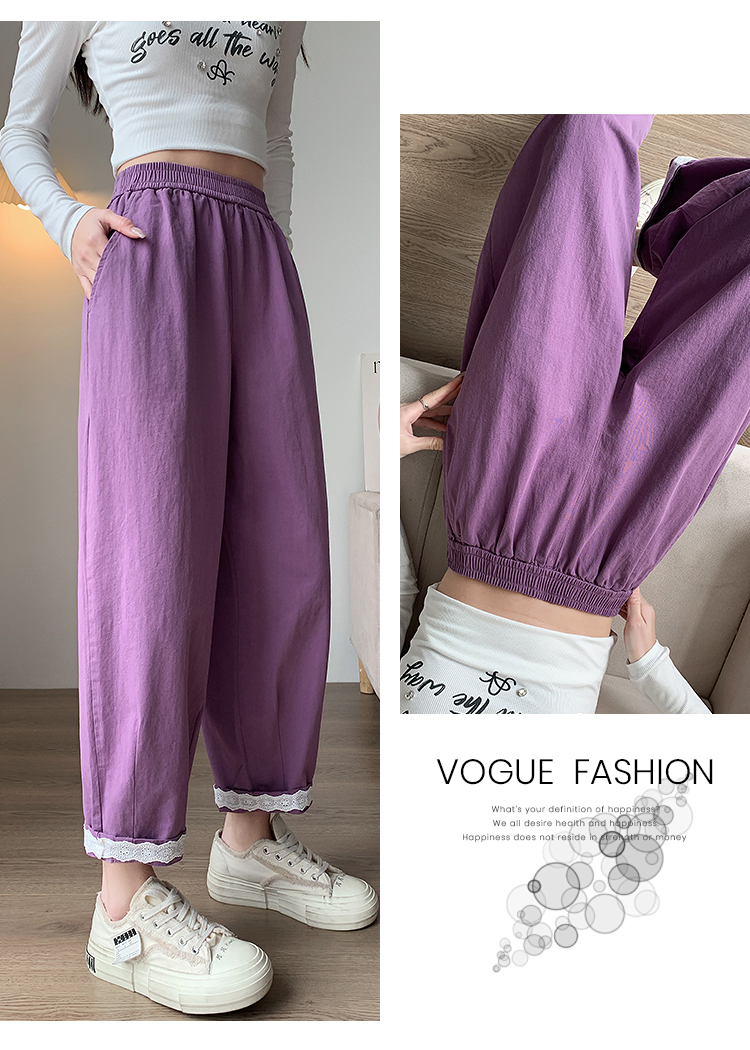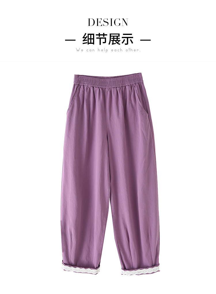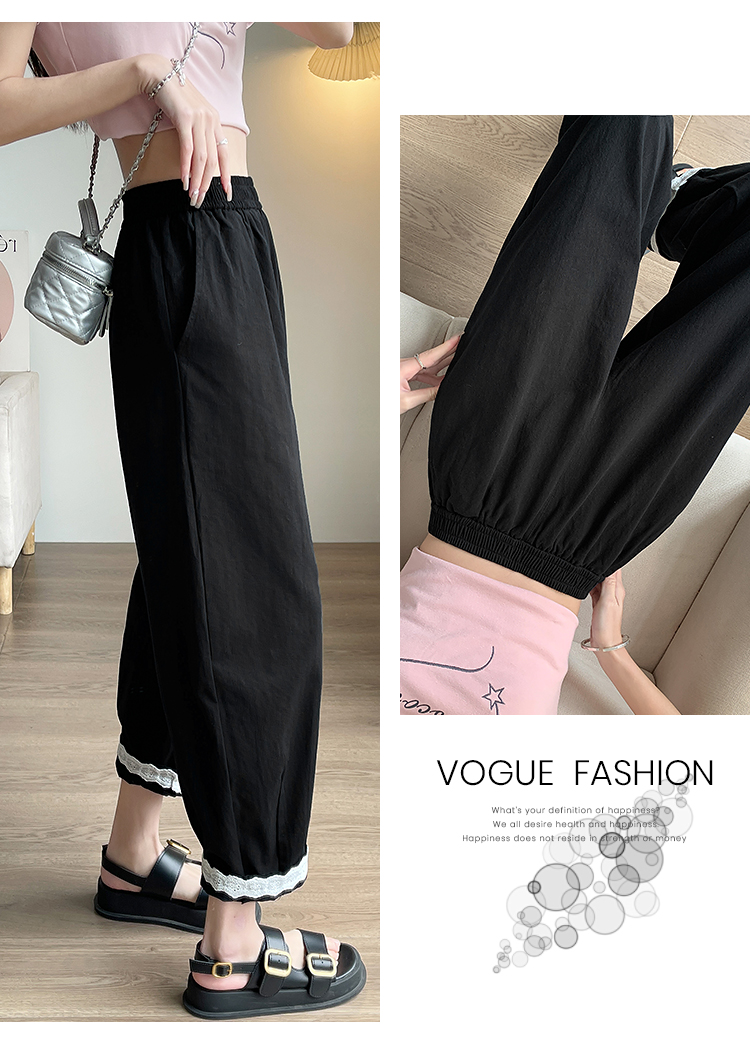 PF2187#日系小清新花边裤 新款洗水棉哈伦宽松萝卜九分裤女