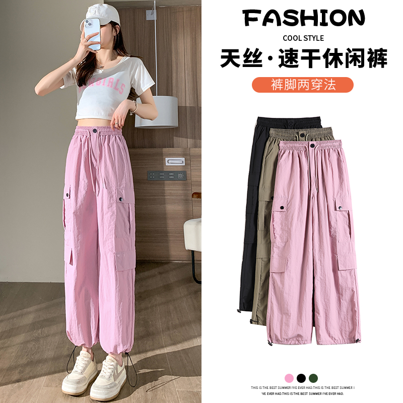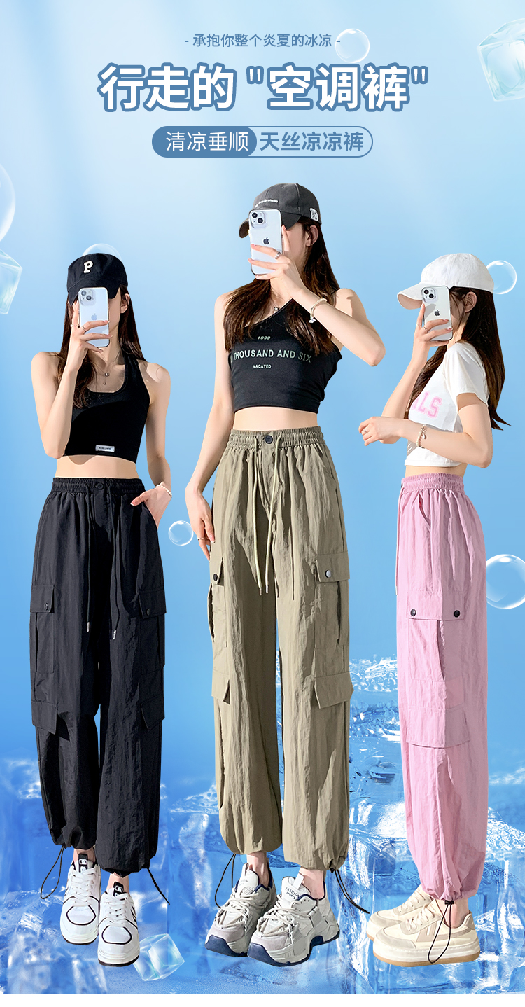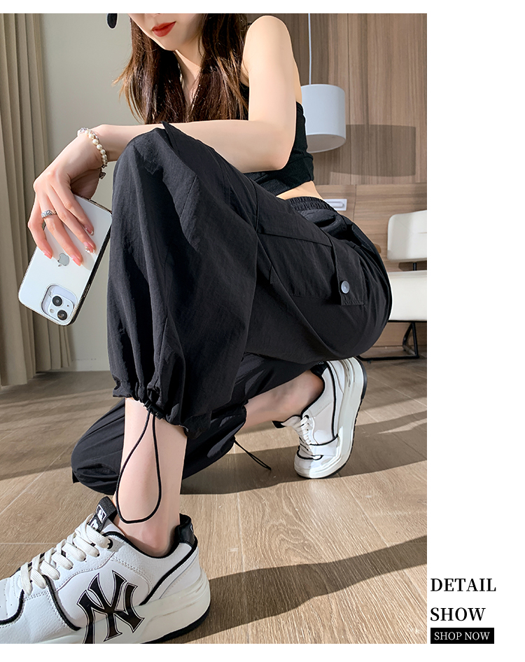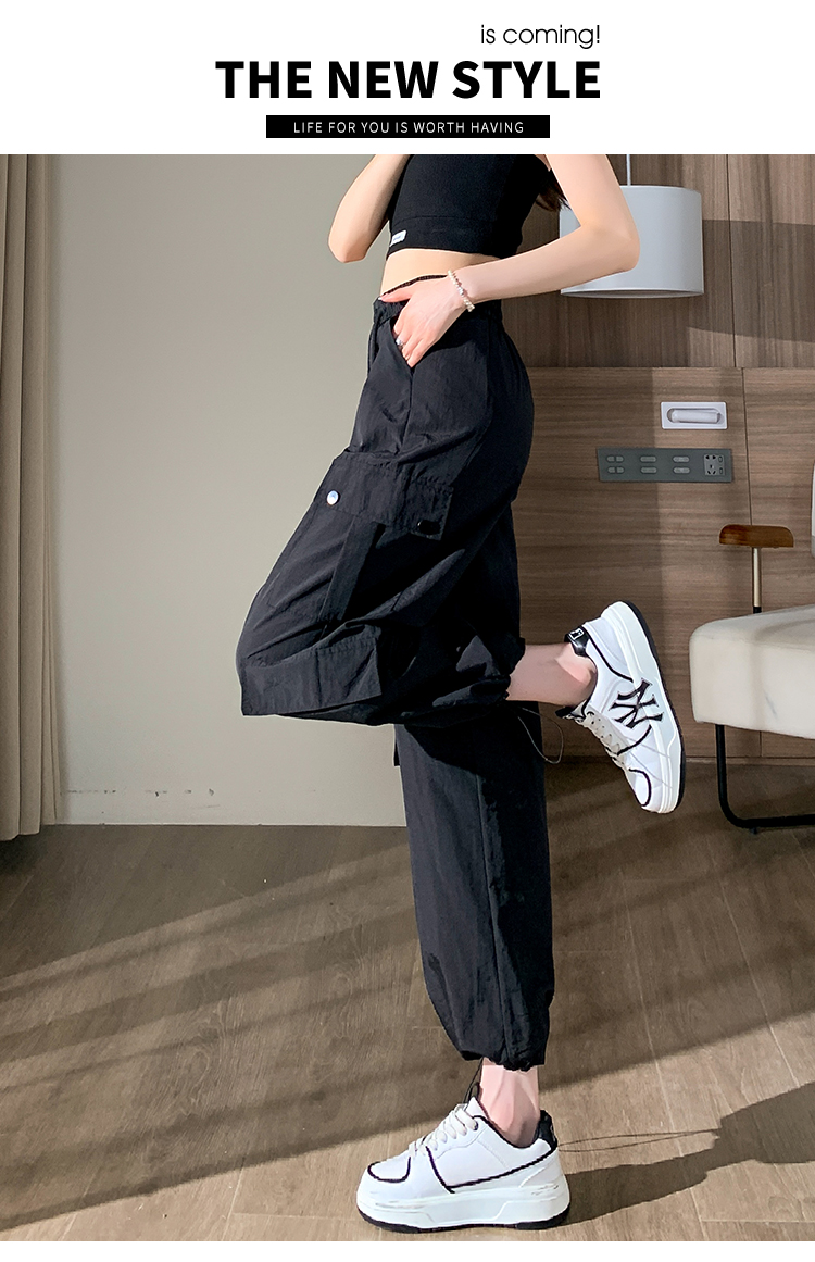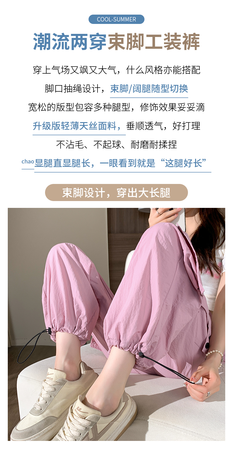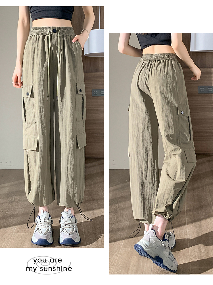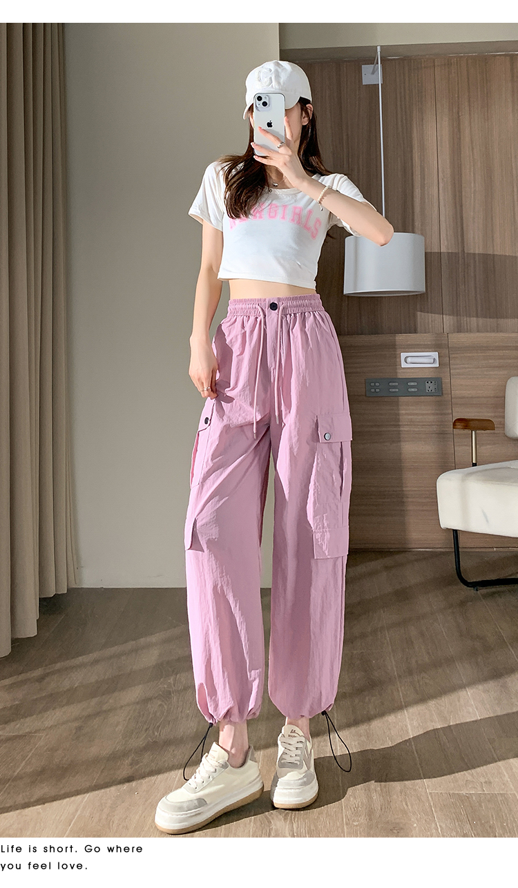 PF2189#夏季新款甜酷高腰宽松显瘦工装休闲裤阔腿抽绳束脚哈伦裤