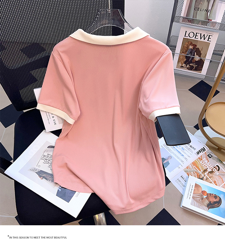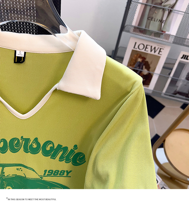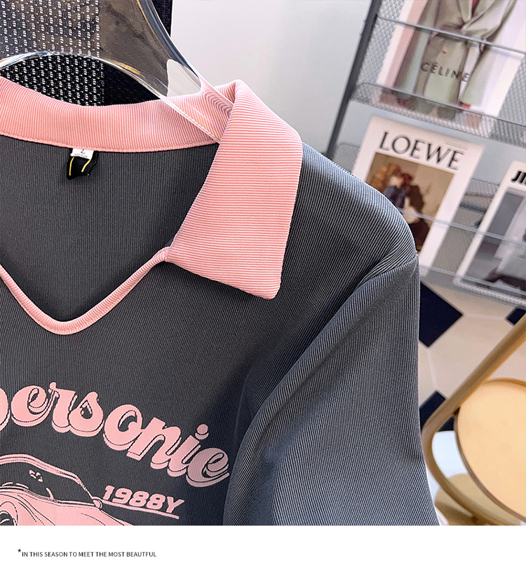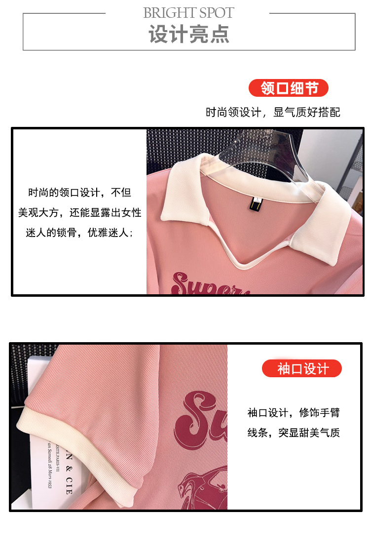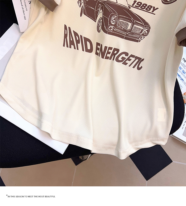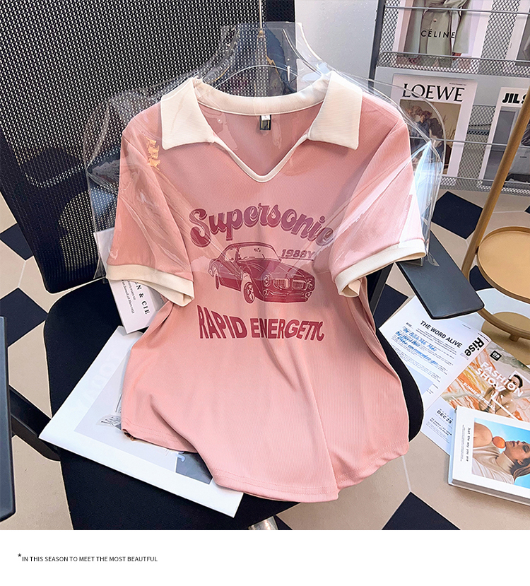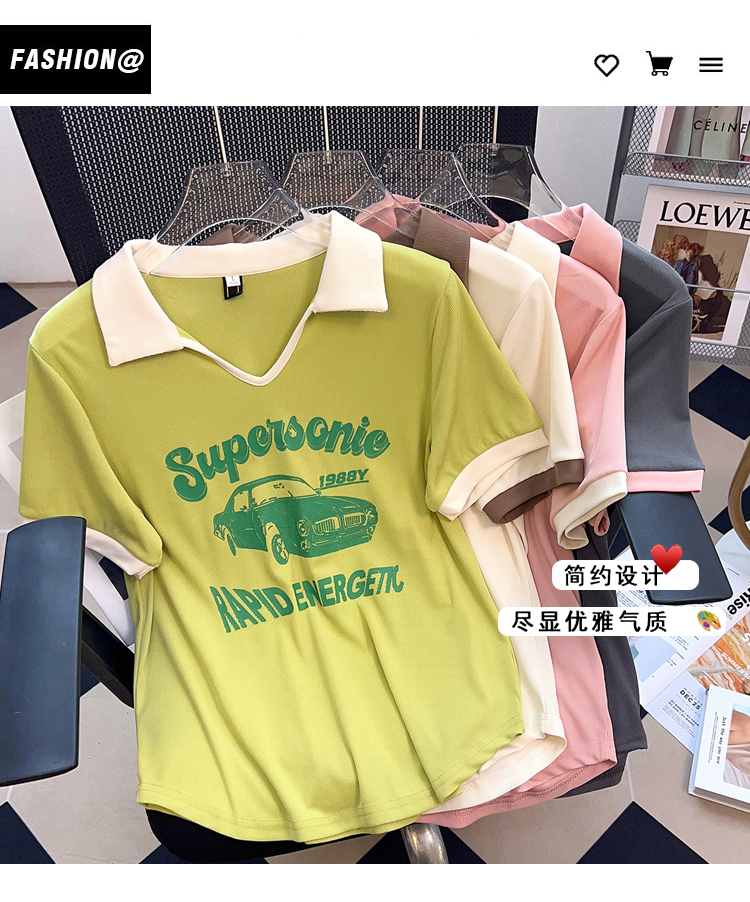 PF2211#夏新款胖mm时尚百搭小众老爷车海鸥领印花短袖T恤上衣潮