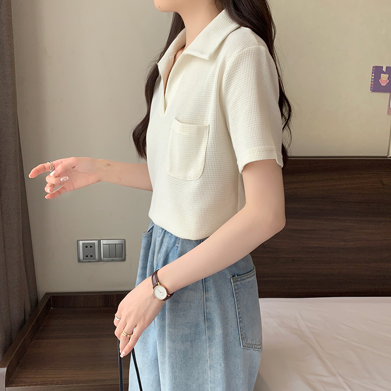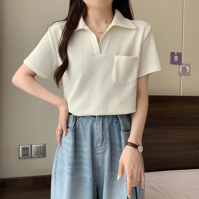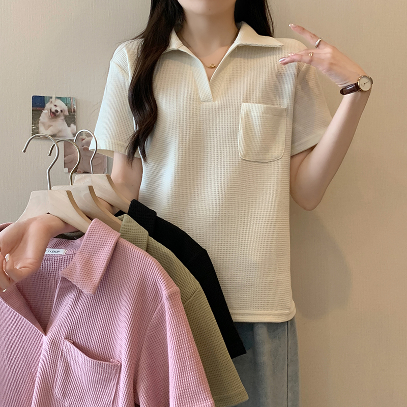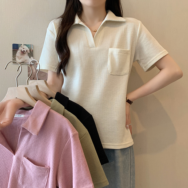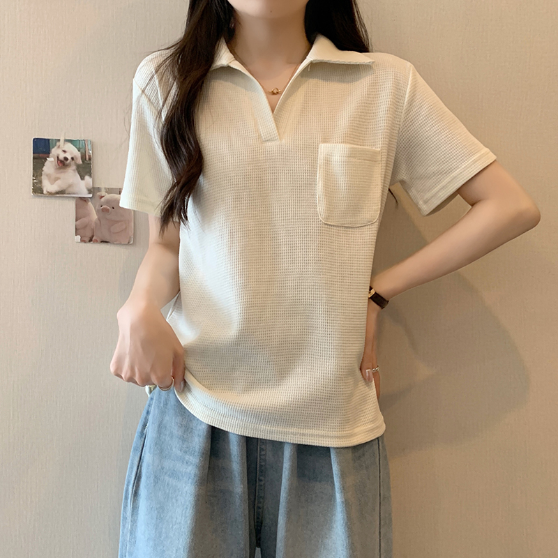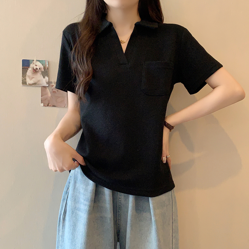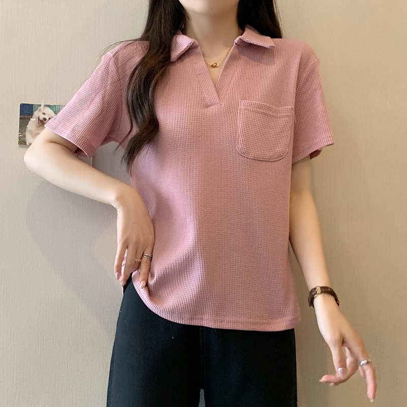 PF2213#夏装新款胖mm高级感翻领设计感百搭显瘦短袖T恤上衣
