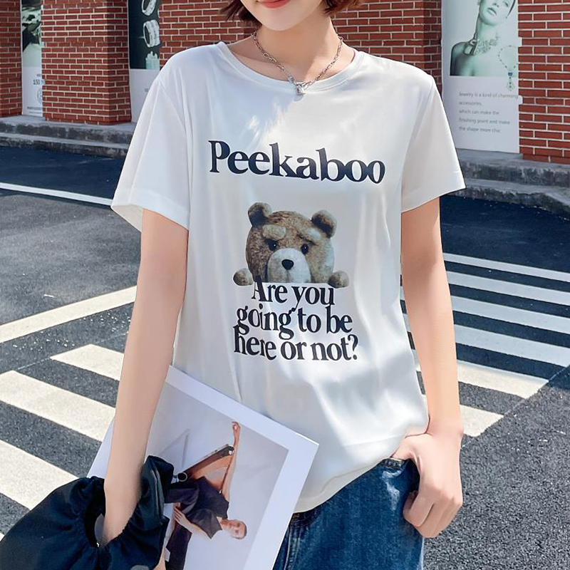 PF2382#夏季真丝短袖T恤女宽松大码桑蚕丝百搭内搭印花韩版显瘦上衣