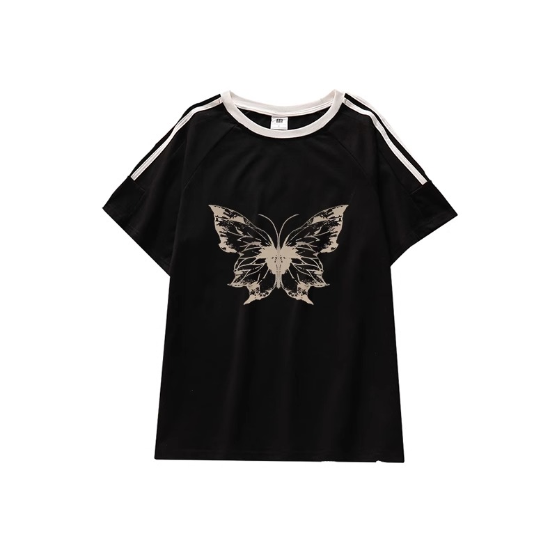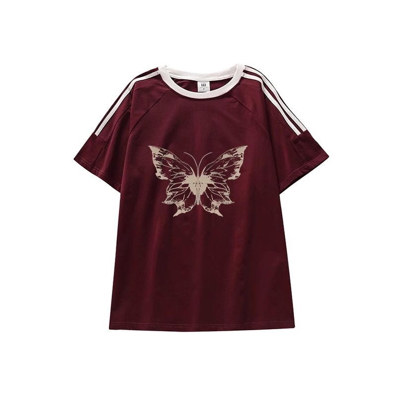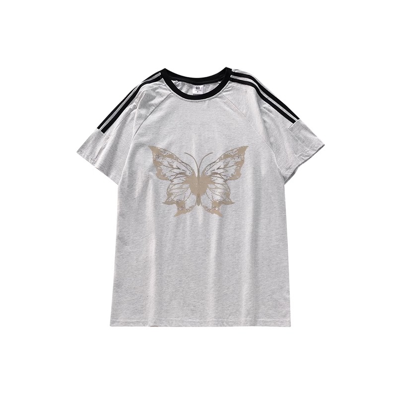 PF2385#100%棉三条杠 2024年新款夏装短袖T恤女