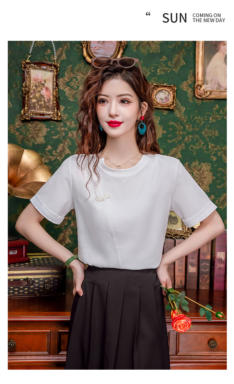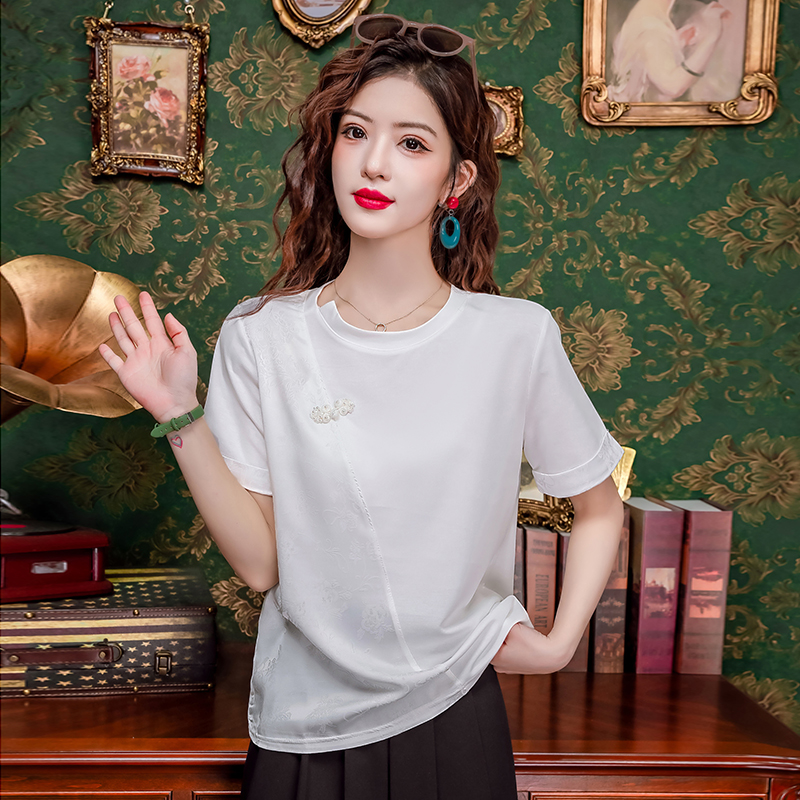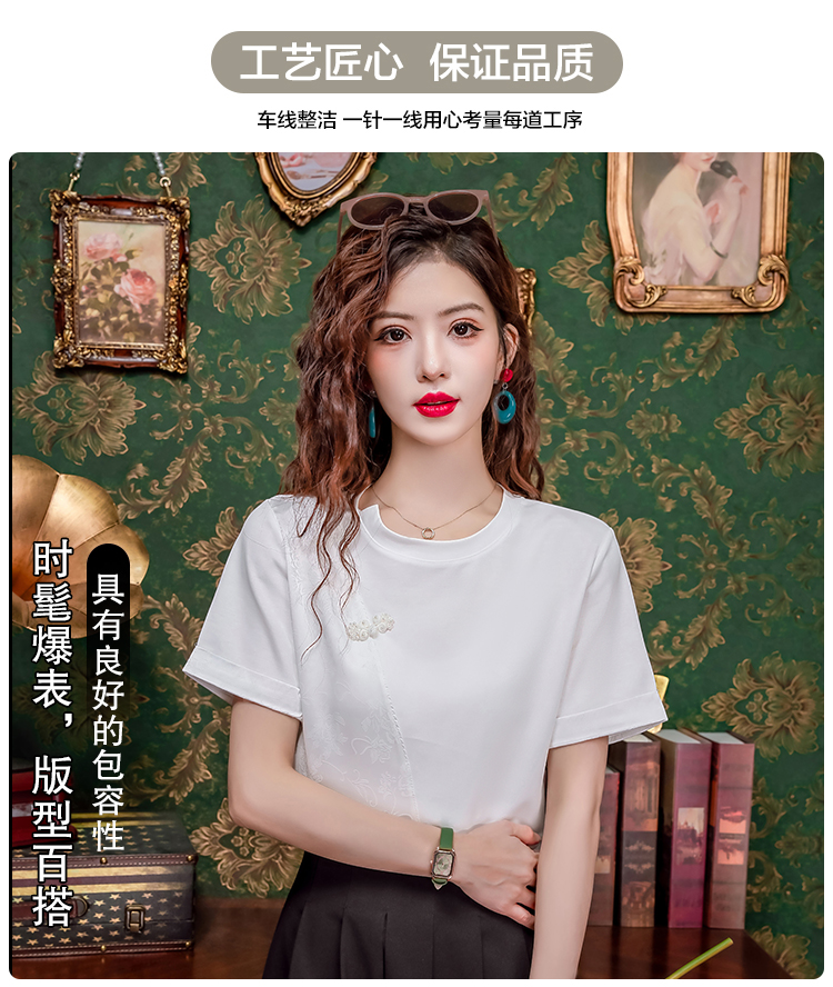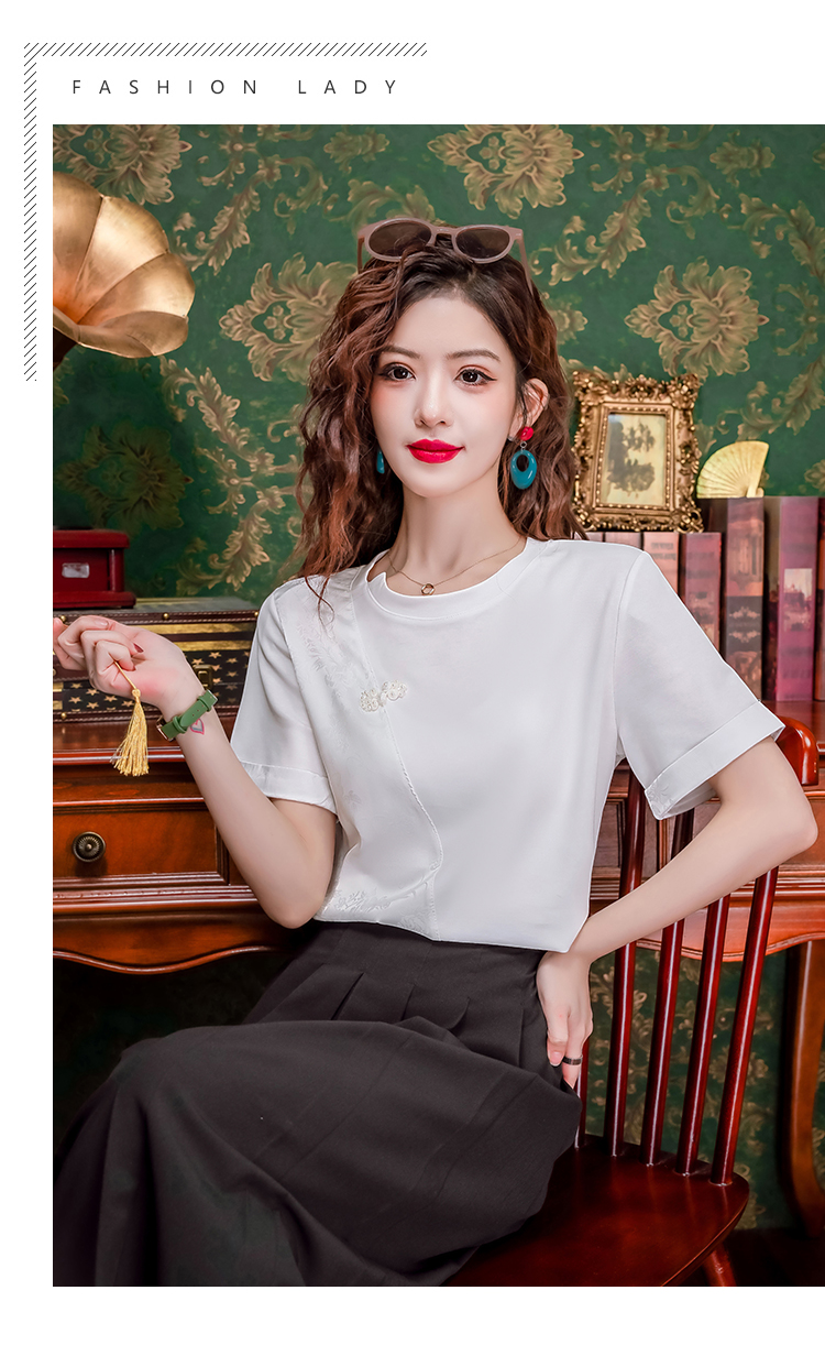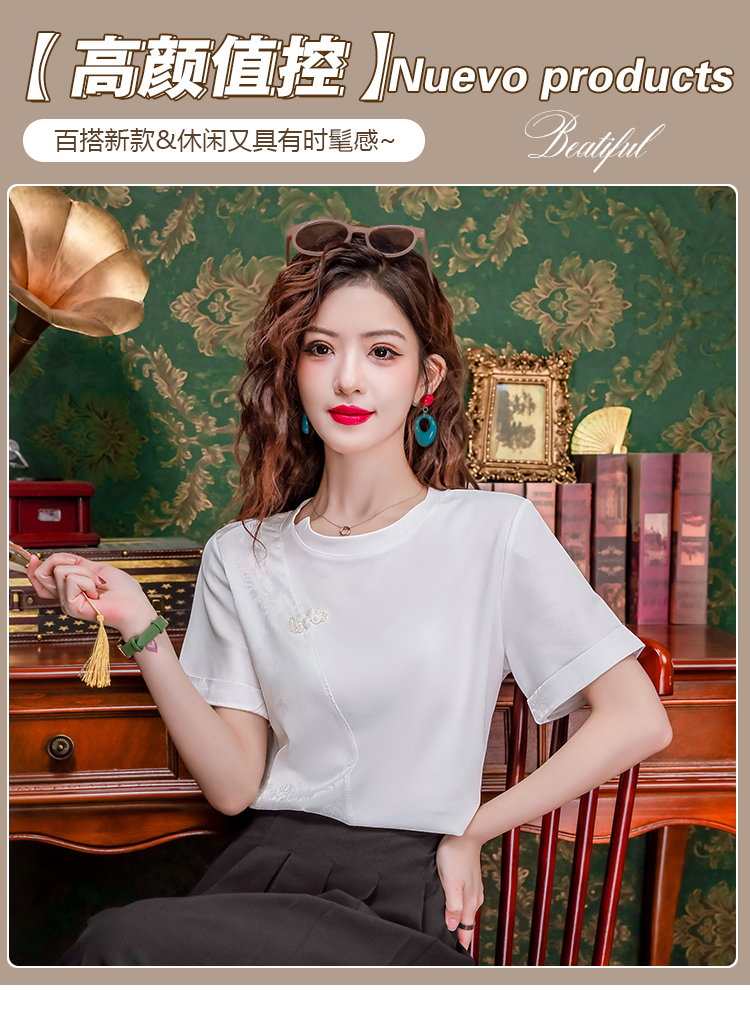 PF2422#设计感小众大气设计感盘扣别致简约百搭休闲短袖T恤套头上衣