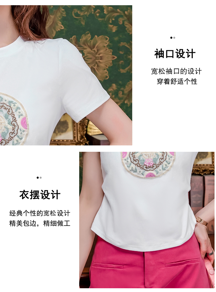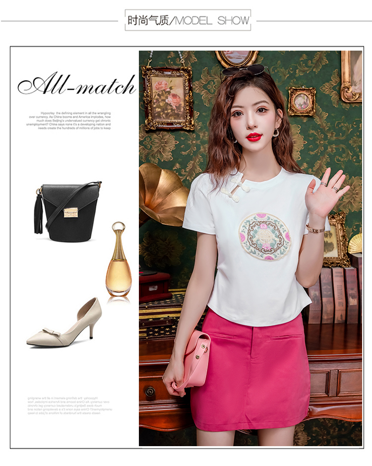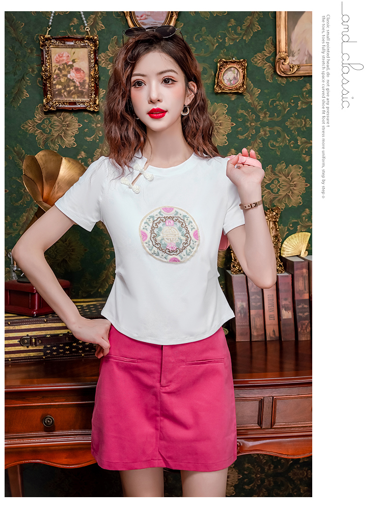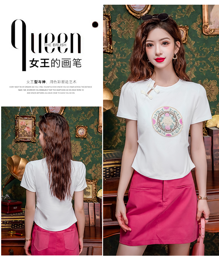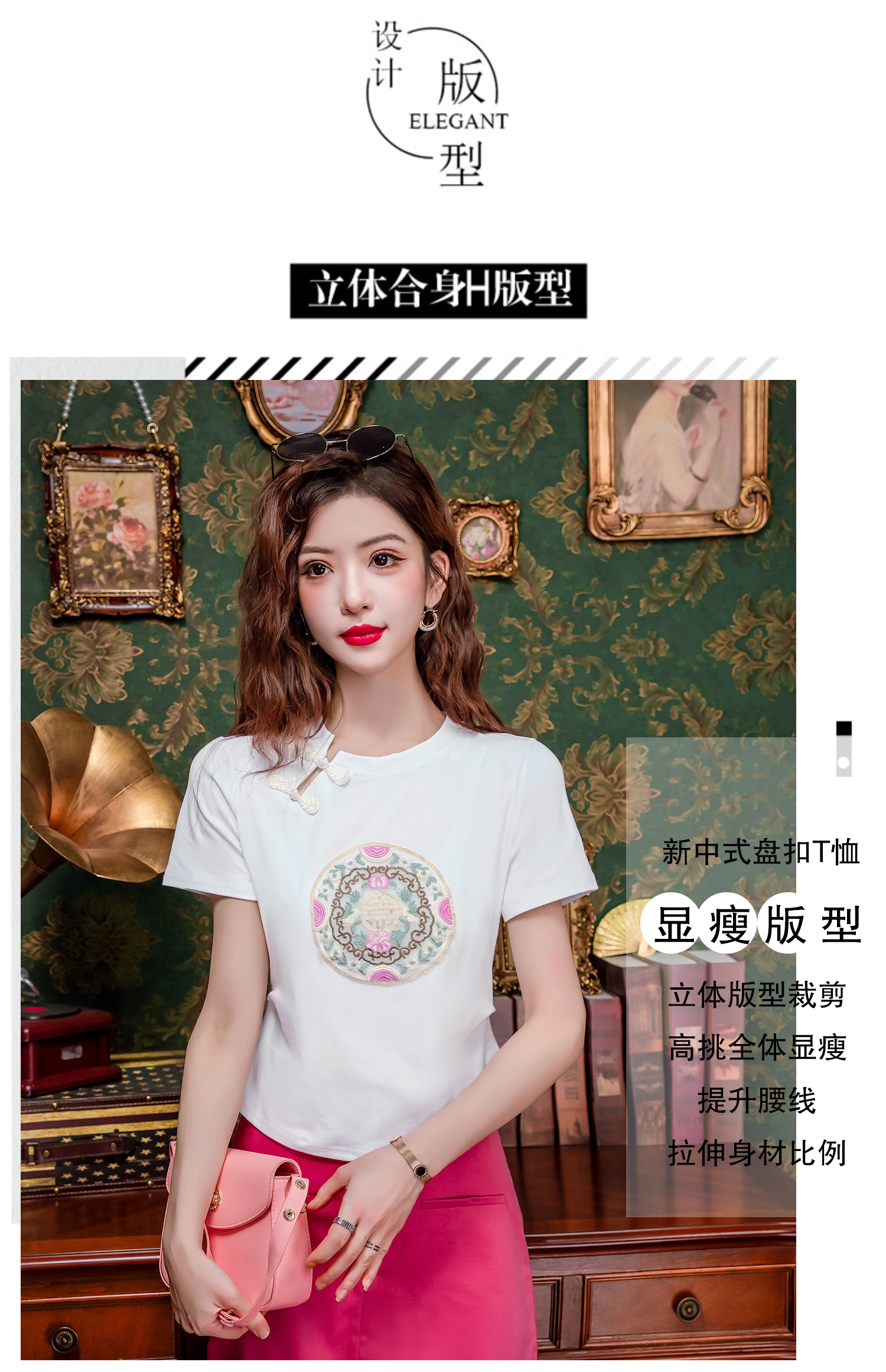 PF2425#新中式复古重工绣花设计感短袖套头好看别致大气盘扣上衣女