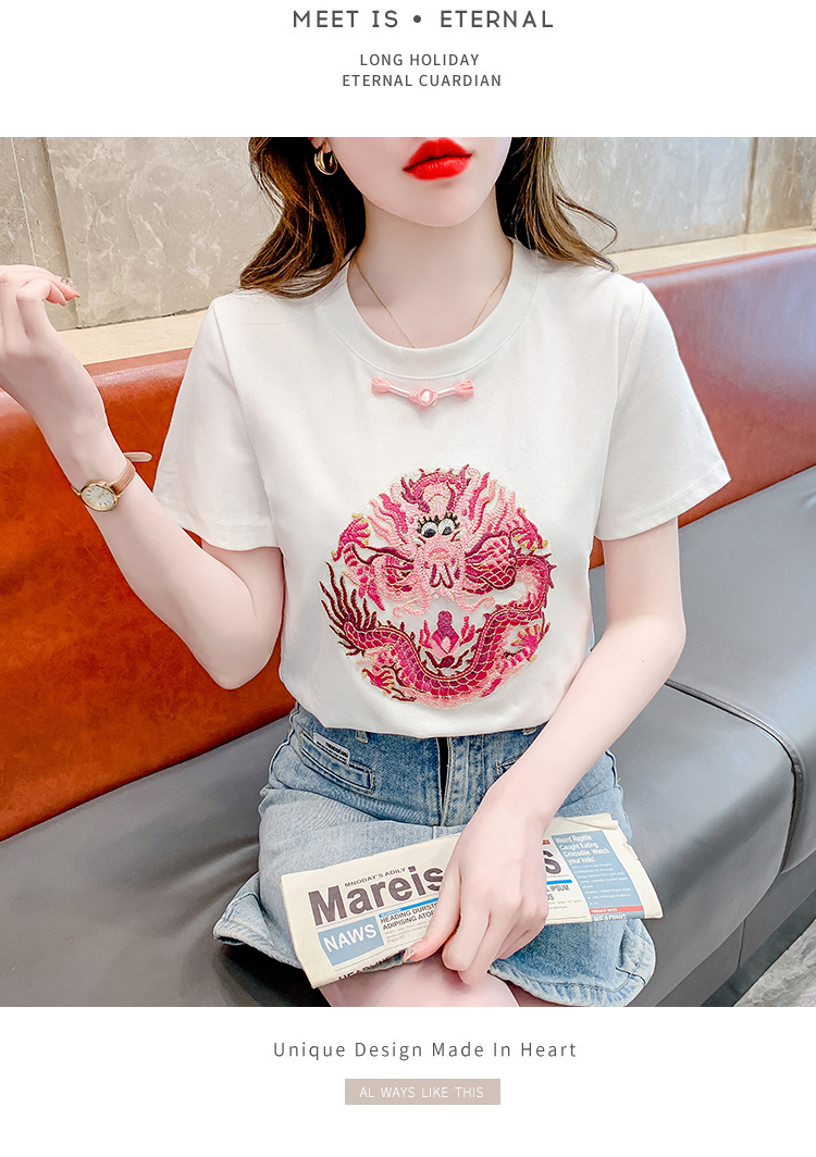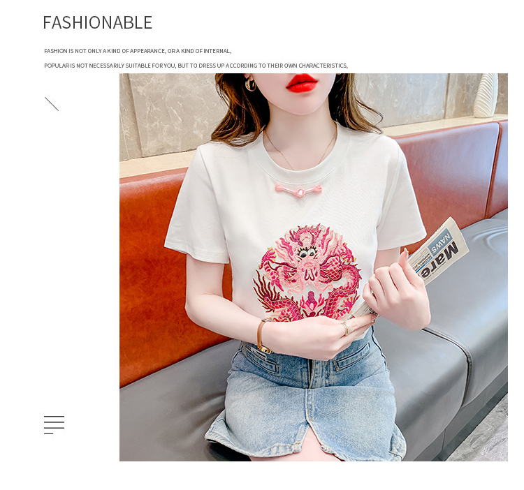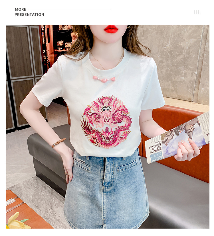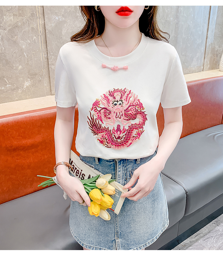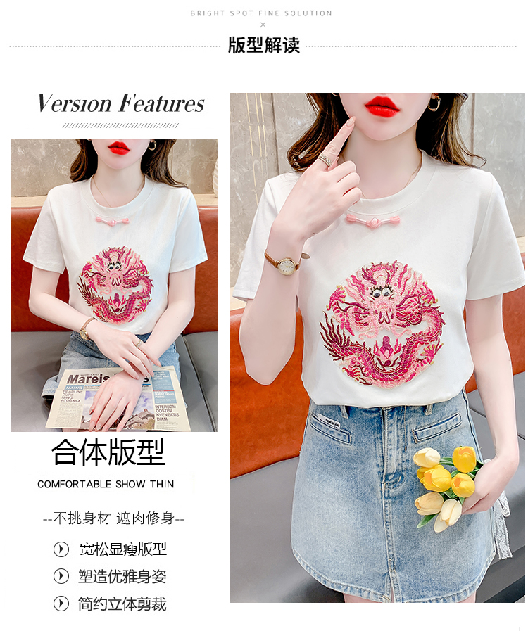PF2438#拼色新中式国风短袖盘扣T恤休闲百搭圆领套头上衣高级感小众女