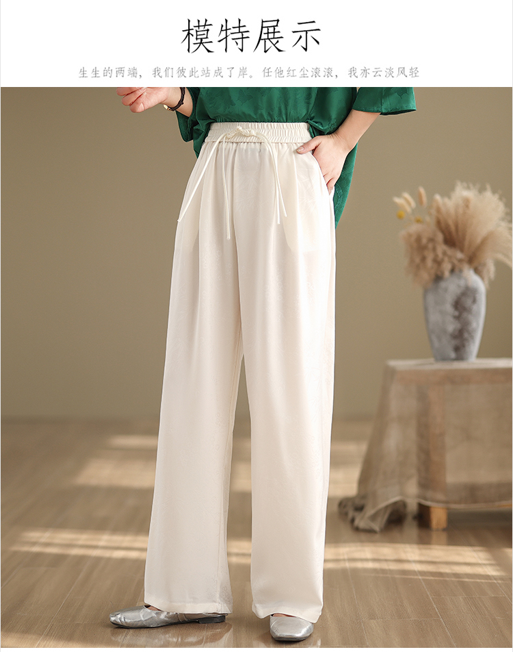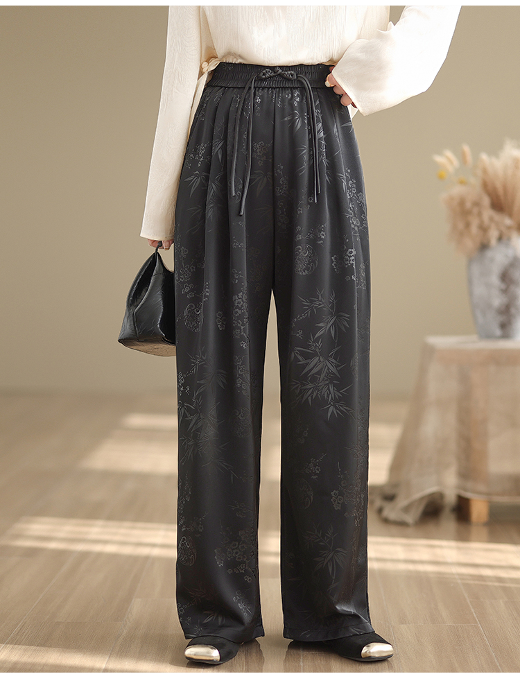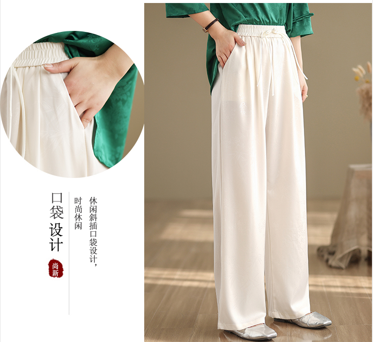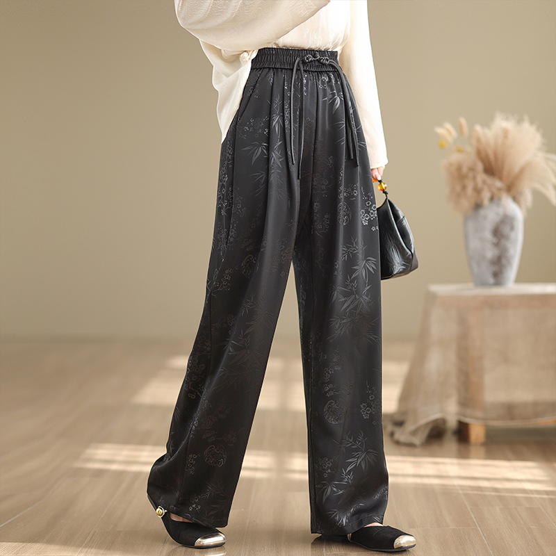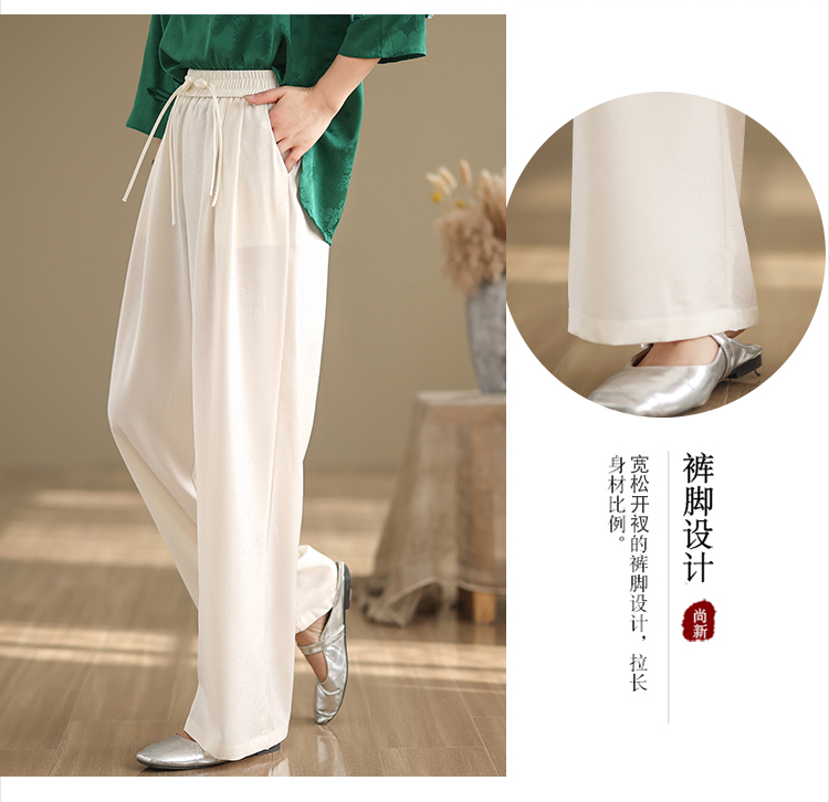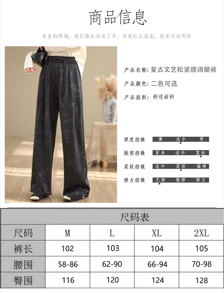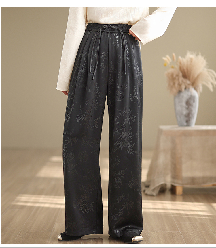 PF2474#国潮复古盘扣高腰阔腿裤女 暗纹提花新中式国风休闲裤