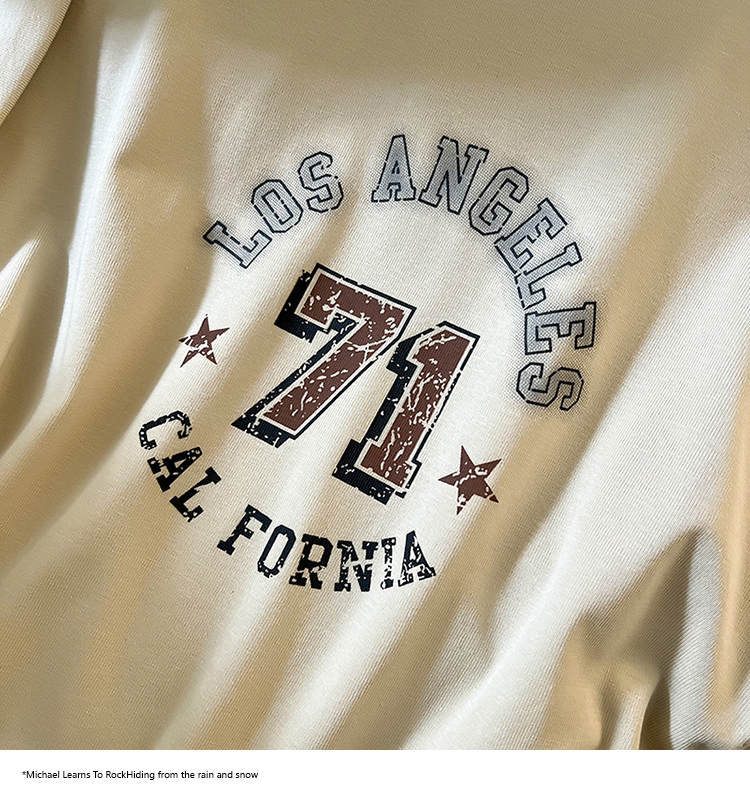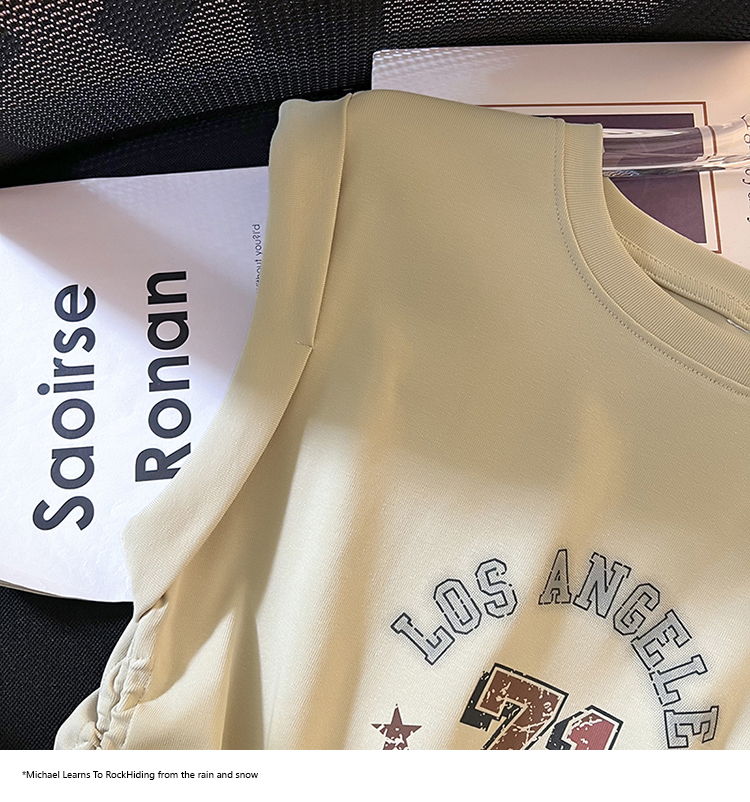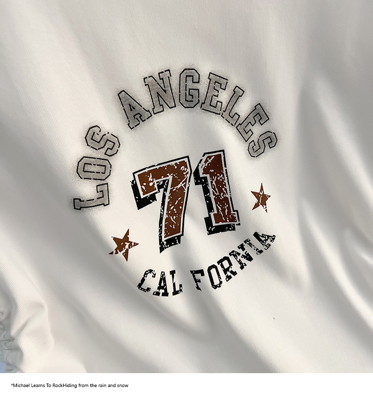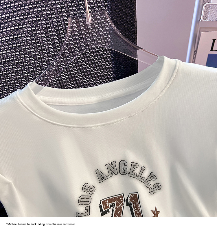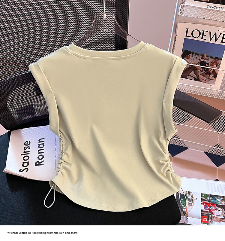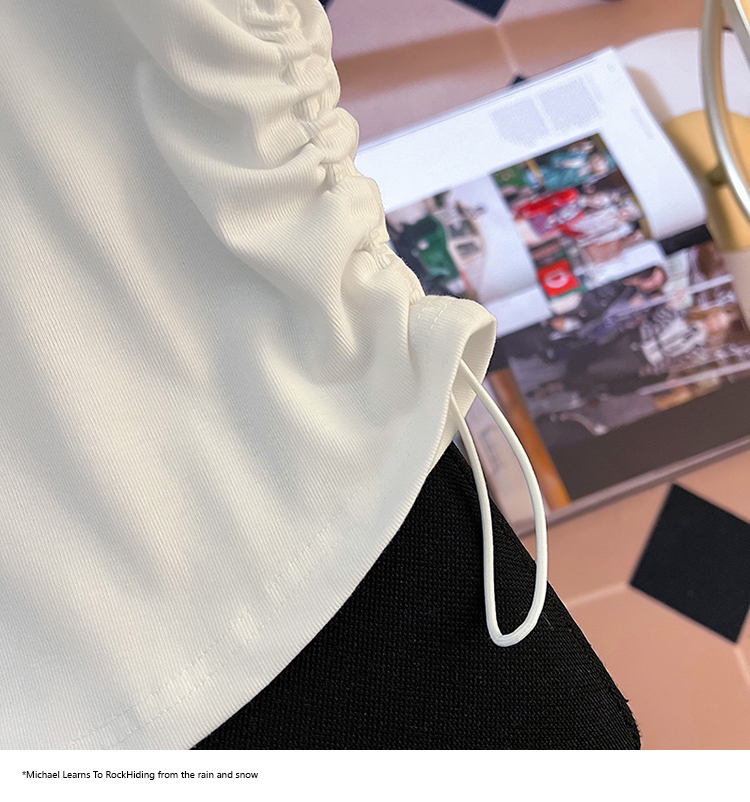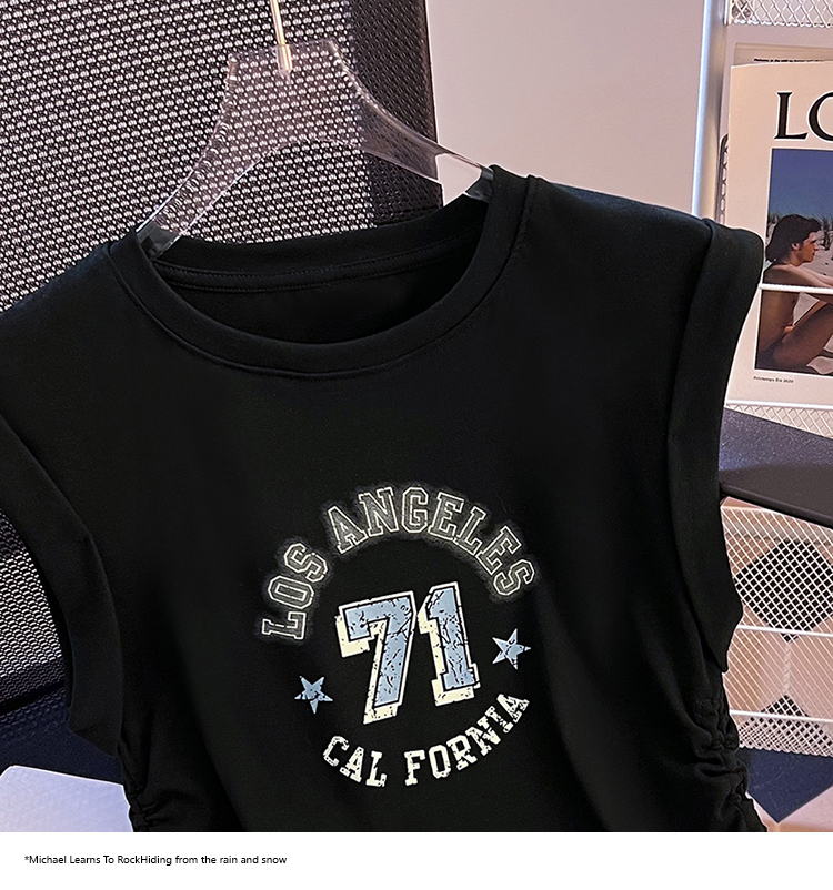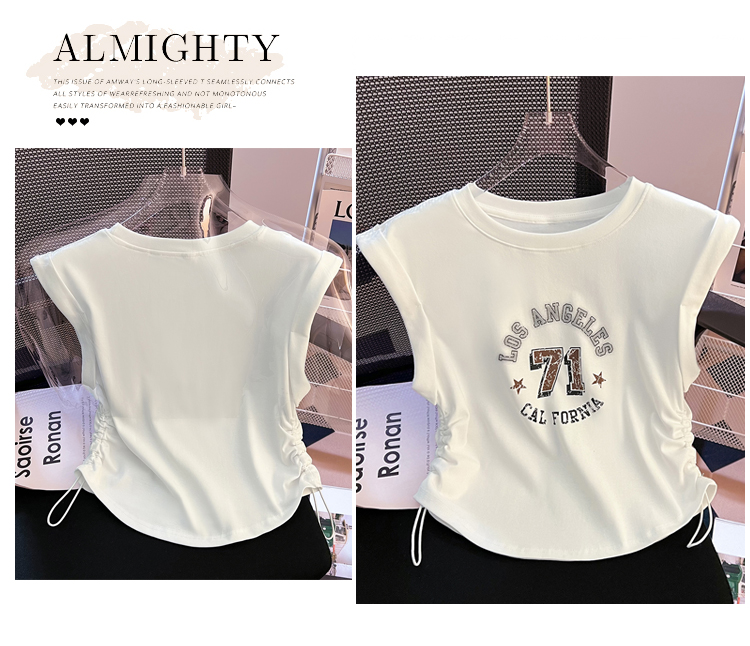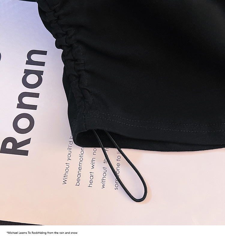 PF2554#新款实拍短袖t恤女圆领套头飞袖设计感小心机印花抽绳上衣女