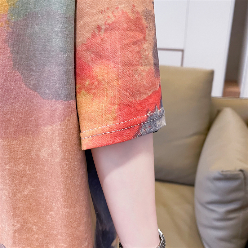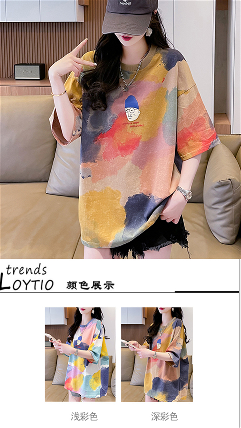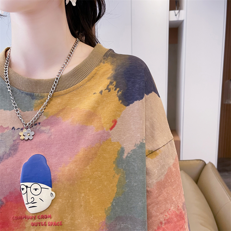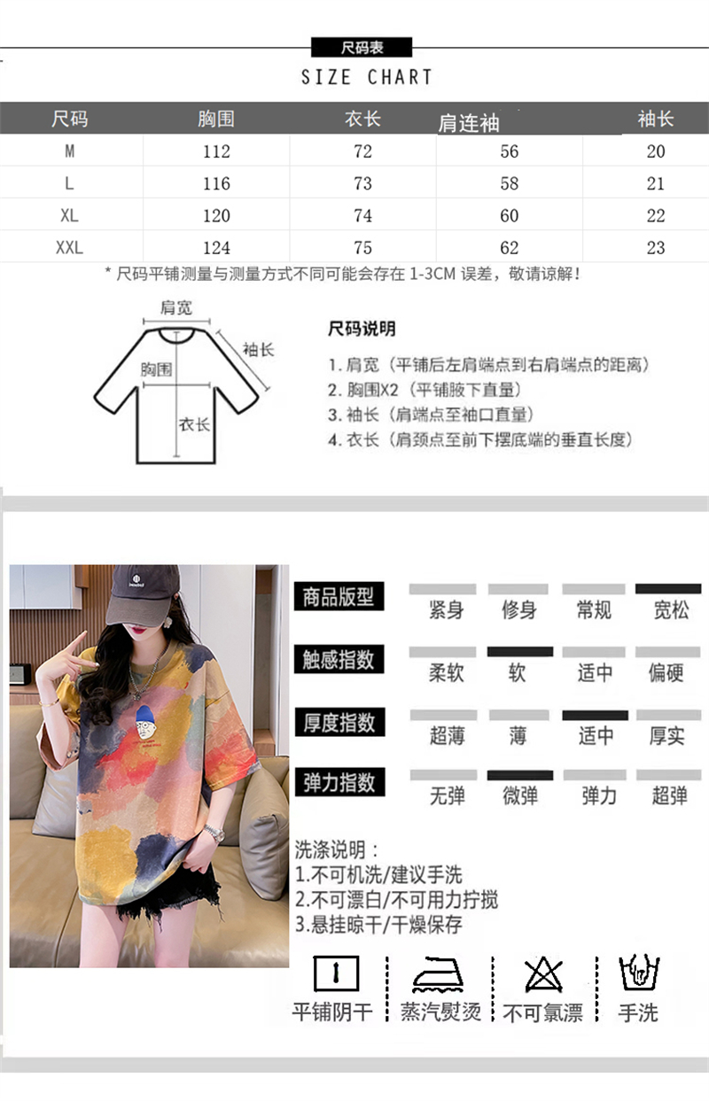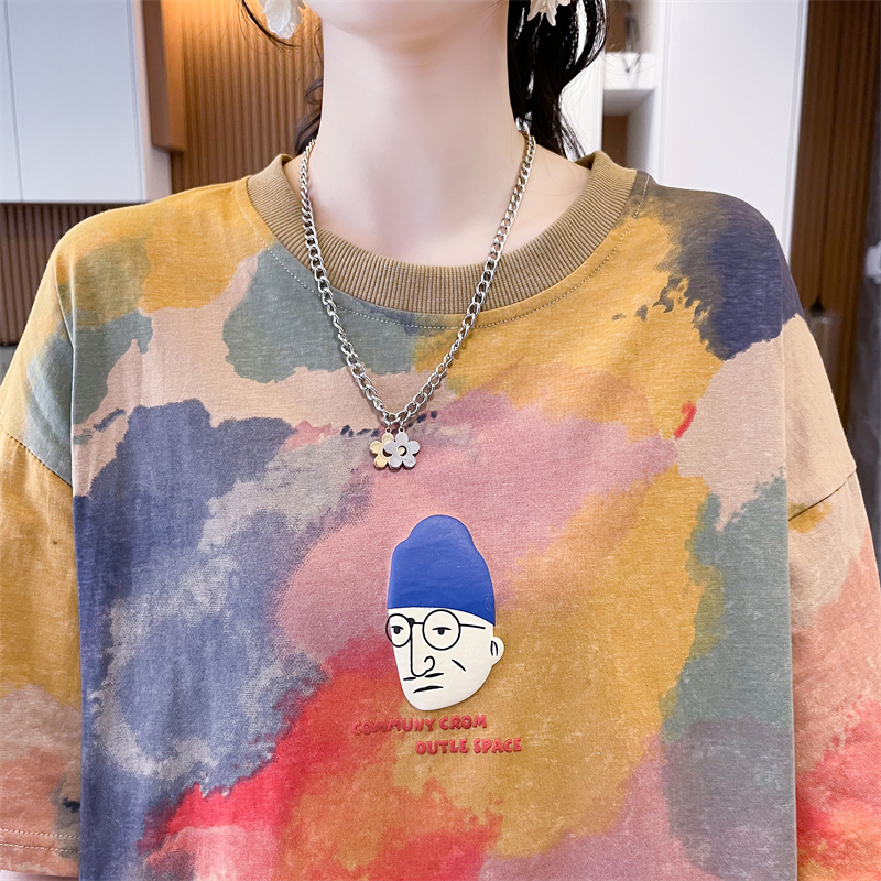 PF2559#小众设计感扎染卡通小熊涂鸦短袖t恤女宽松韩版上衣
