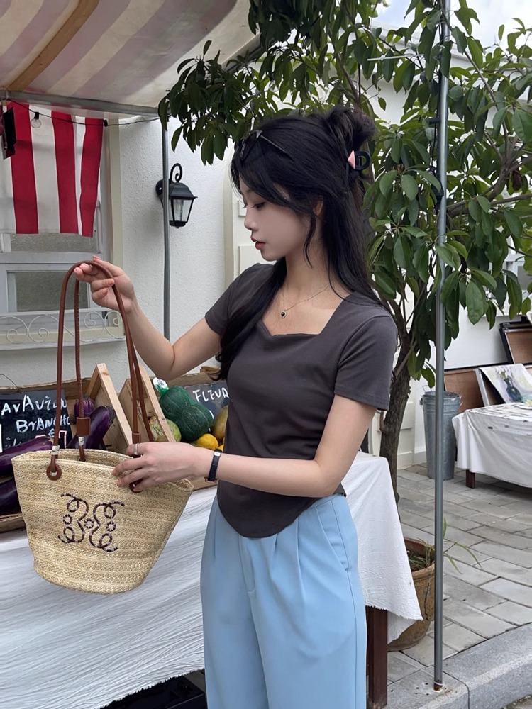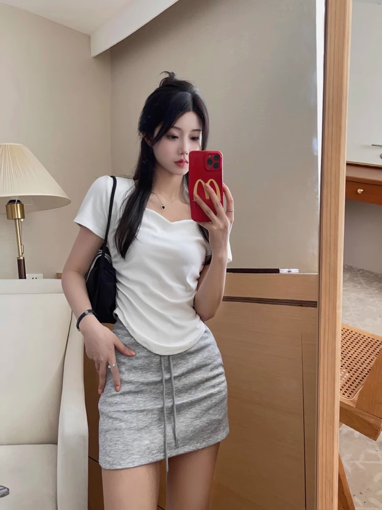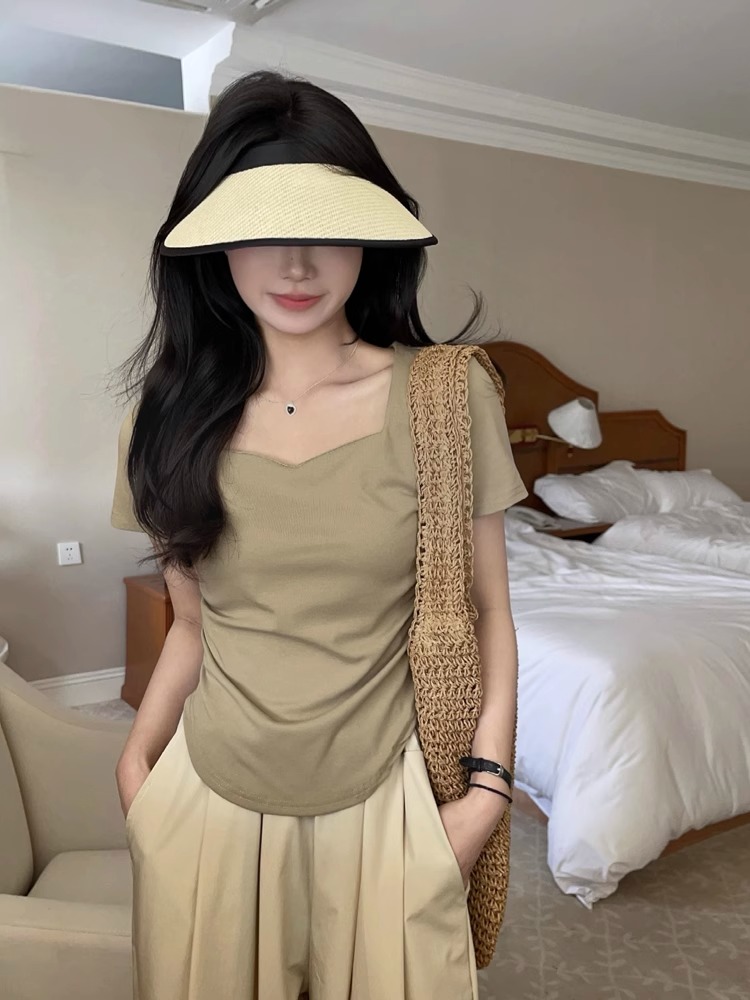 PF2561#纯棉 桃心领短袖T恤女夏季