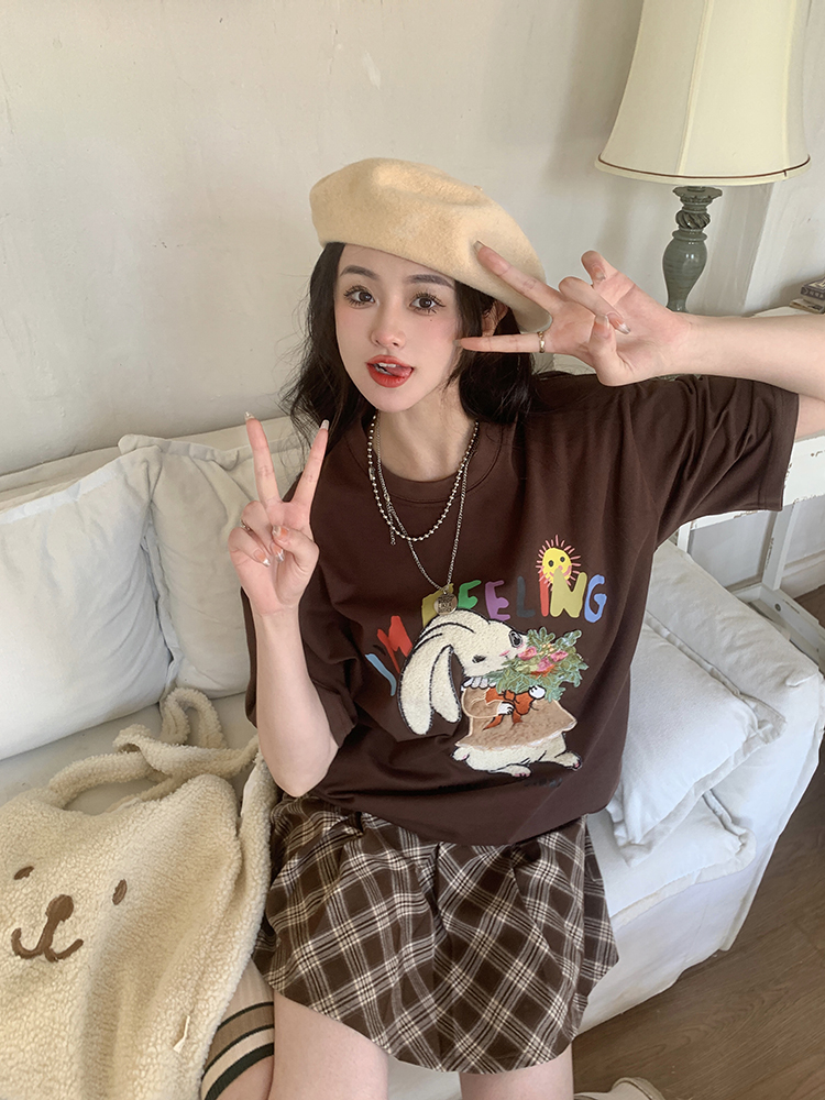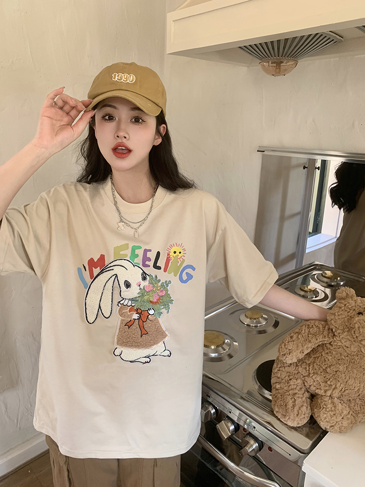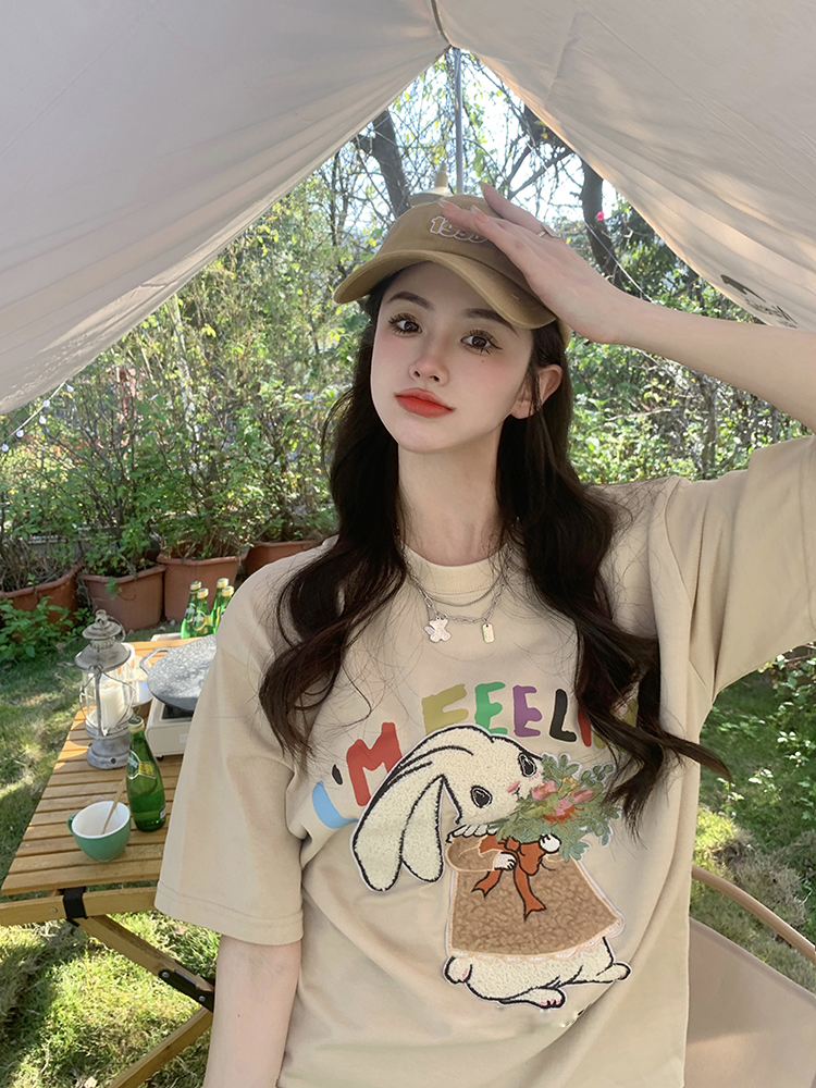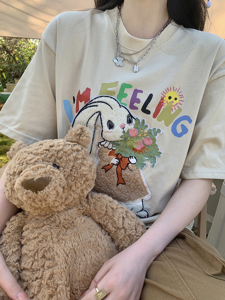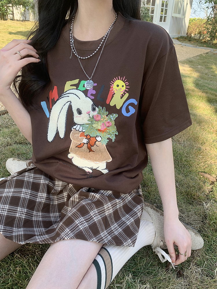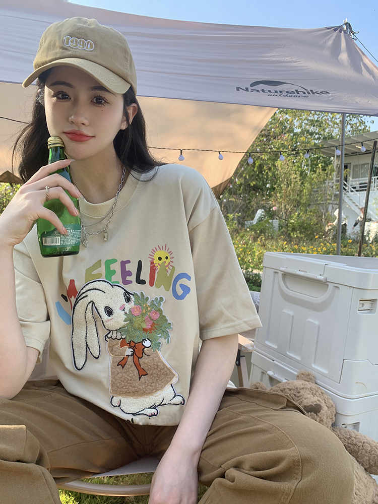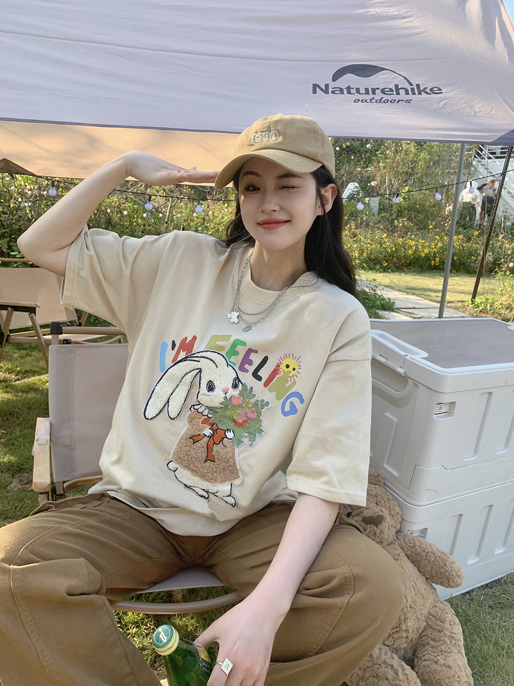 PF2562#精梳紧密 新款短袖t恤女印花+毛巾