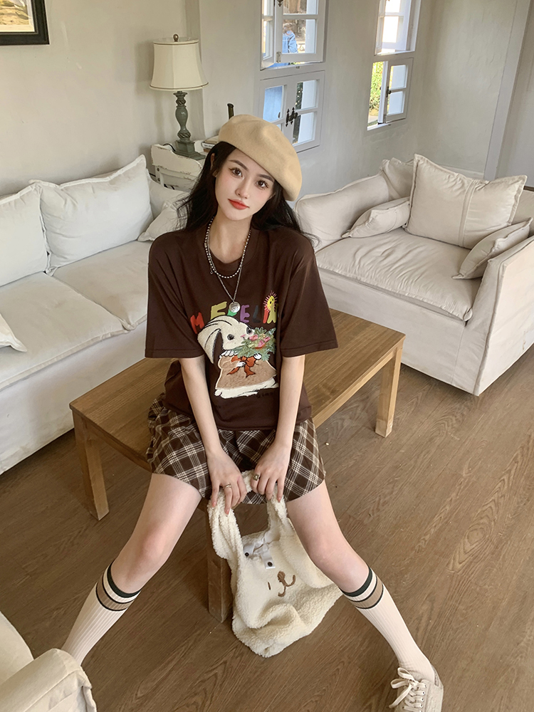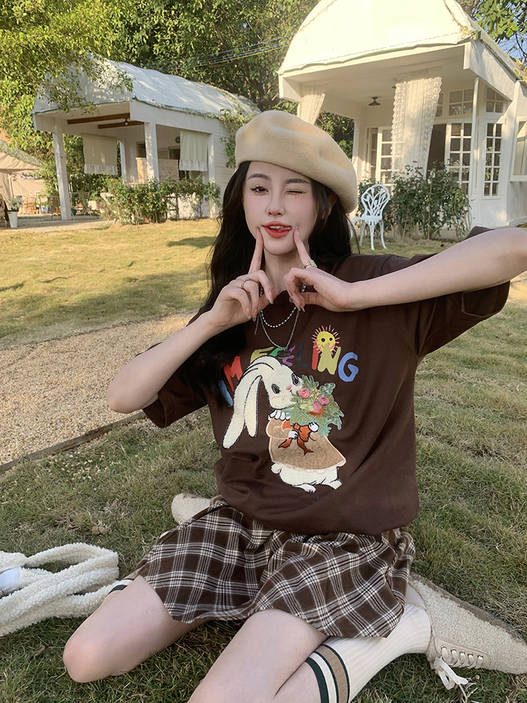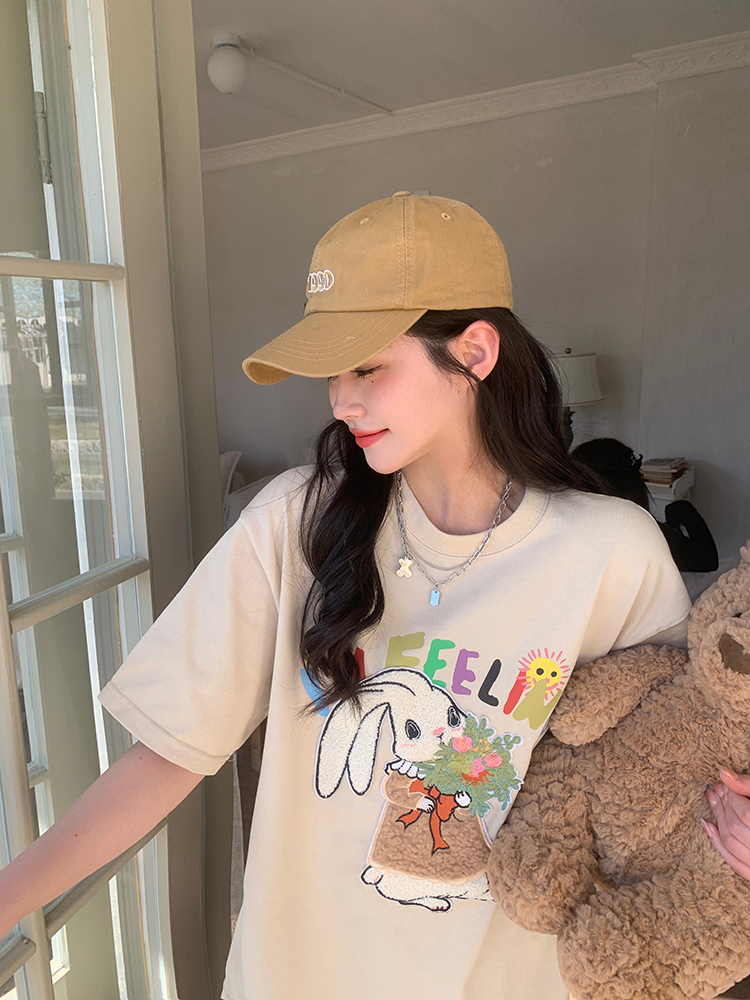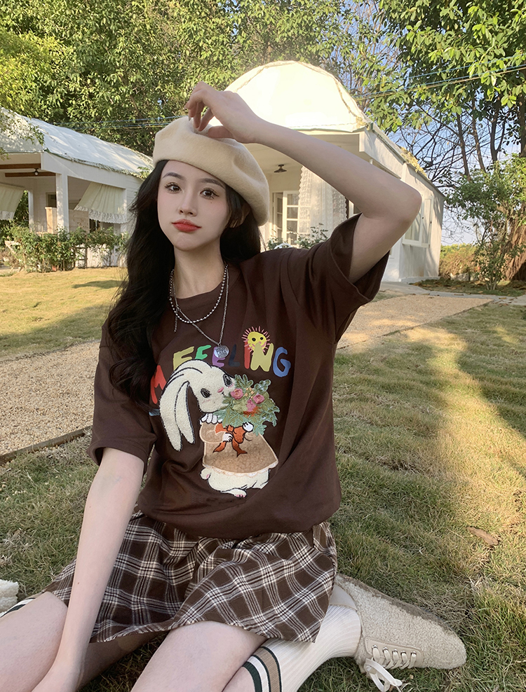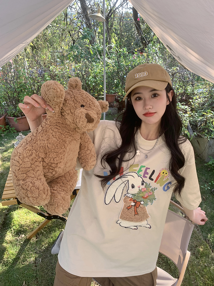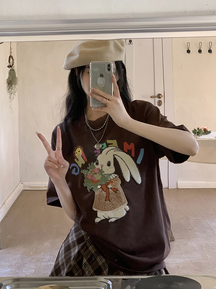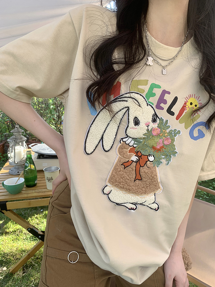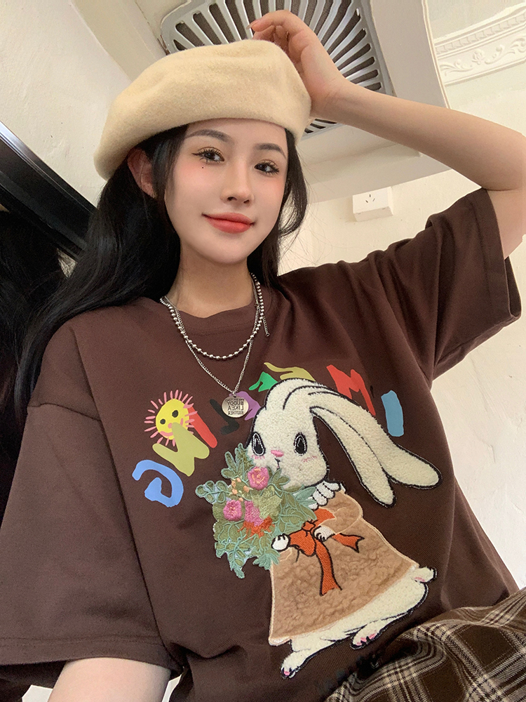 PF2562#精梳紧密 新款短袖t恤女印花+毛巾