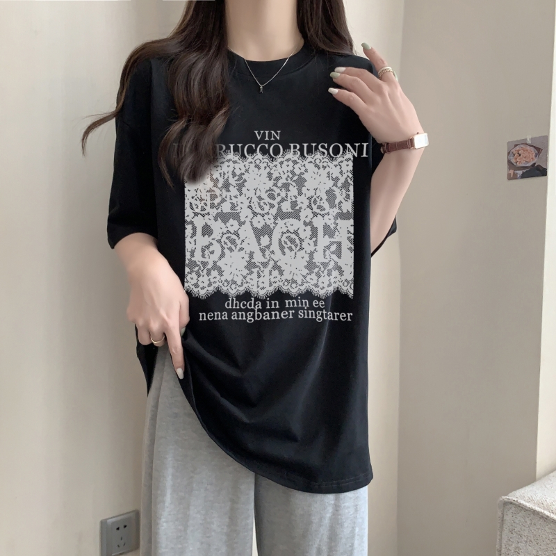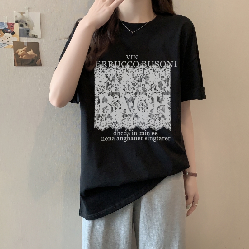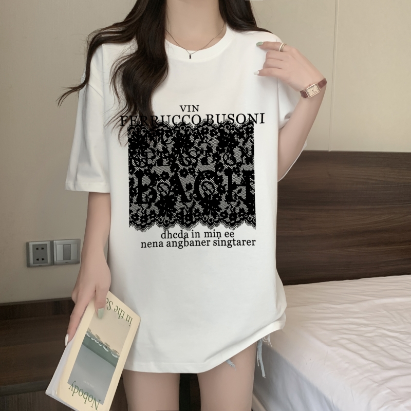 PF2623#100%棉精梳纯棉 印花夏装短袖T恤女宽松韩版