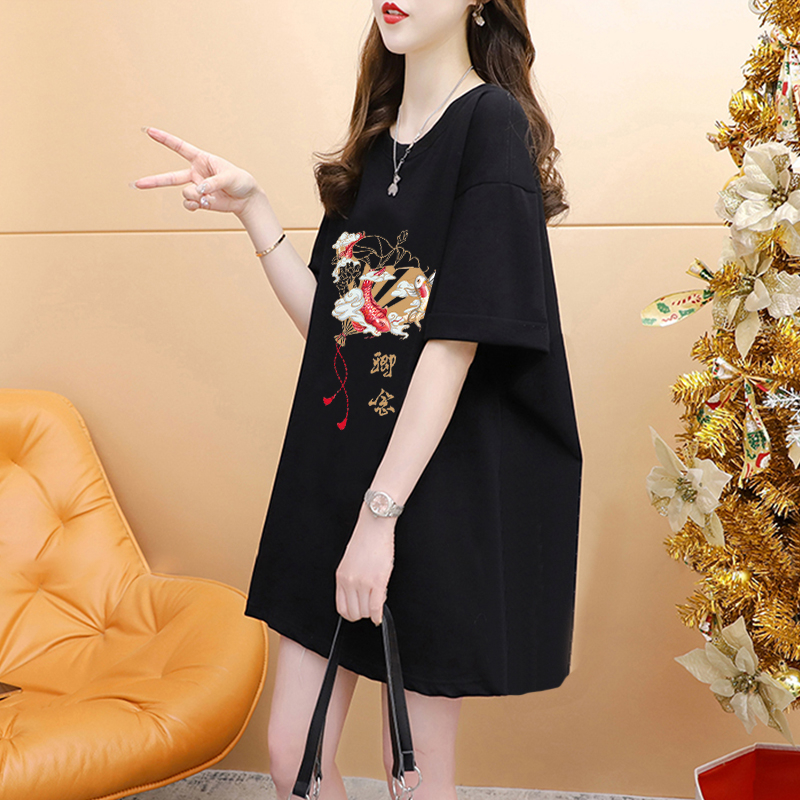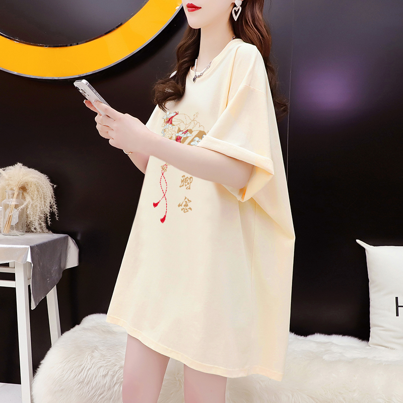 PF2660#纯棉夏季2024超火国风设计印花圆领短袖T恤女