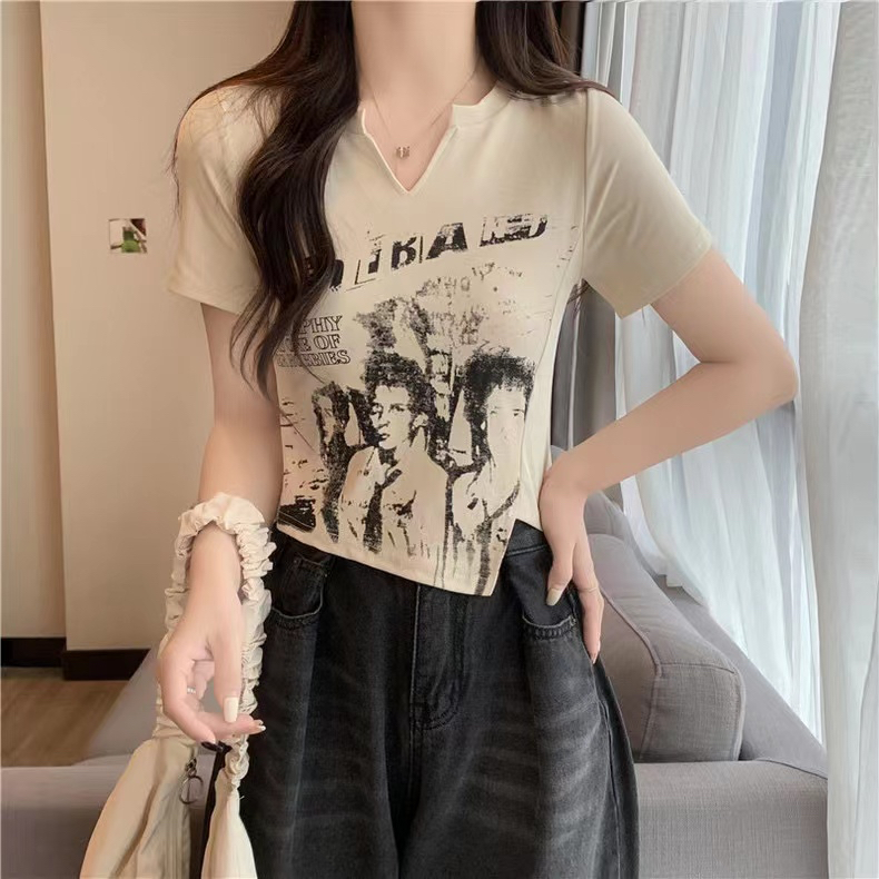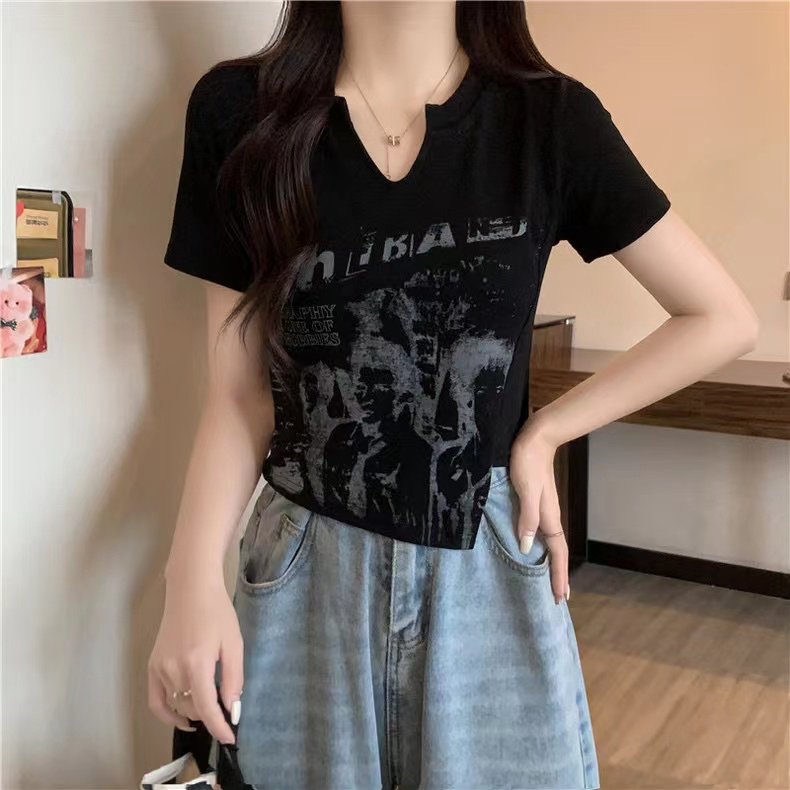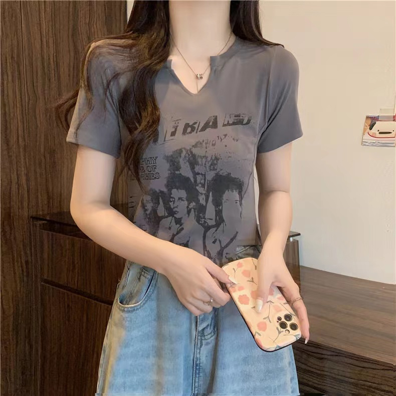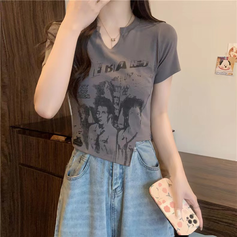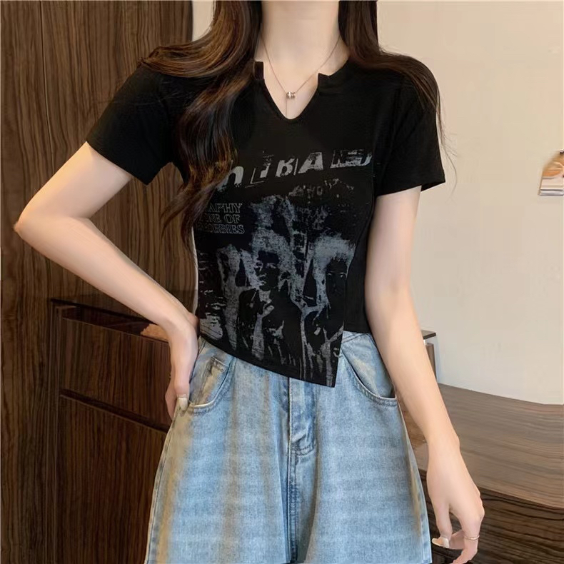 PF2691#爆款纯棉罗纹不规则短袖t恤女简约休闲超修身常规套头