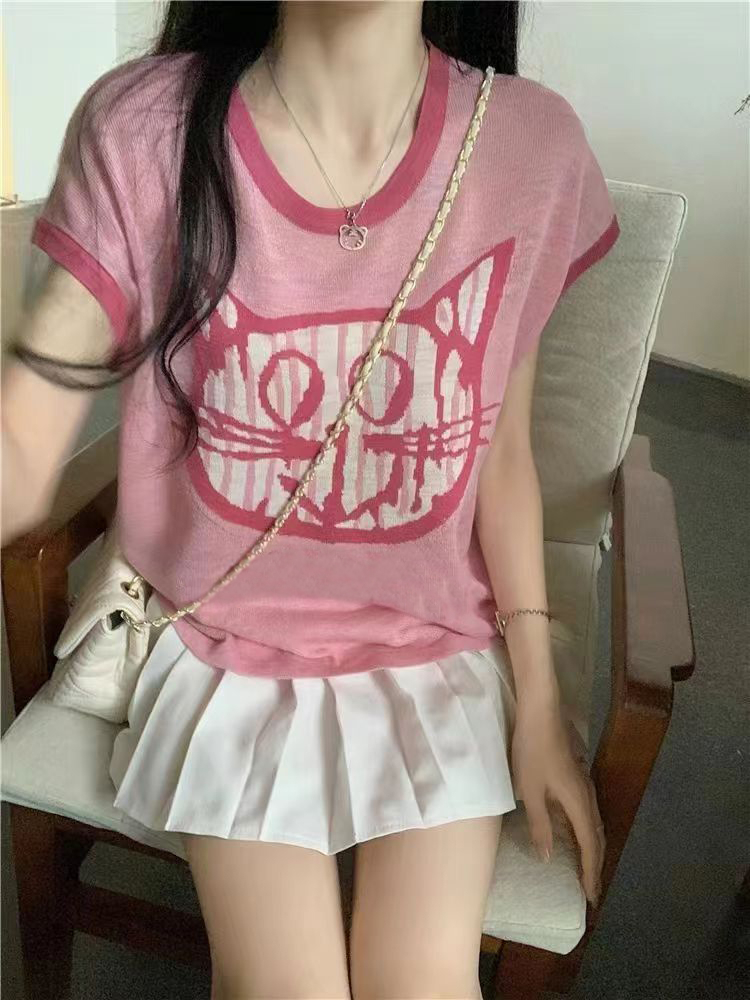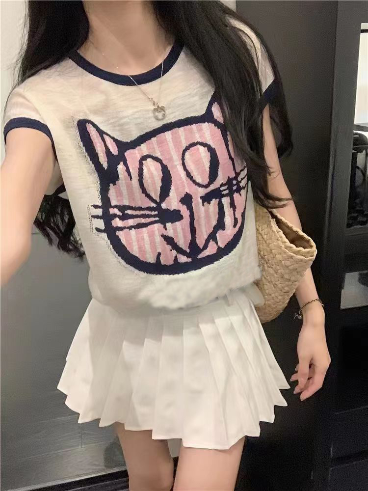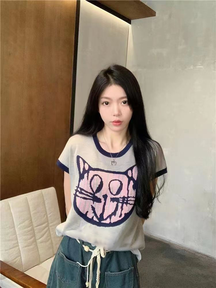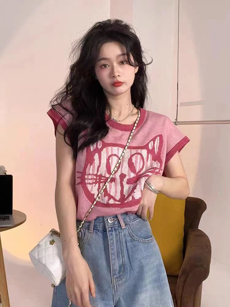 PF2694#夏日清新穿搭正肩短袖t恤女夏季2024新款圆领宽松显瘦辣妹上衣