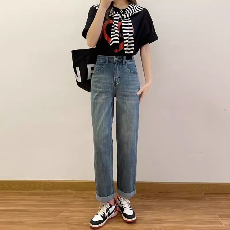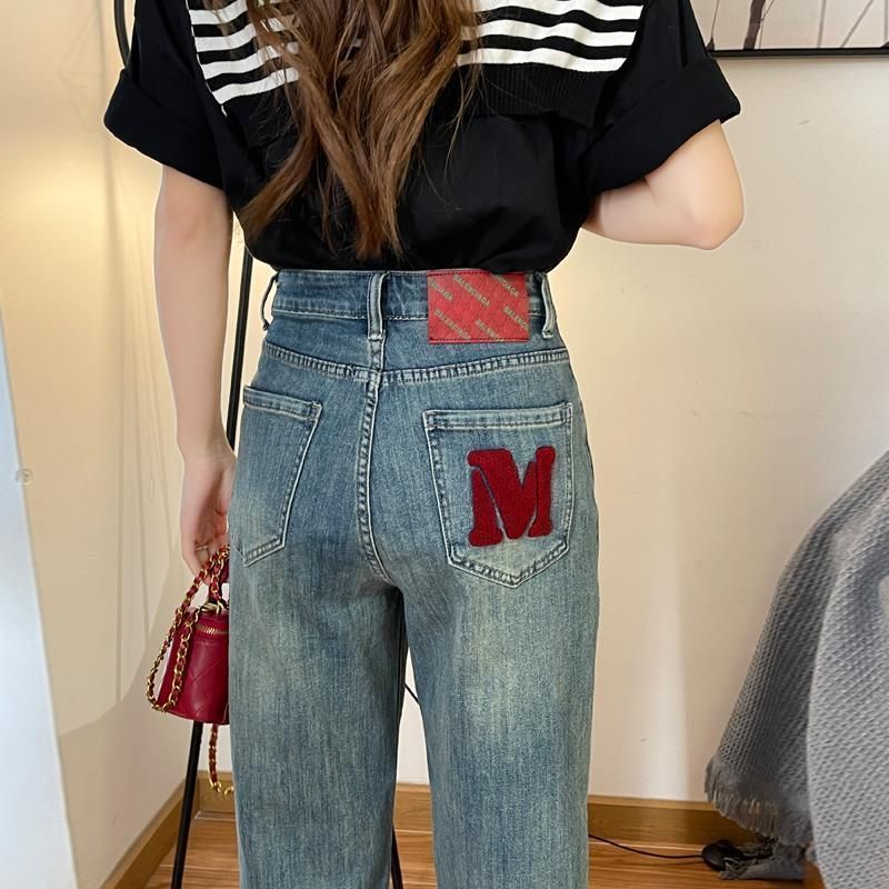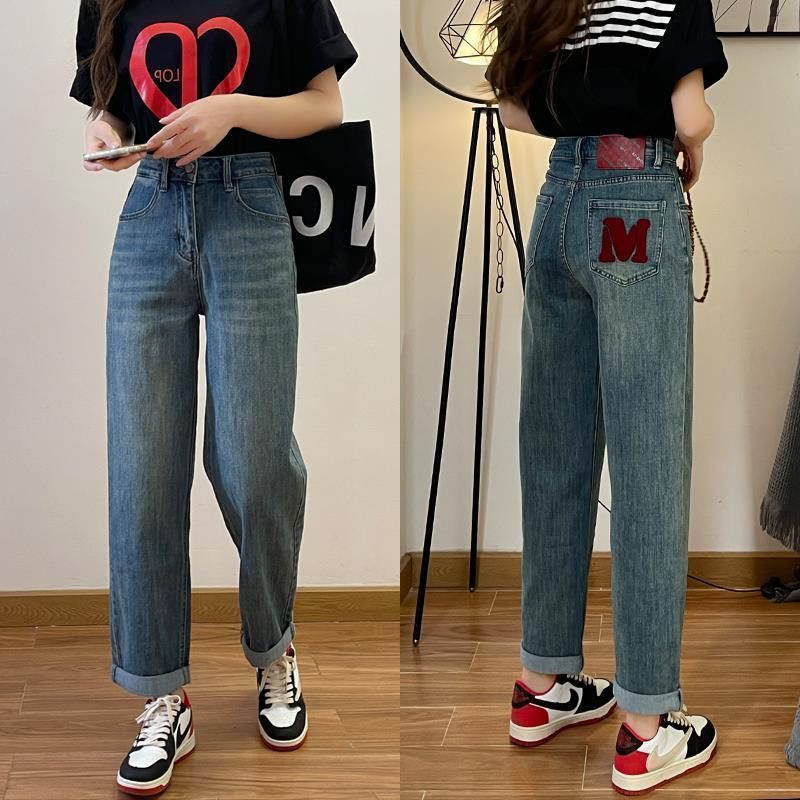 PF2710#夏季新款女小众设计口袋字母刺绣直筒裤宽松百搭老爹裤潮流