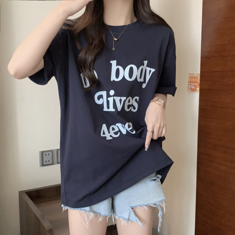PF2741#棉精梳纯棉宽松大码2024夏季短袖t恤女