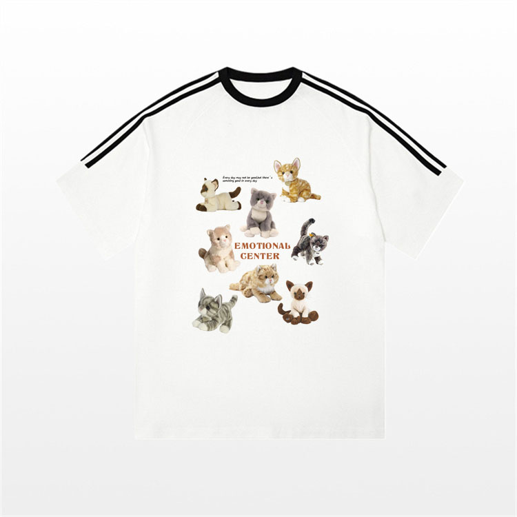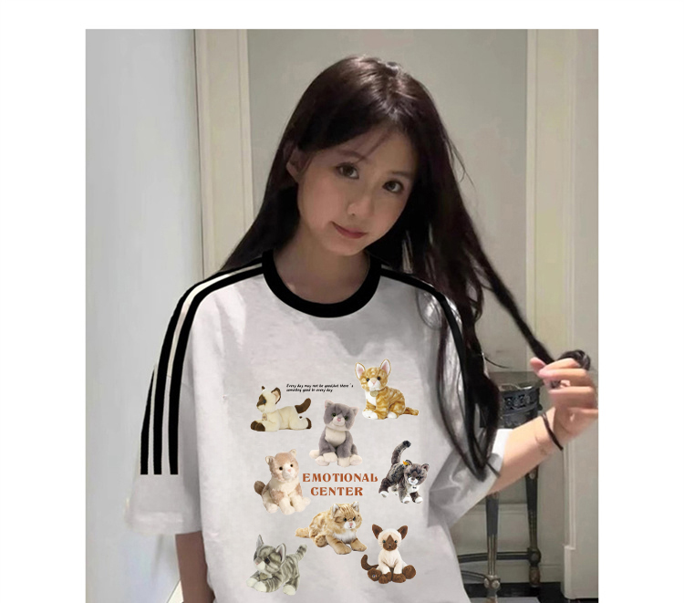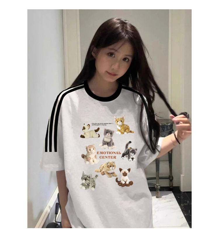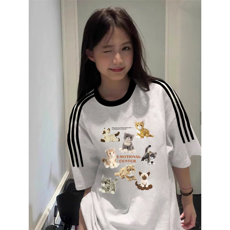 PF2742#纯棉三条杠短袖T恤女韩版新款设计感卡通上衣