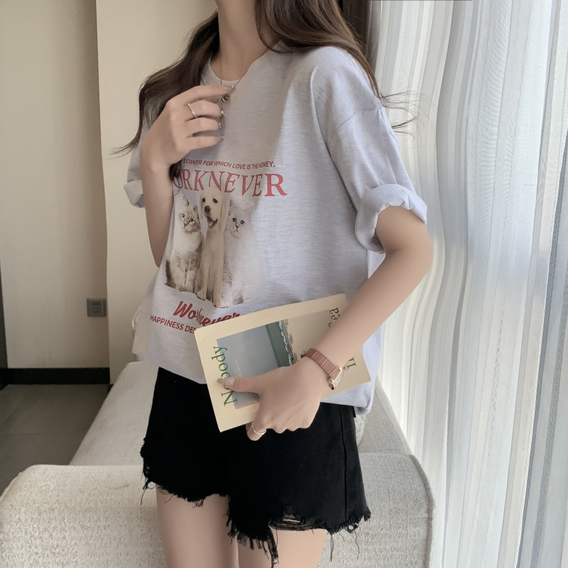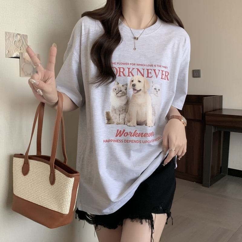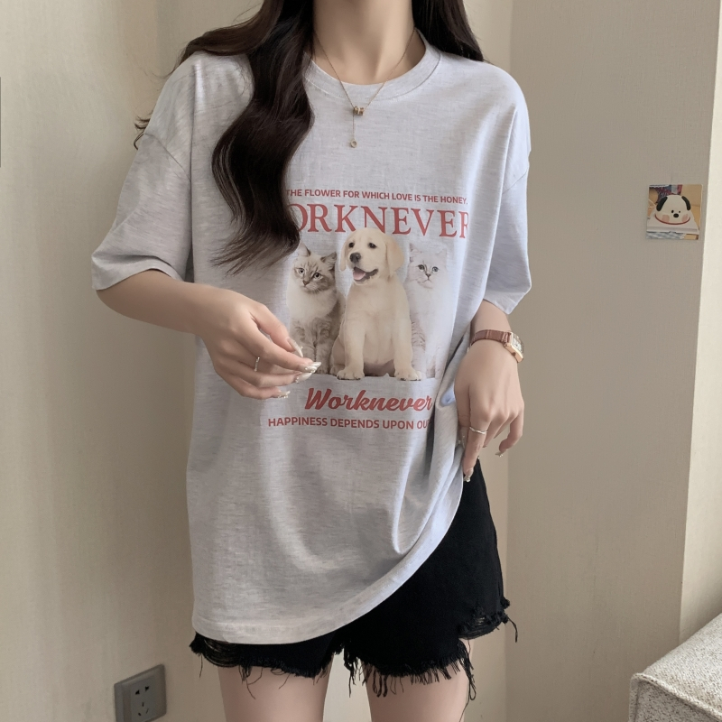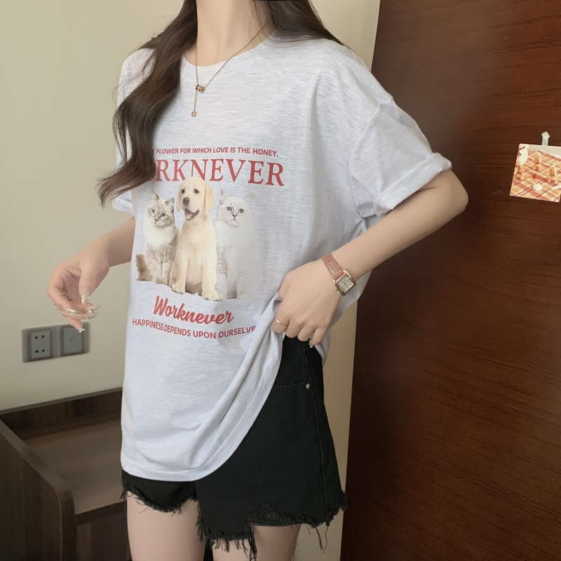 PF2744#100%棉精梳纯棉宽松大码2024夏季短袖t恤女
