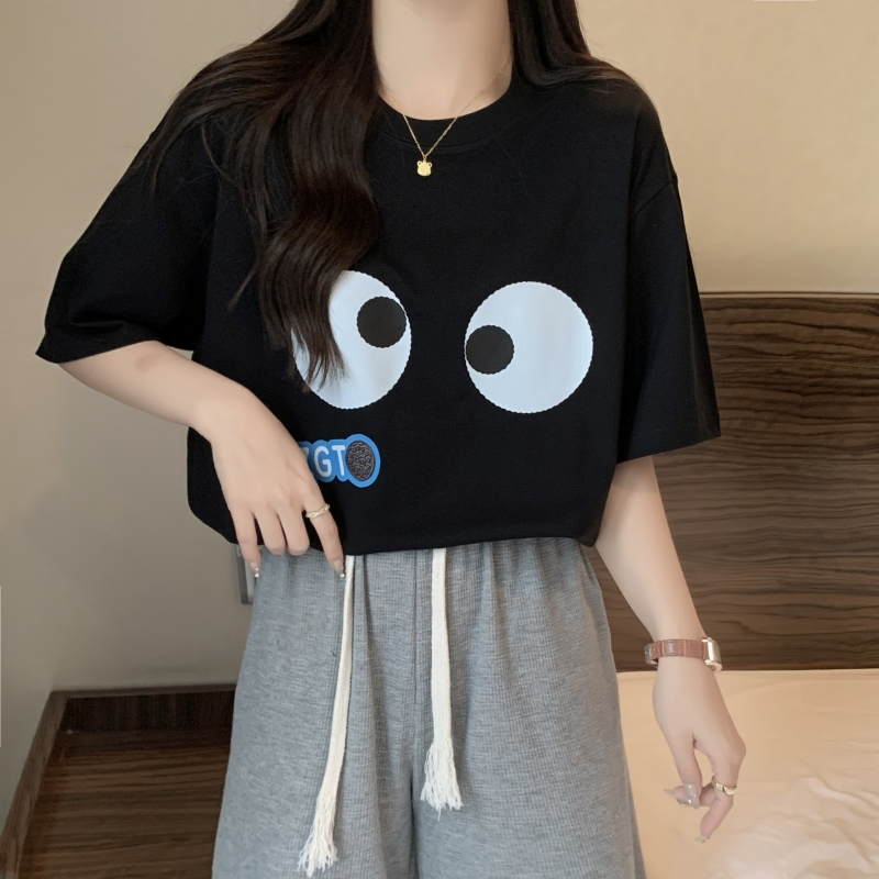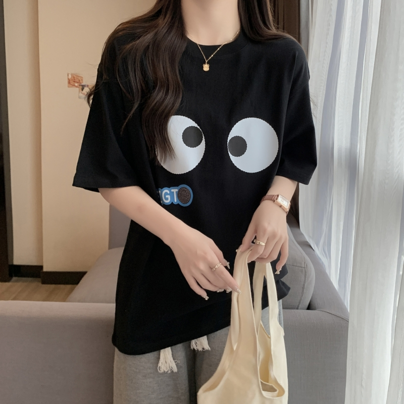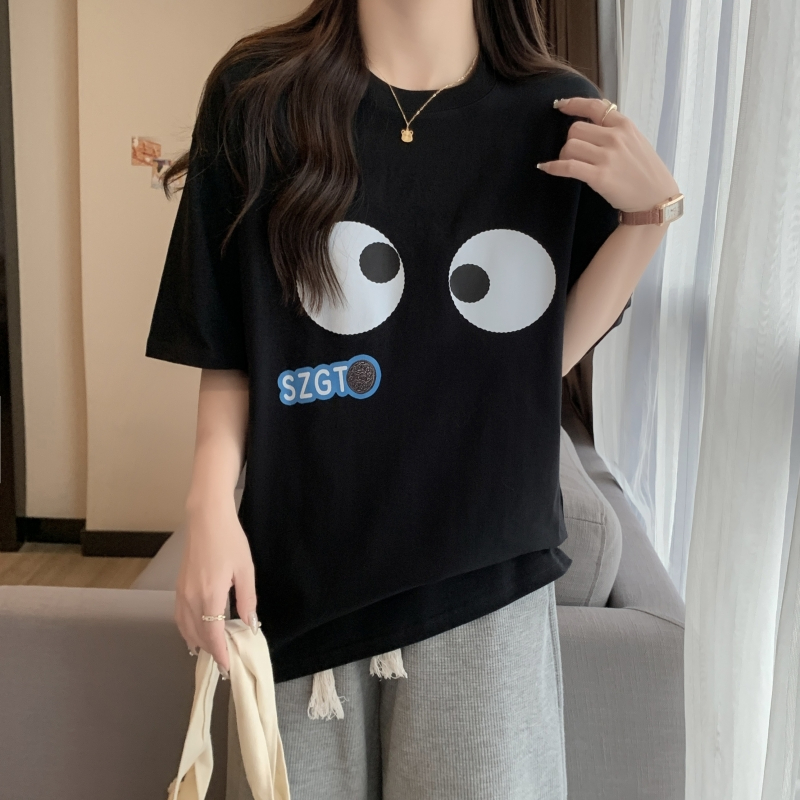 PF2750#100%棉精梳纯棉大码 夏季短袖t恤女学院风宽松韩版