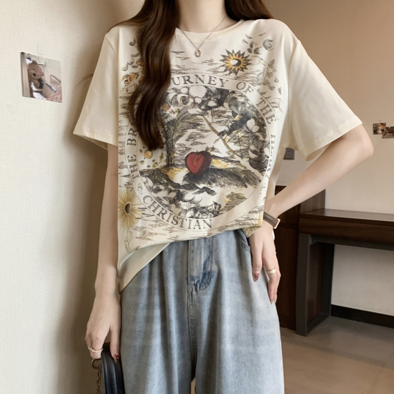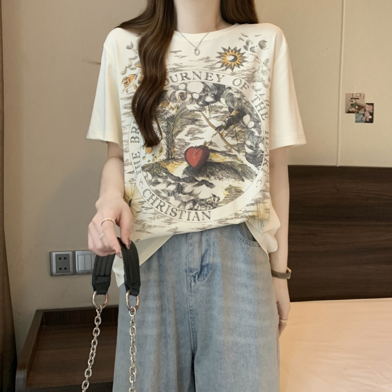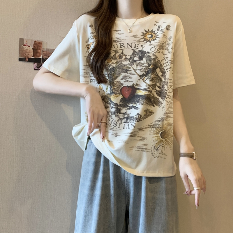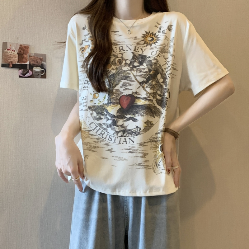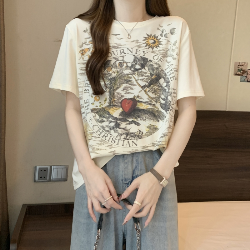 PF2751#纯棉短袖T恤女 夏季韩版新款设计感前后印花学院风上衣