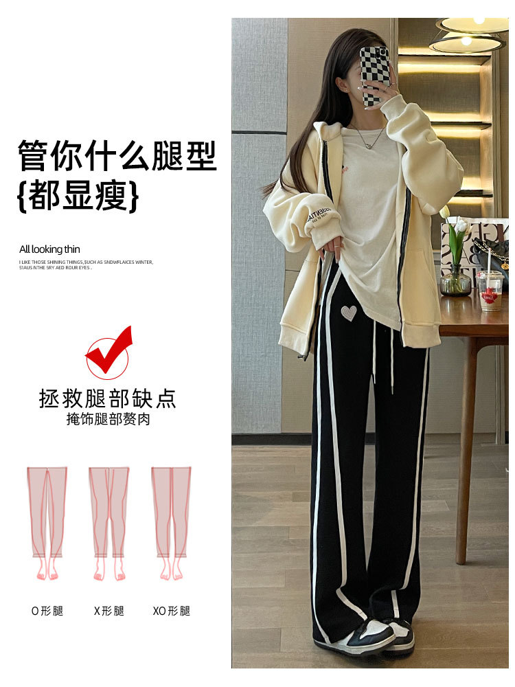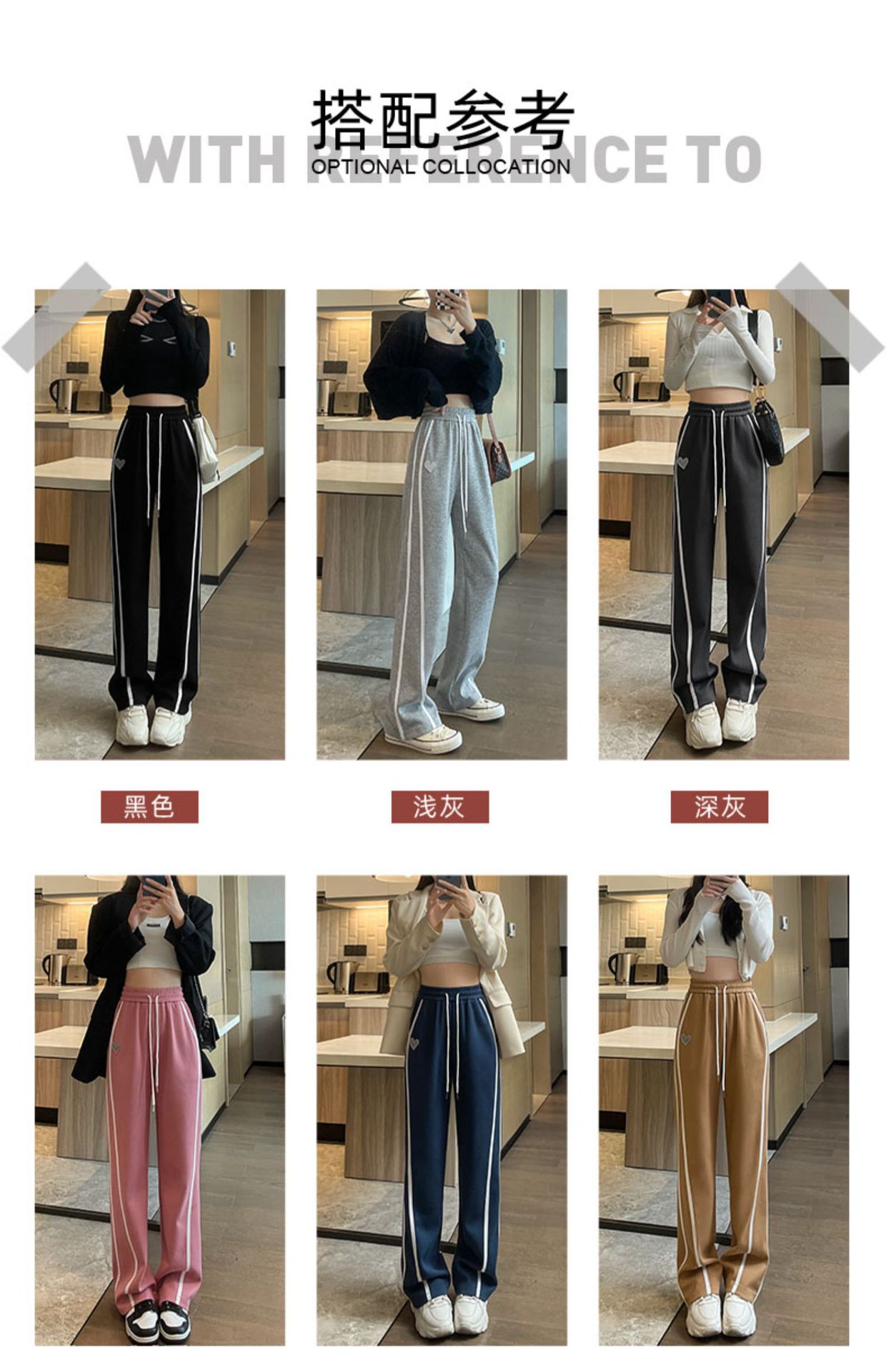 PF2788#阔腿裤女春秋高腰垂感卫裤潮宽松直筒拖地裤子