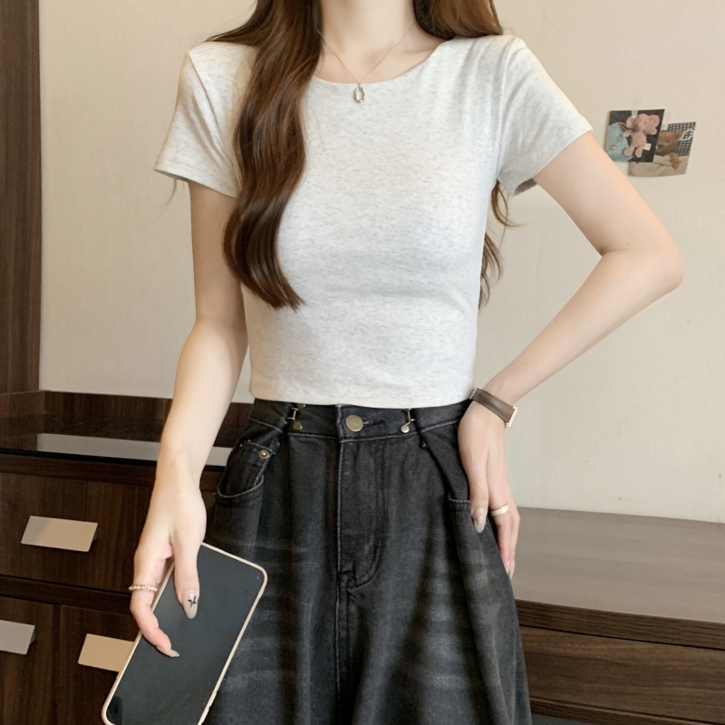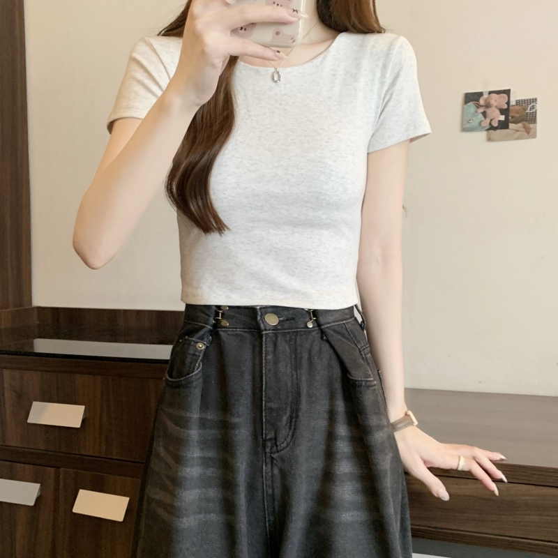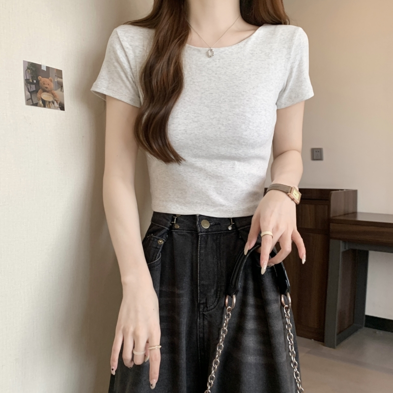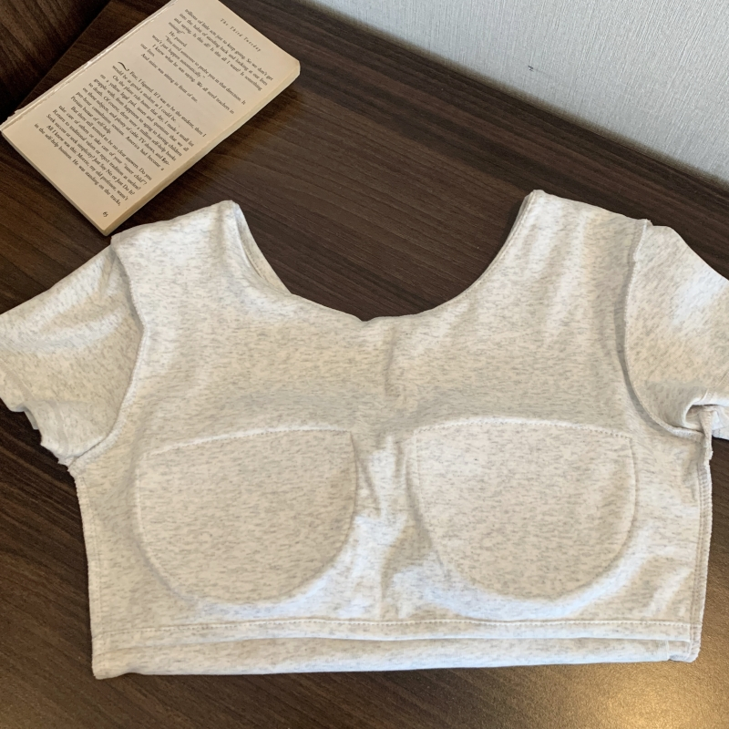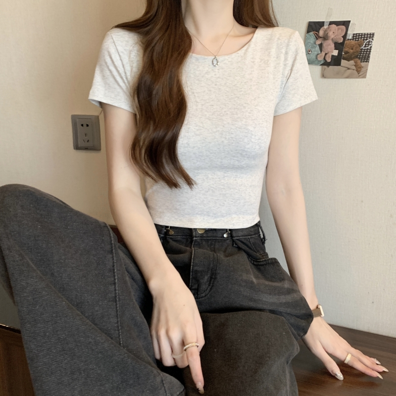 PF2791# 有胸垫设计感小众纯色短袖T恤