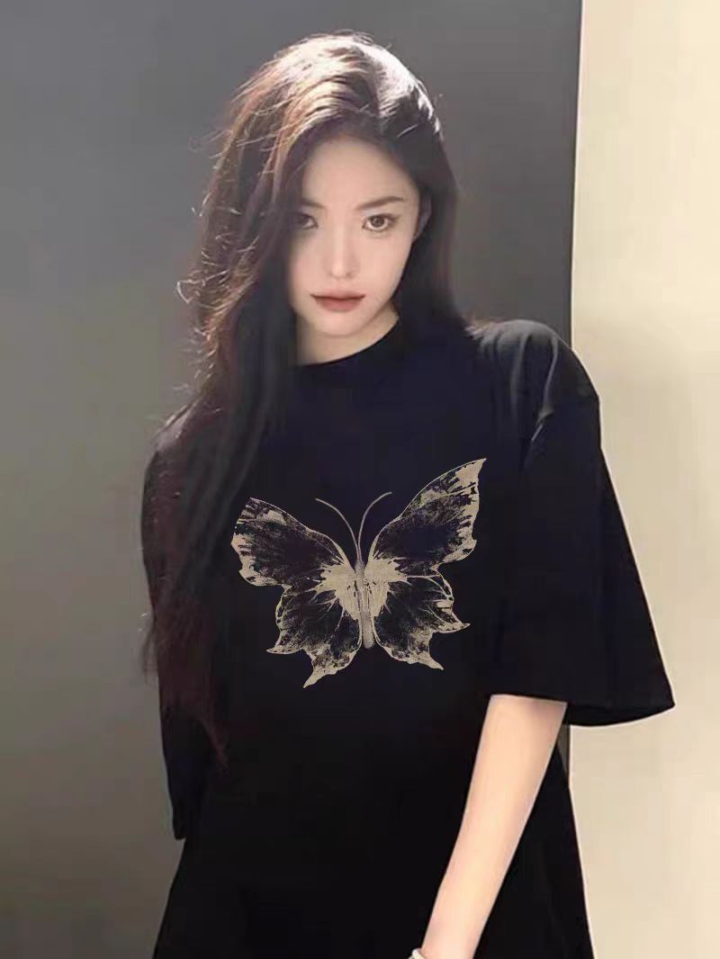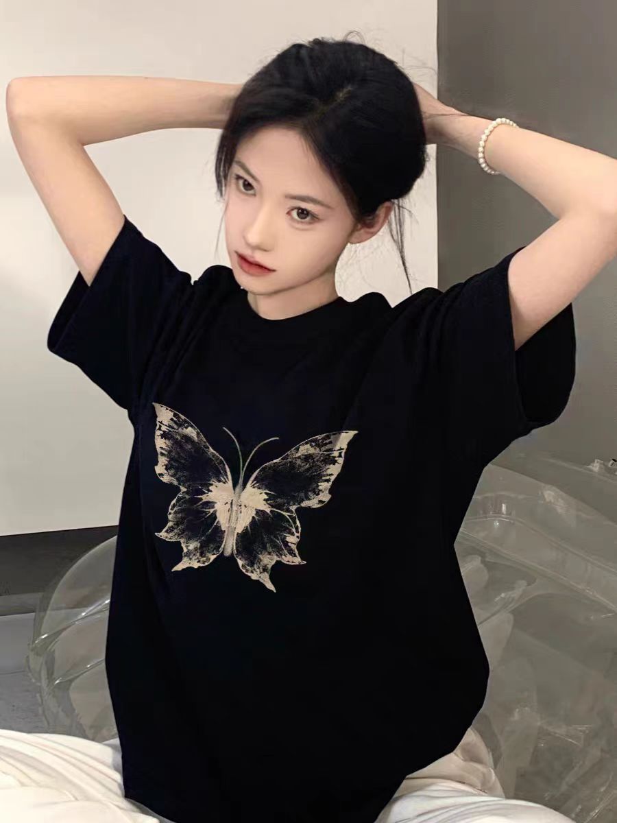 PF2813#精梳纯棉中性宽松型蝴蝶后包领有缝边短袖T恤上衣