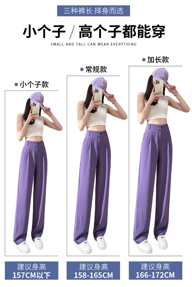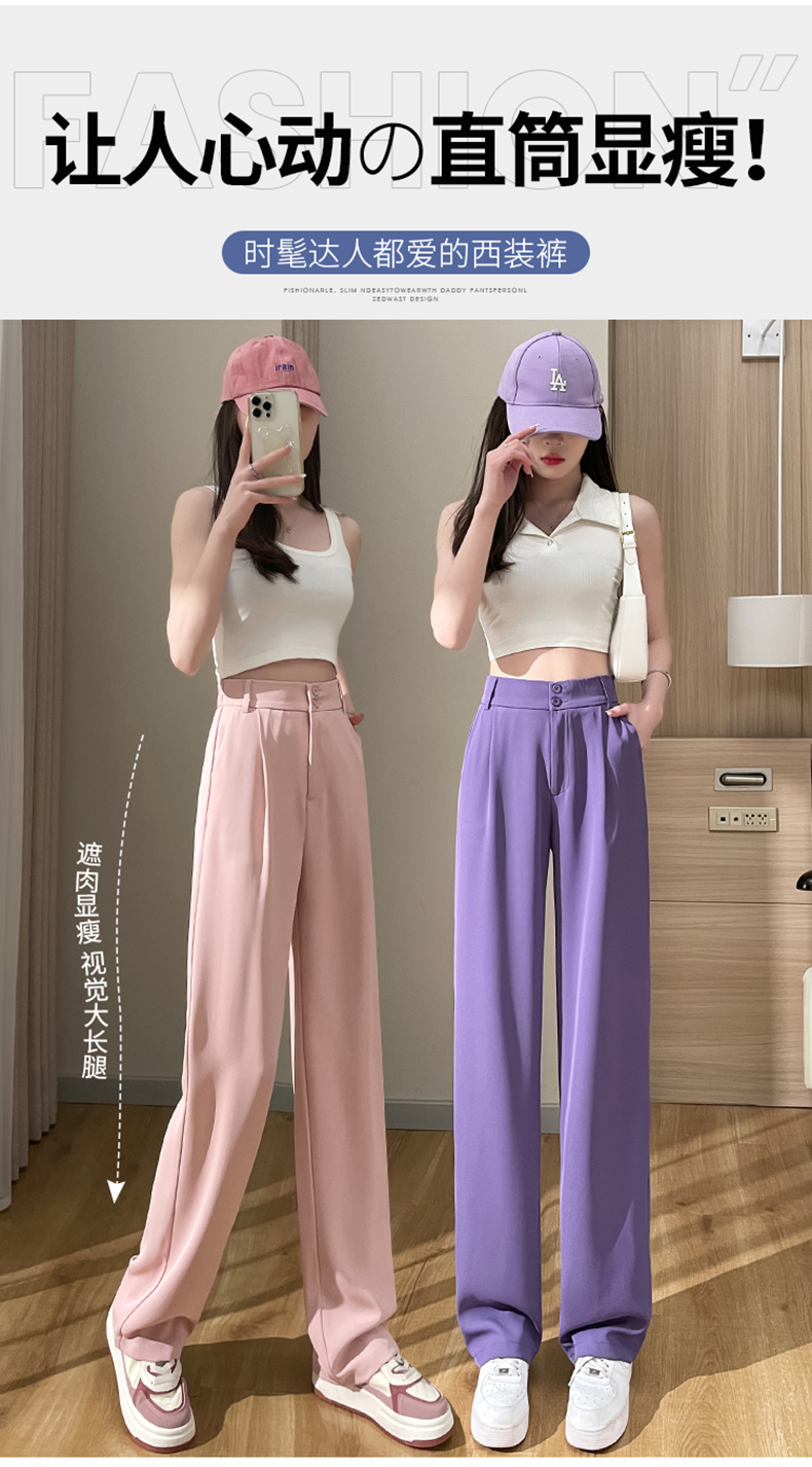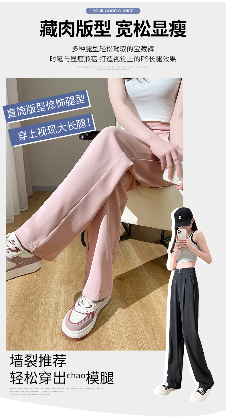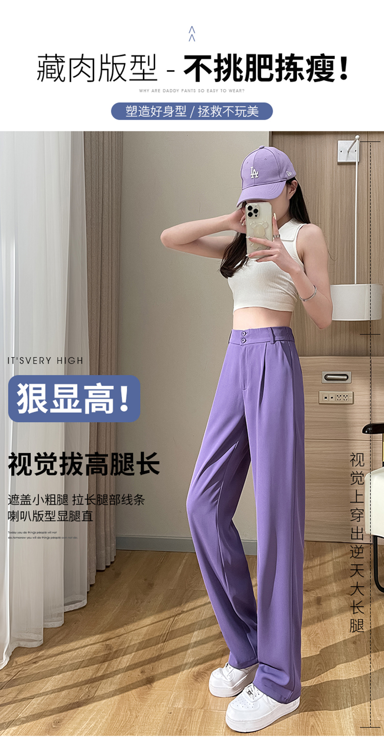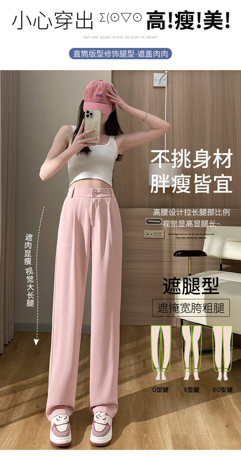 PF2874#阔腿裤女夏季薄款高腰垂感大码裤子胖mm高个子加长窄版直筒西装裤