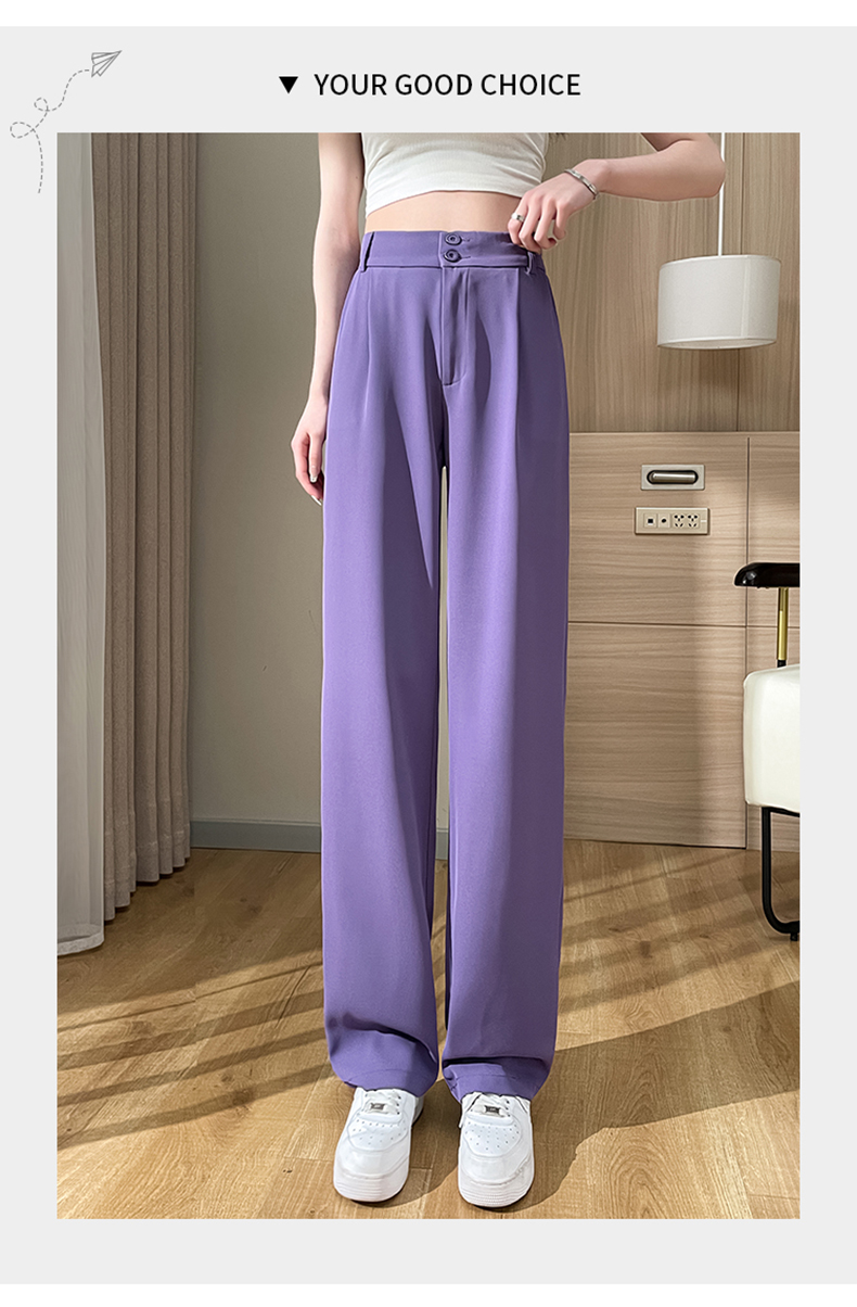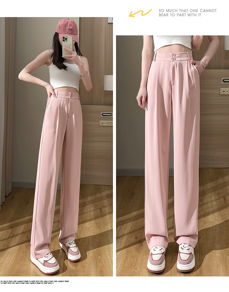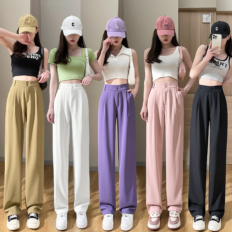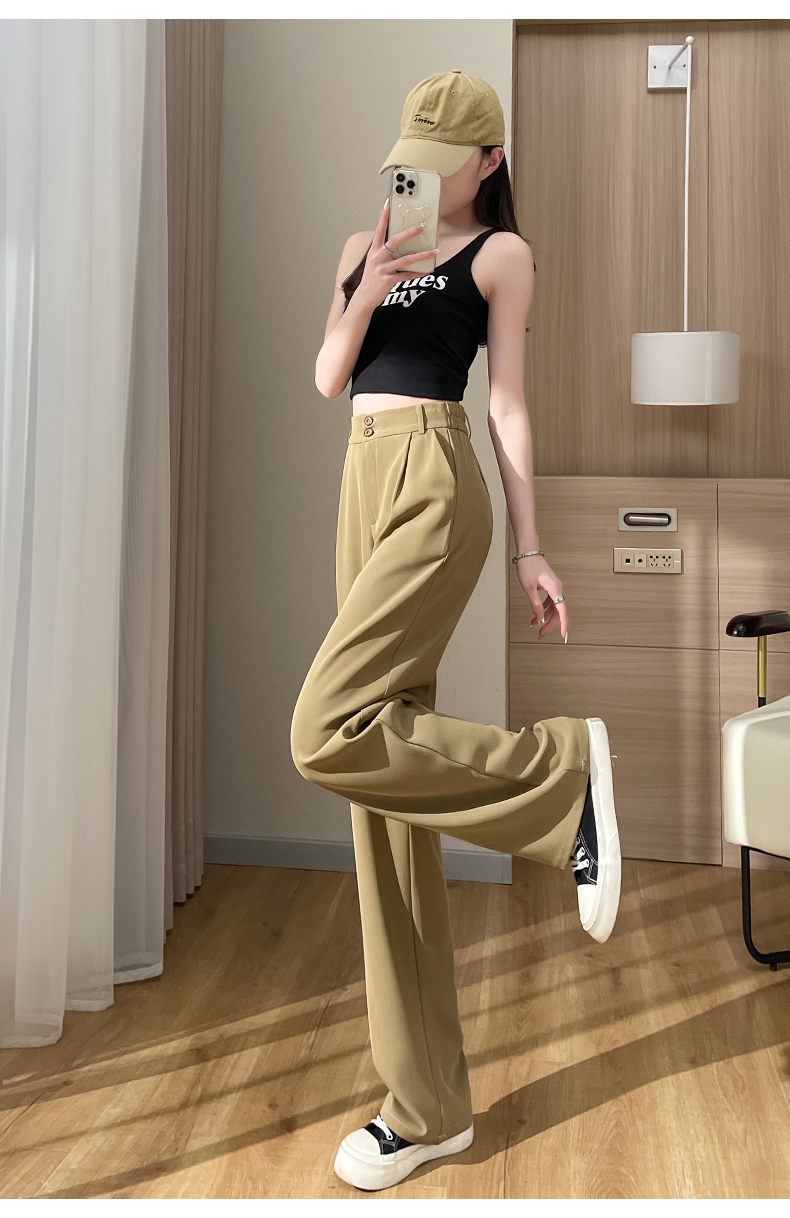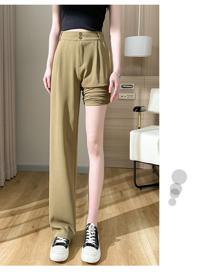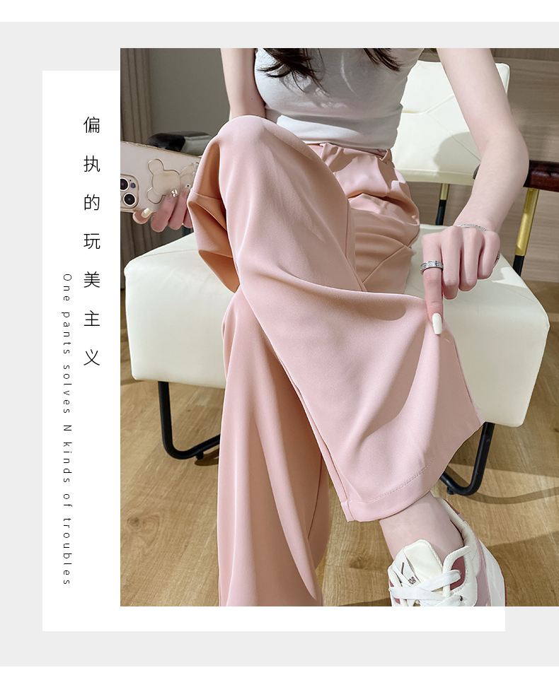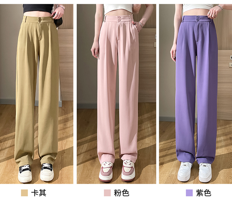 PF2874#阔腿裤女夏季薄款高腰垂感大码裤子胖mm高个子加长窄版直筒西装裤