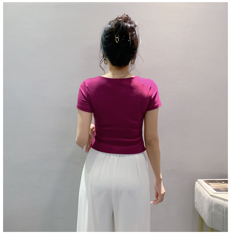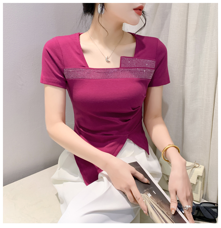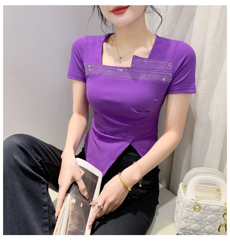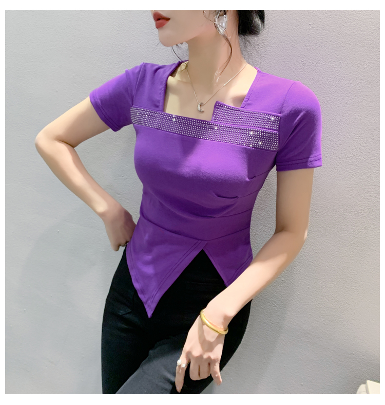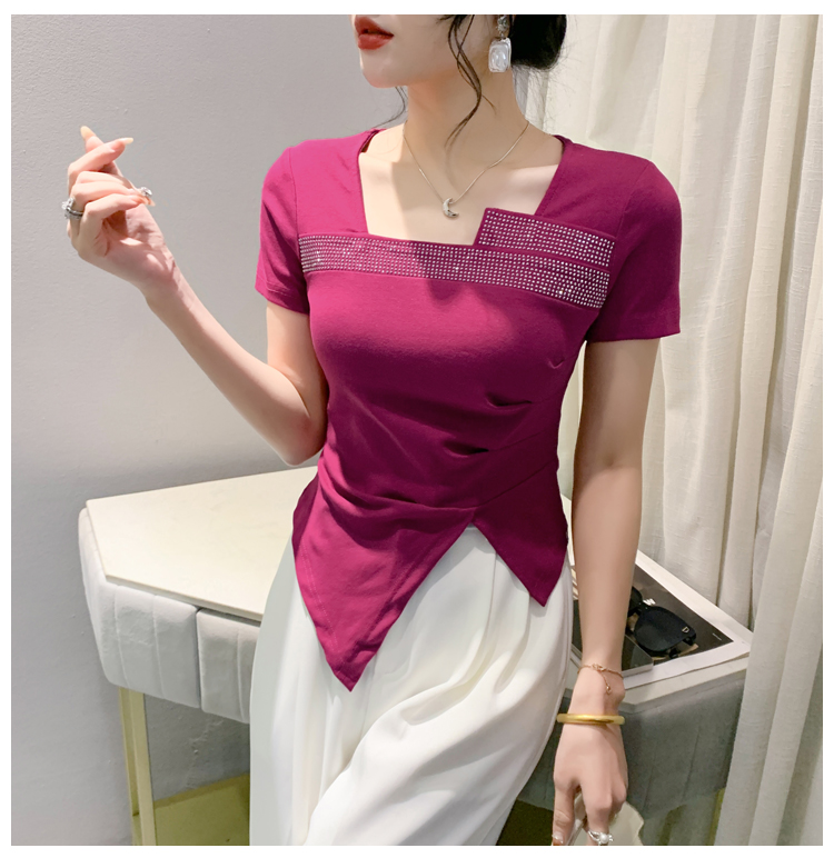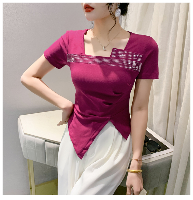 PF2885#夏季新款设计感时尚不规则短袖烫钻修身显瘦t恤小衫女潮