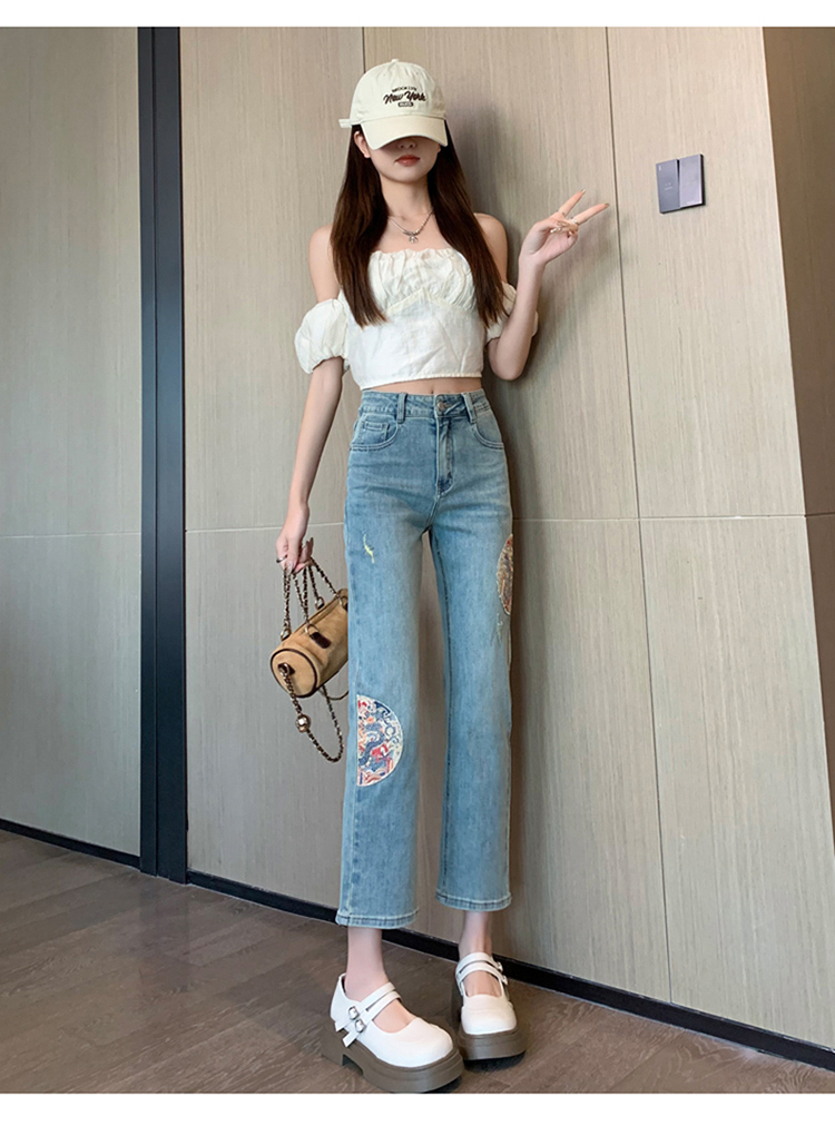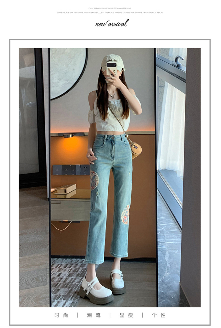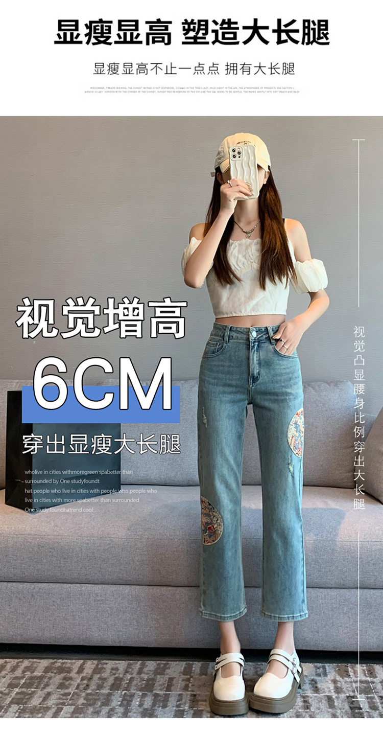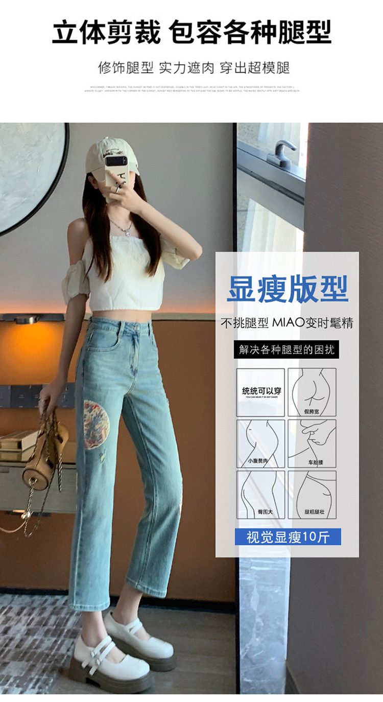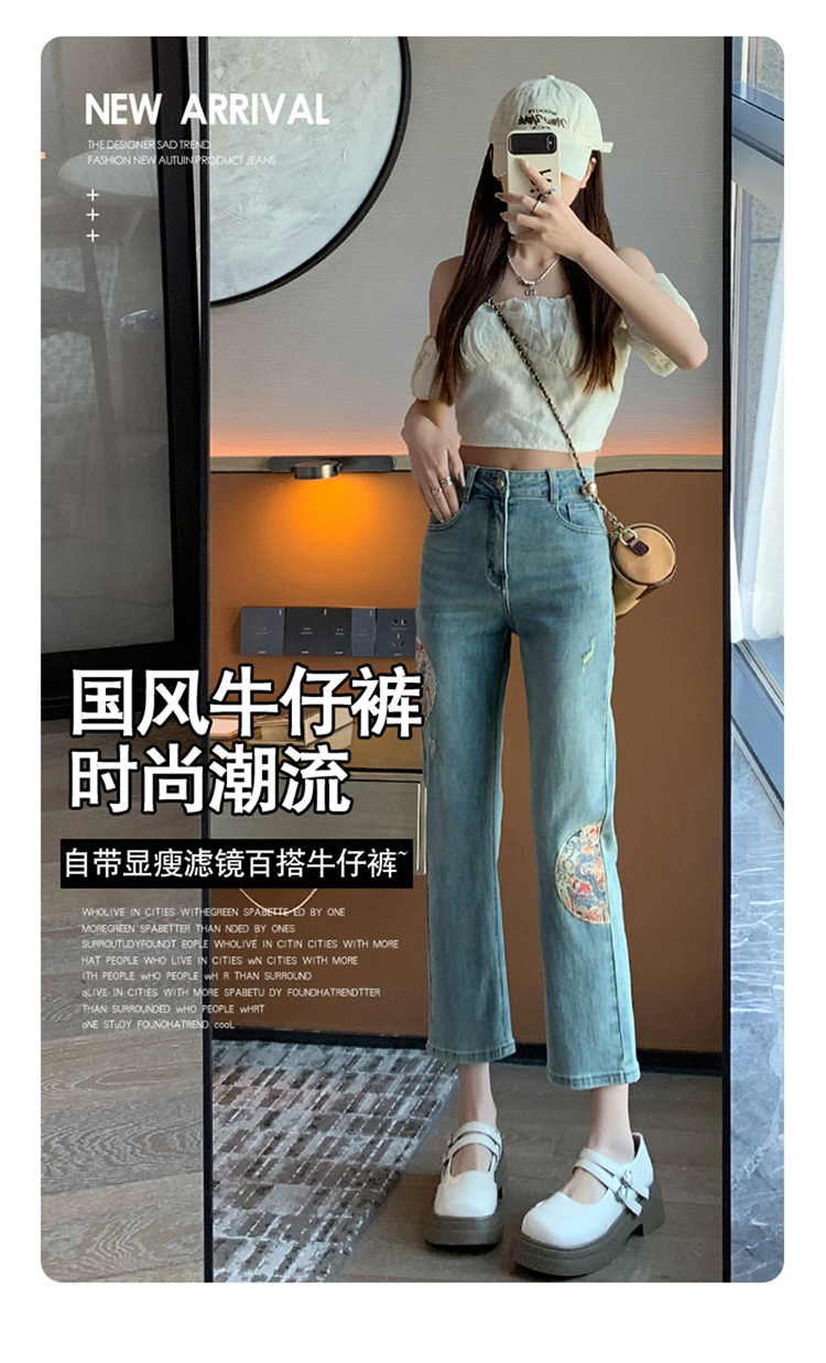 PF2900#直筒烟管裤弹力牛仔裤女春夏 新款中国风设计感爆款