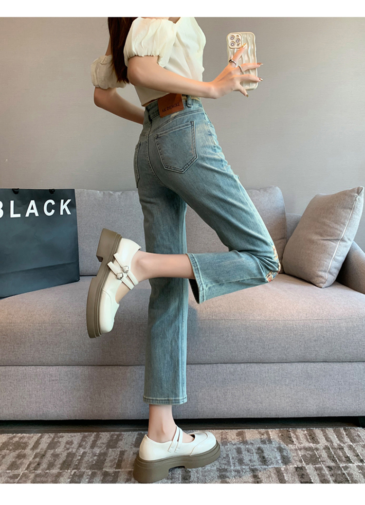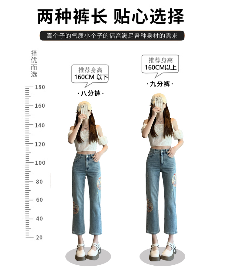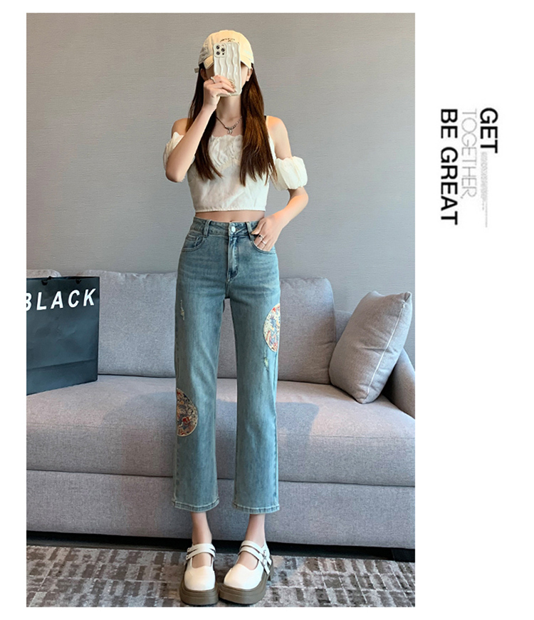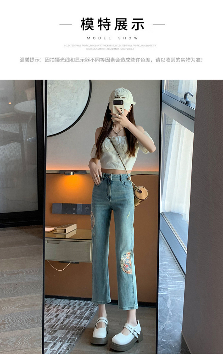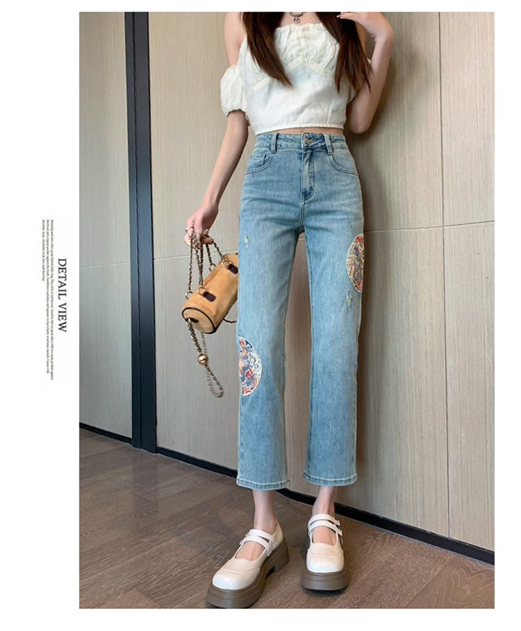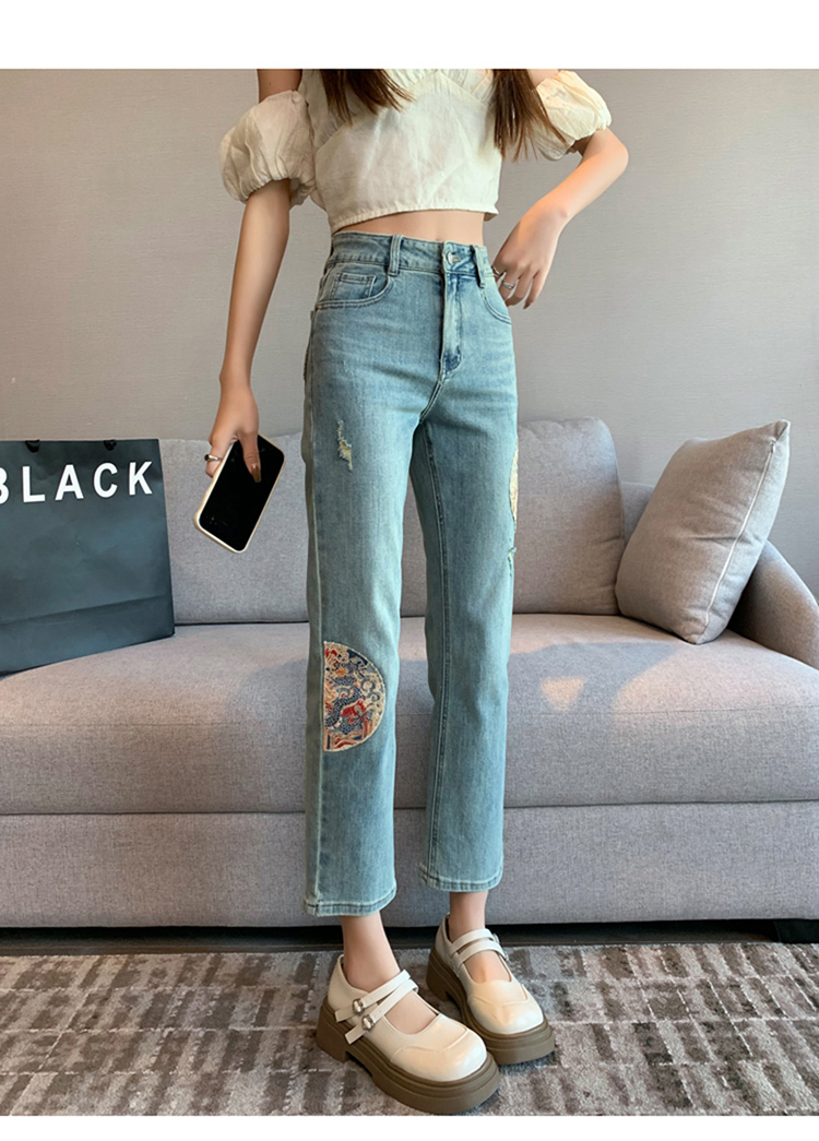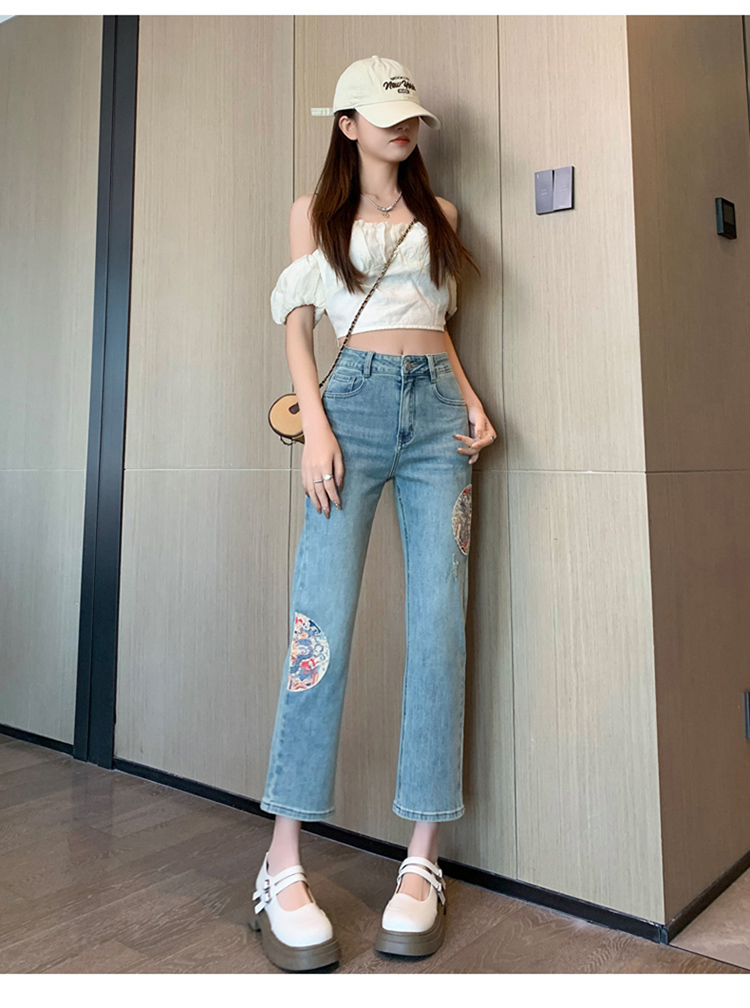 PF2900#直筒烟管裤弹力牛仔裤女春夏 新款中国风设计感爆款