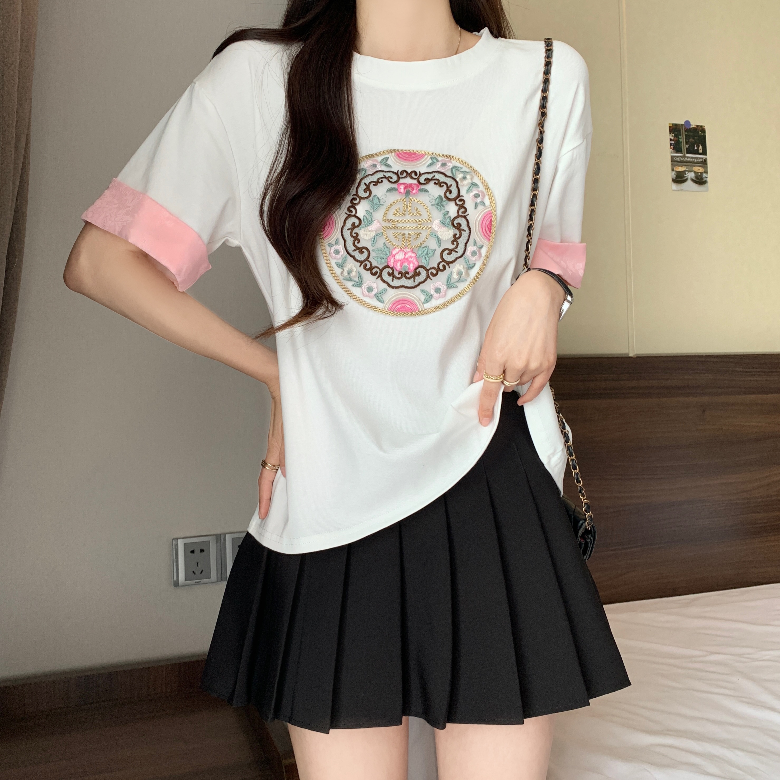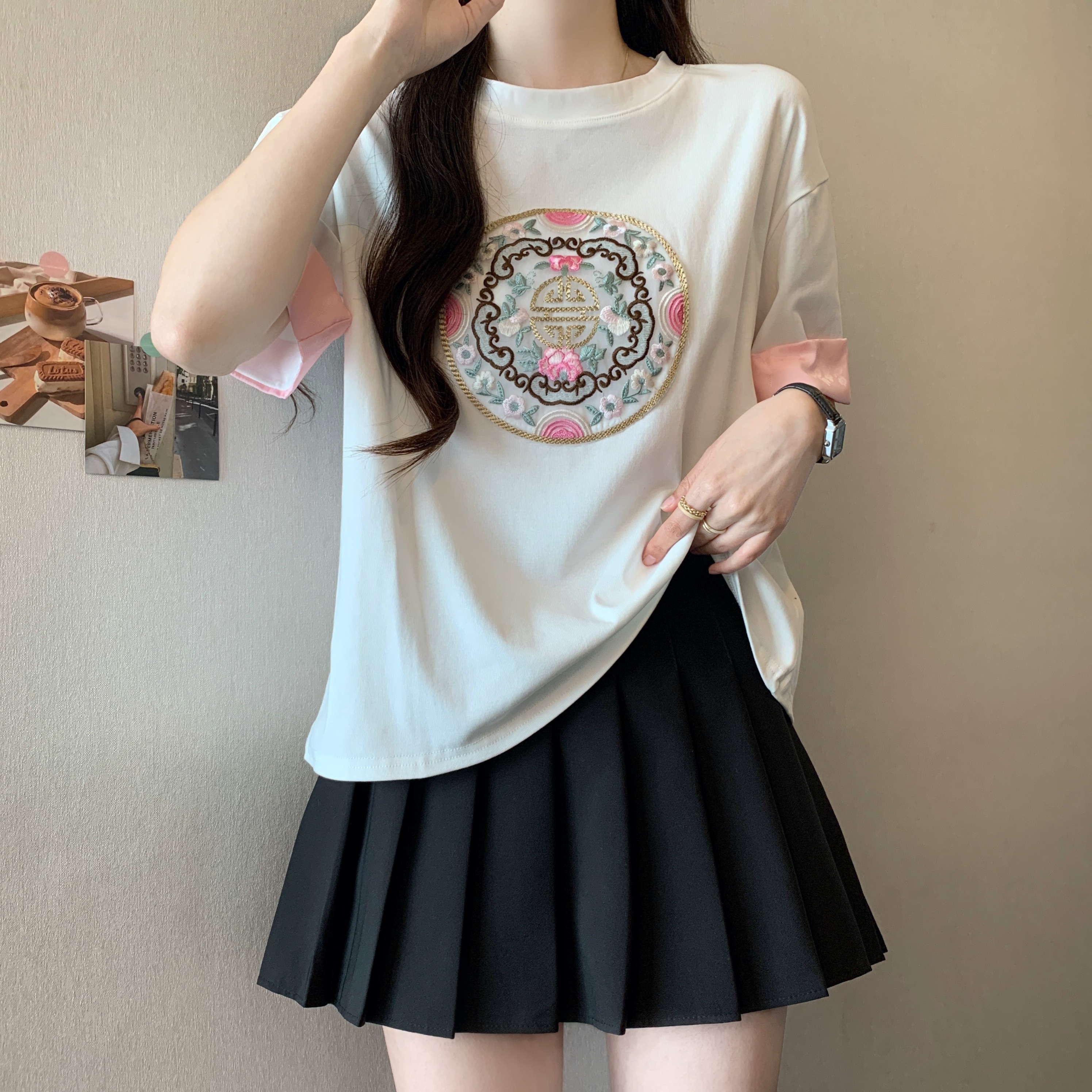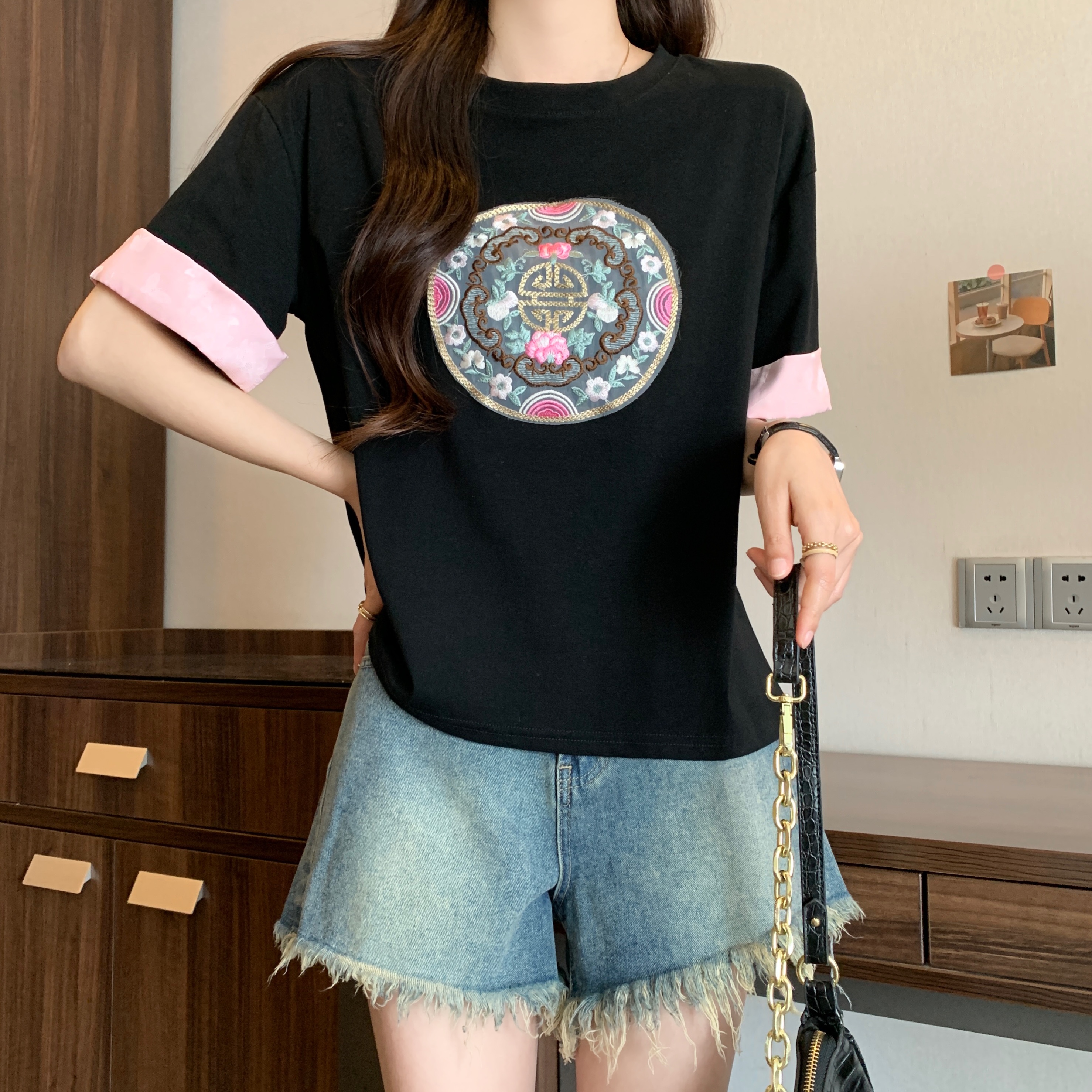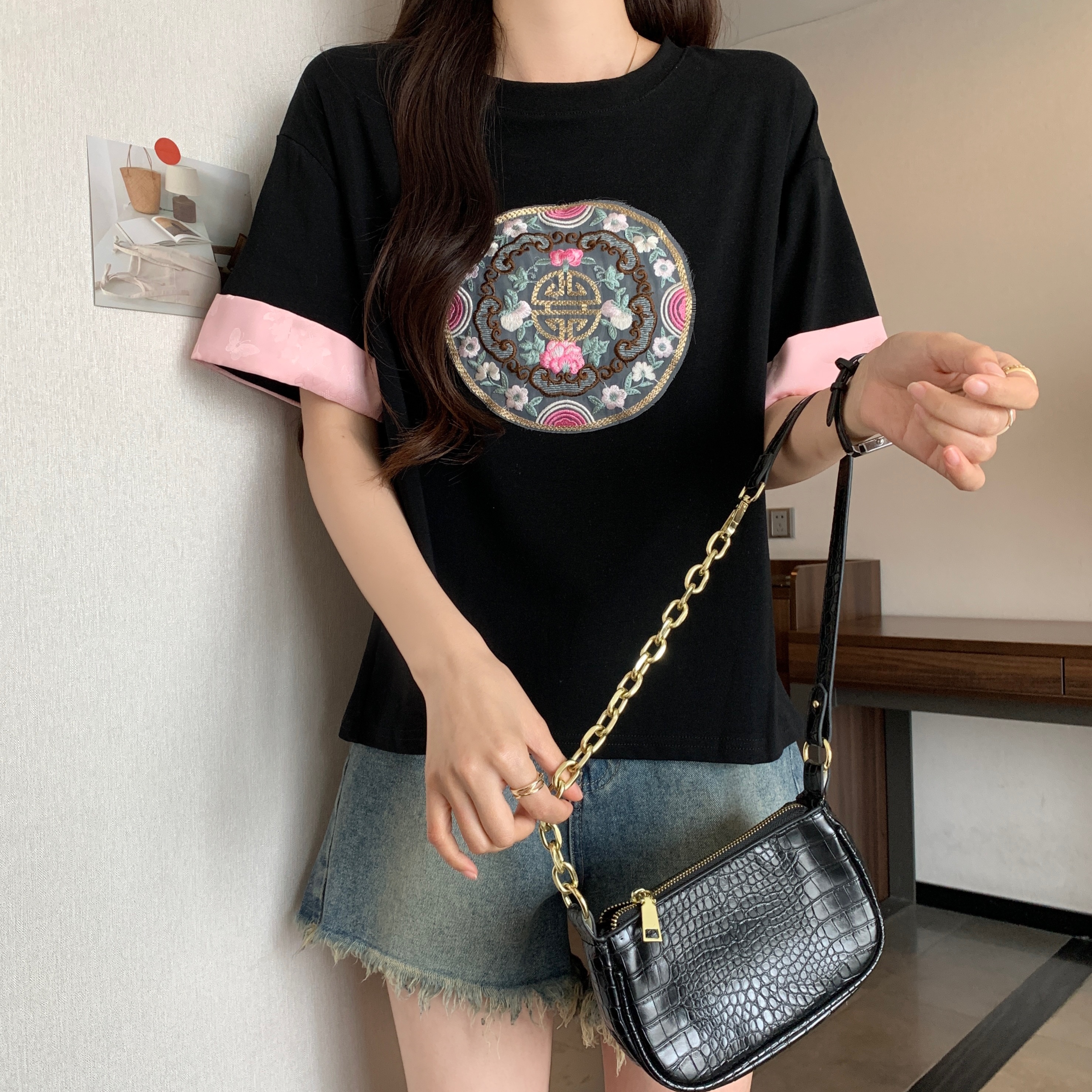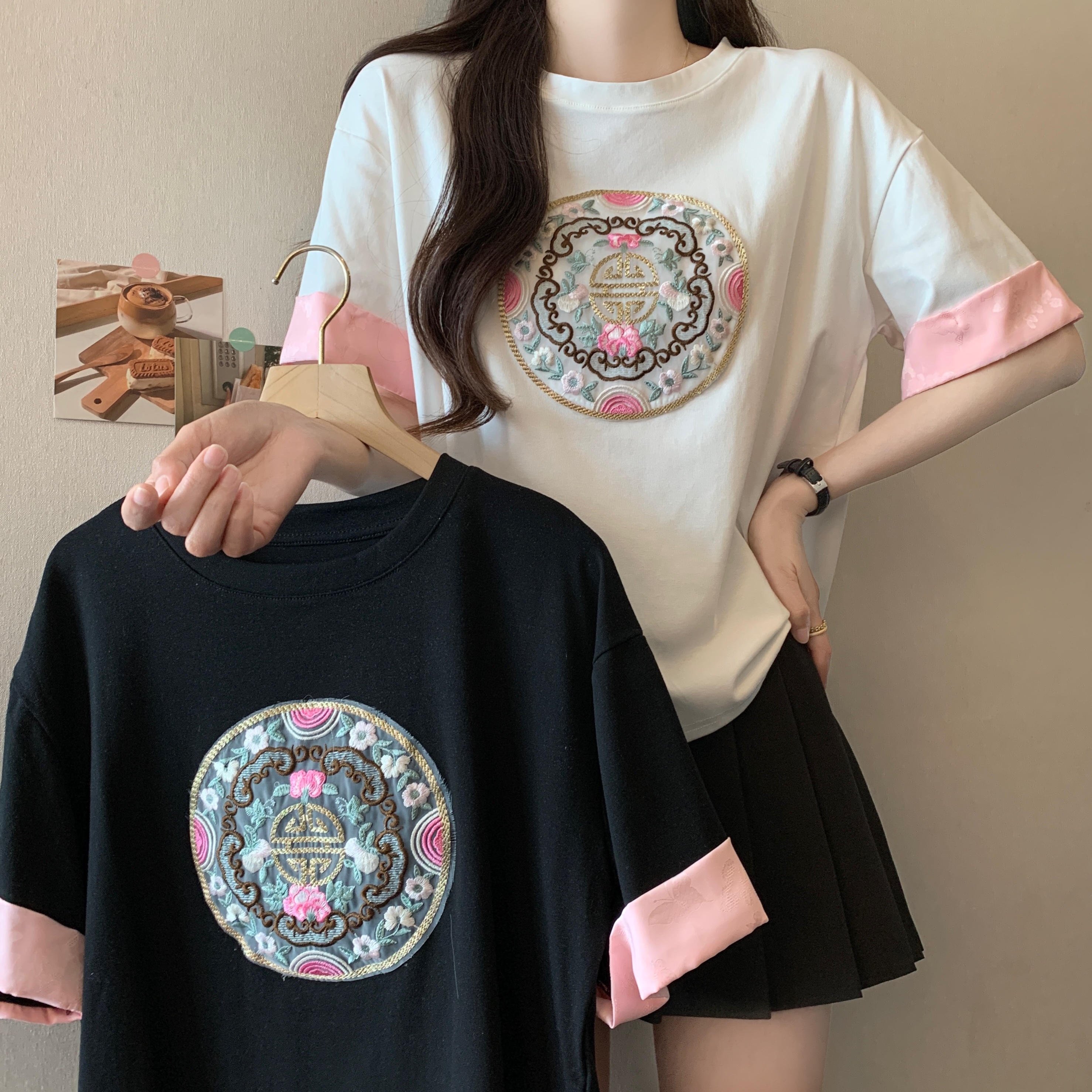 PF2932#大码胖MM夏季新款国风宽松上衣短袖T恤