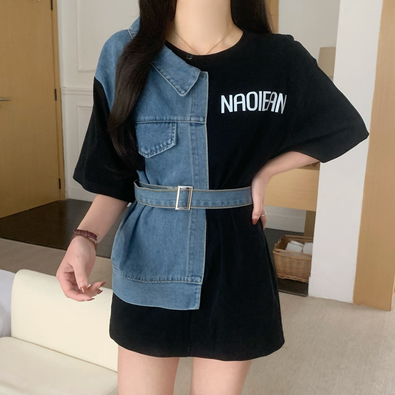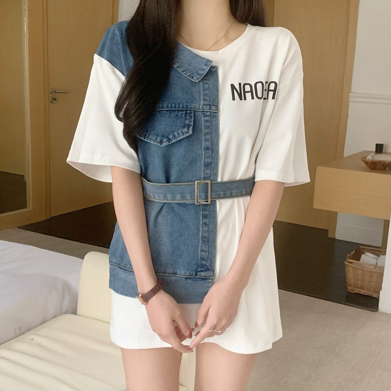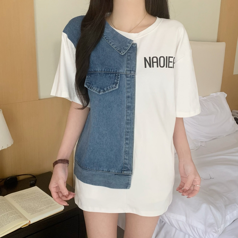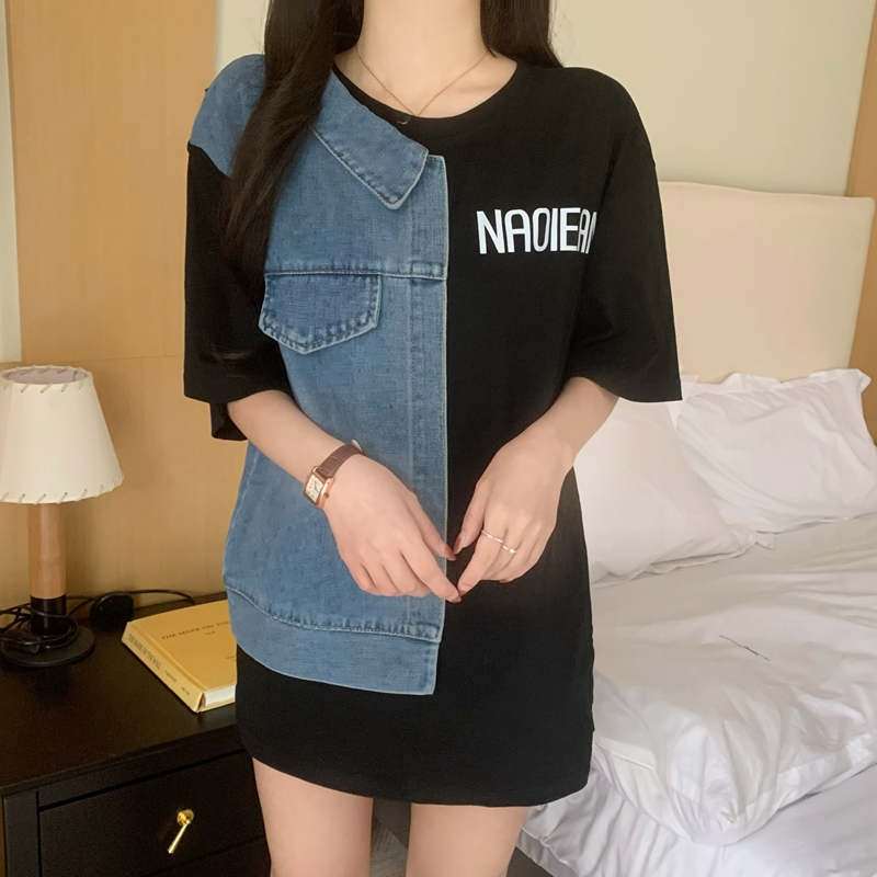 PF2957#夏季新款宽松百搭中长款拼接t恤裙