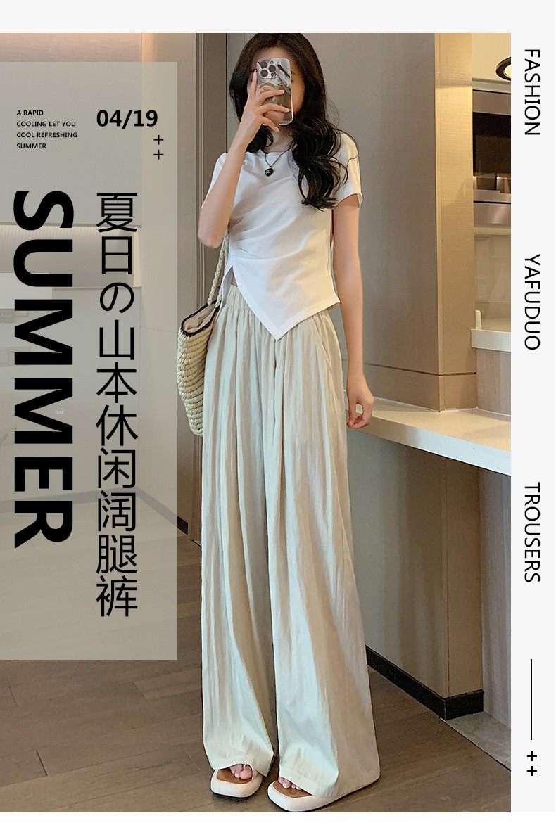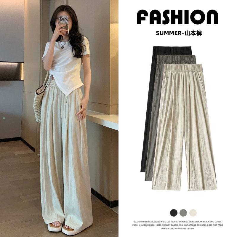 PF2991#可做大码 冰丝阔腿裤女夏薄款垂感棉麻慵懒感山本裤褶皱氧吧裤子