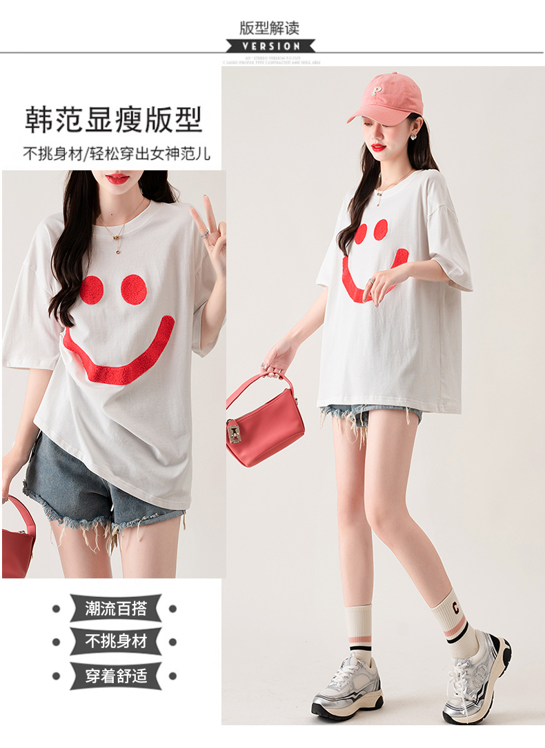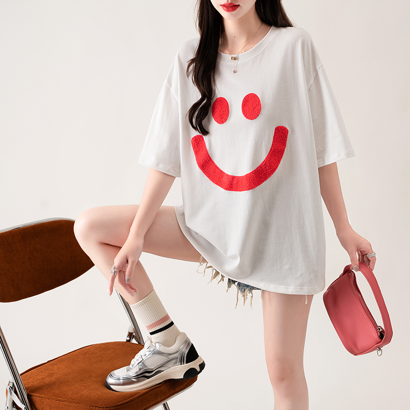 PF3062#双纱纯棉短袖t恤女夏2024刺绣花潮圆领新款上衣大码女装