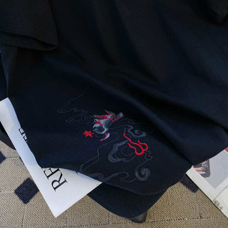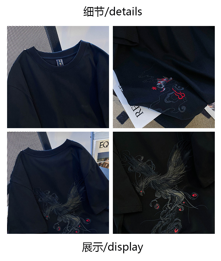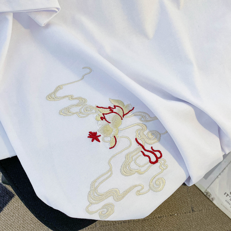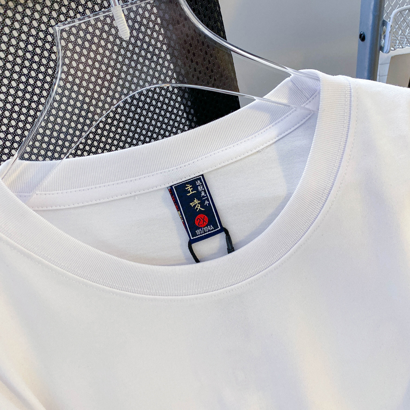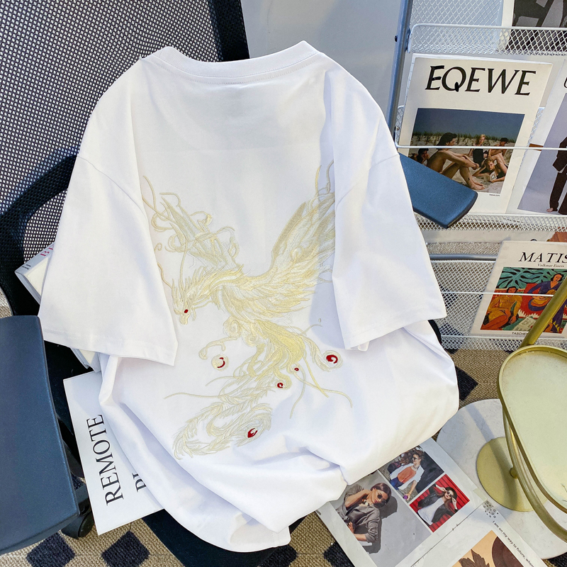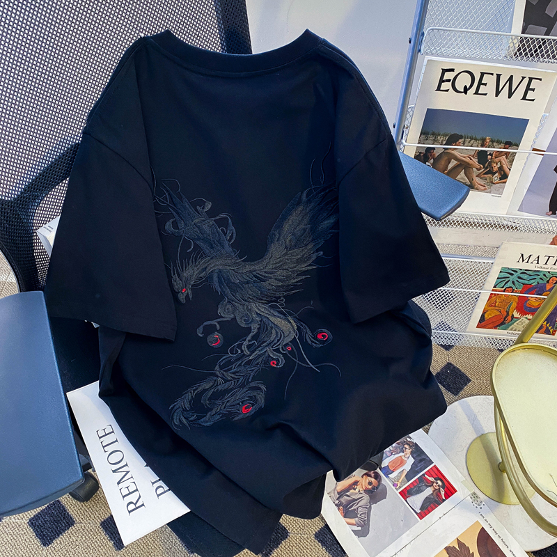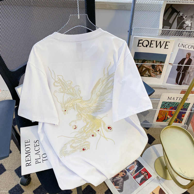 PF3065#纯棉后包领特大码300斤重工刺绣纯棉正肩短袖T恤女