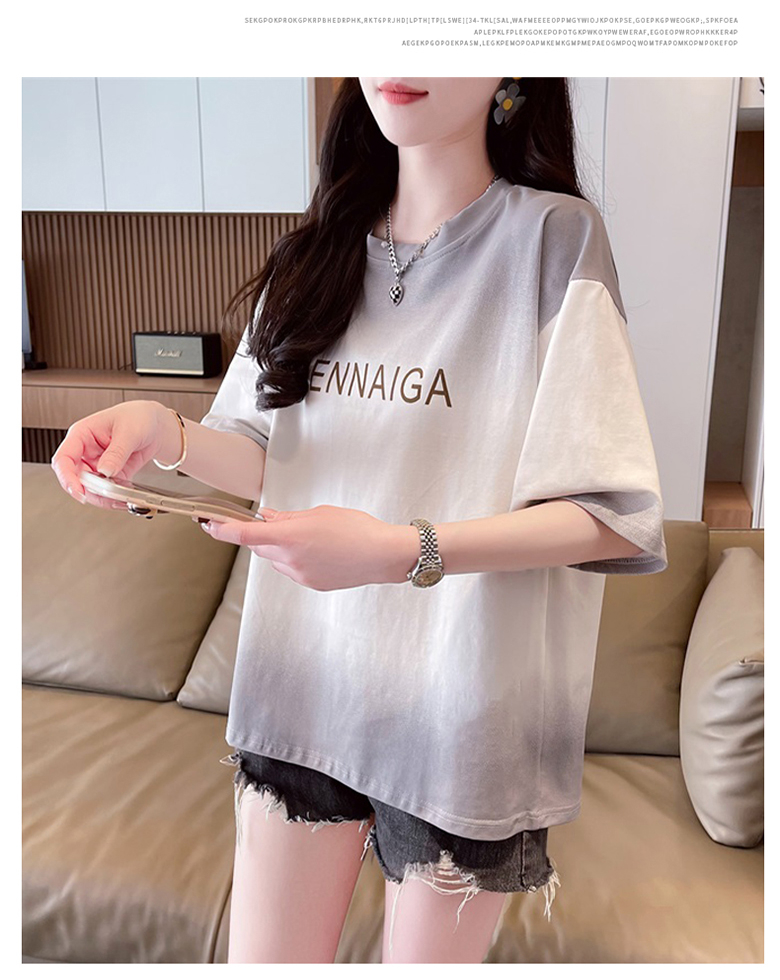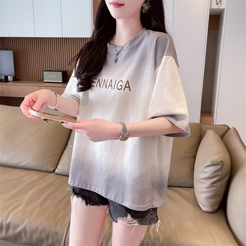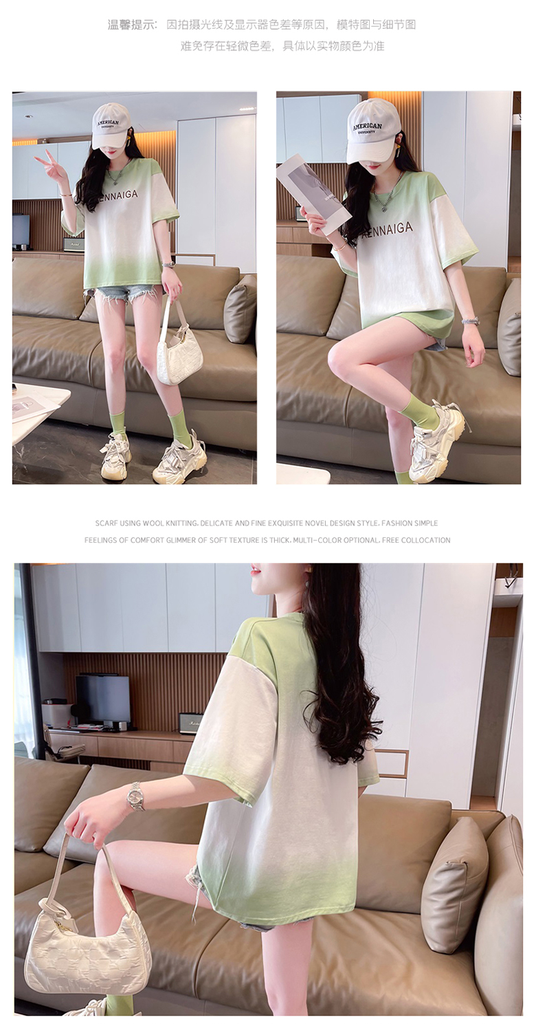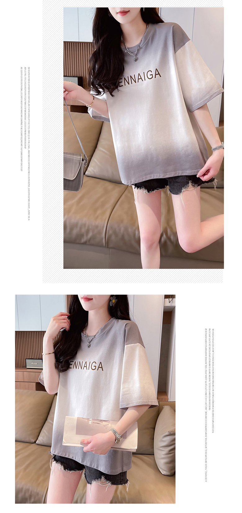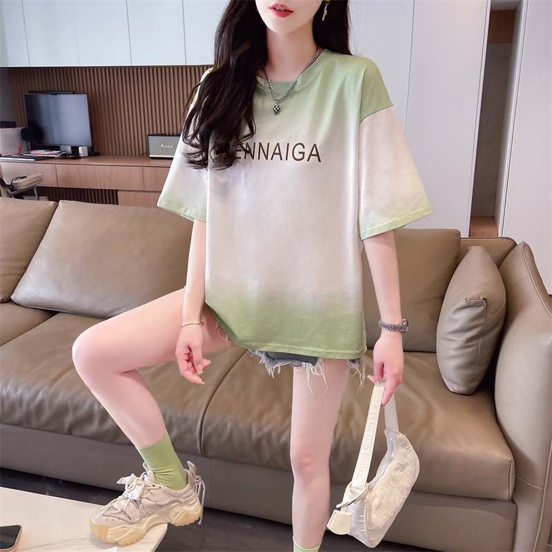 PF3066#棉渐变夏季新款印花短袖T恤女
