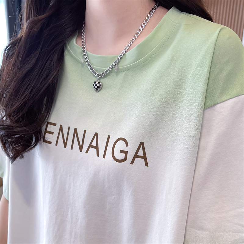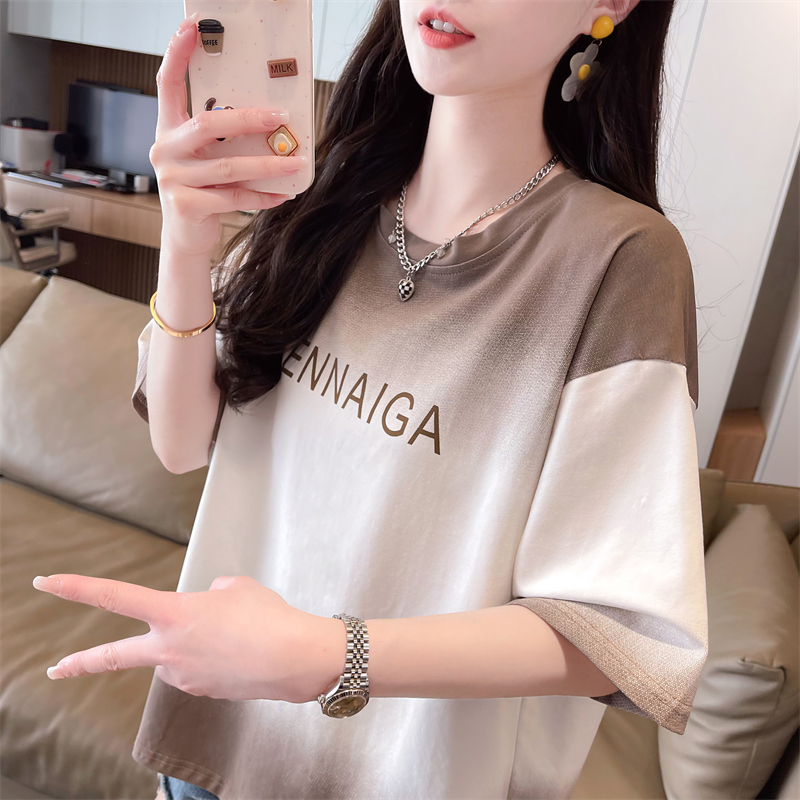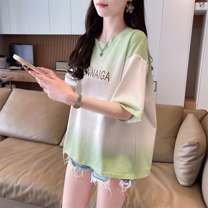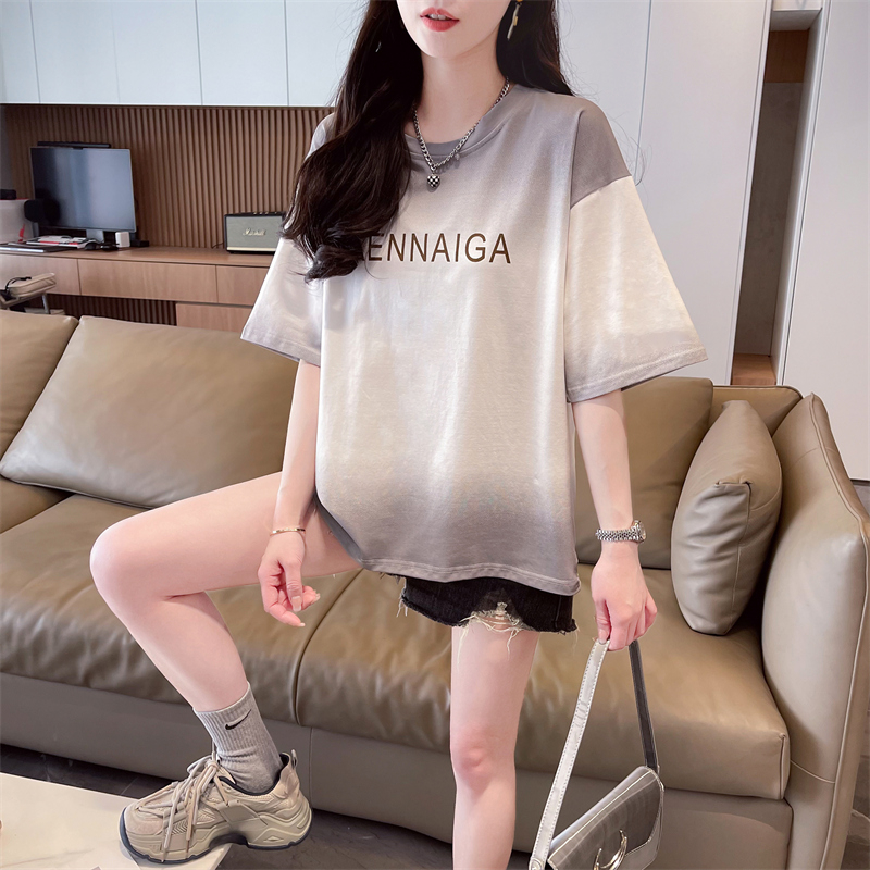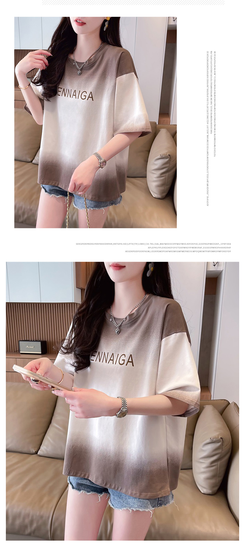 PF3066#棉渐变夏季新款印花短袖T恤女