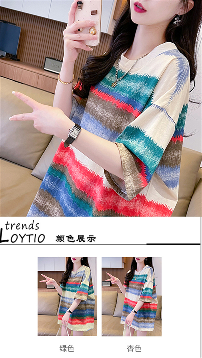 PF3069#精梳纯棉扎染2024年新款百搭宽松上衣印花T恤女