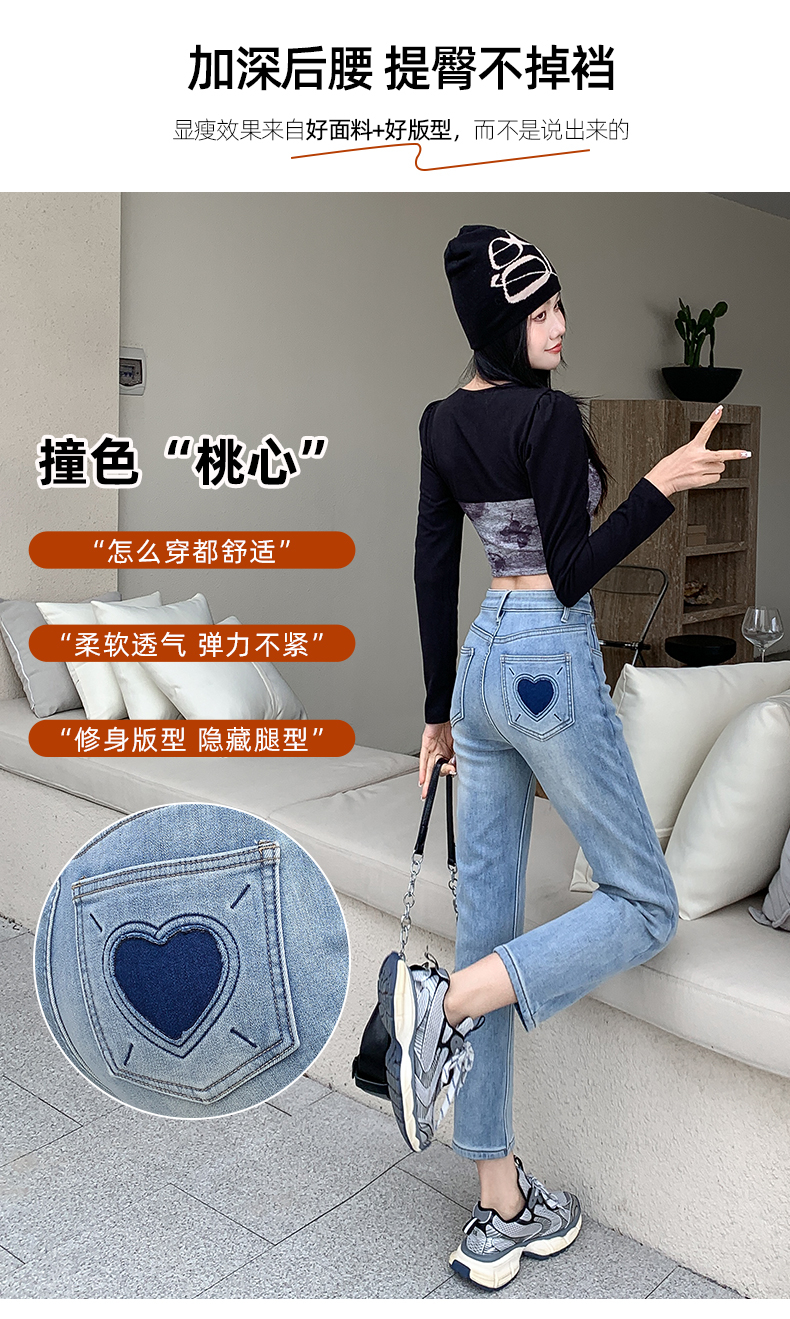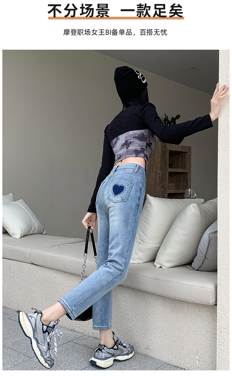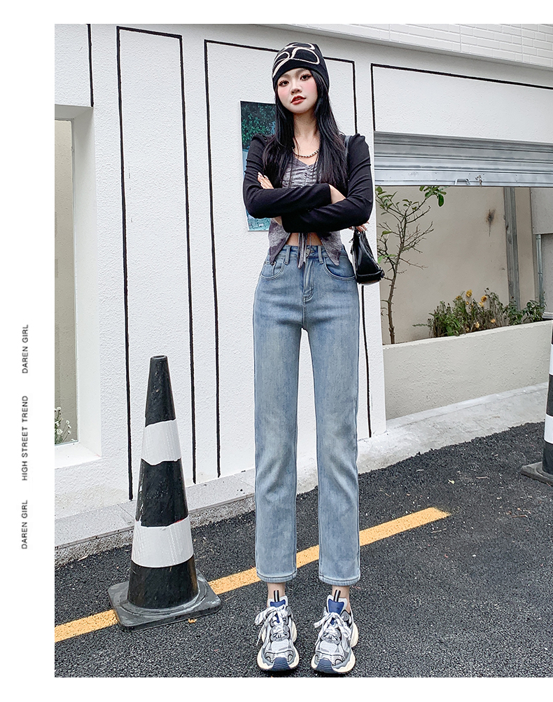 PF3104#春夏新款浅蓝色高腰烟管牛仔裤女宽松显瘦小个子九分直筒裤